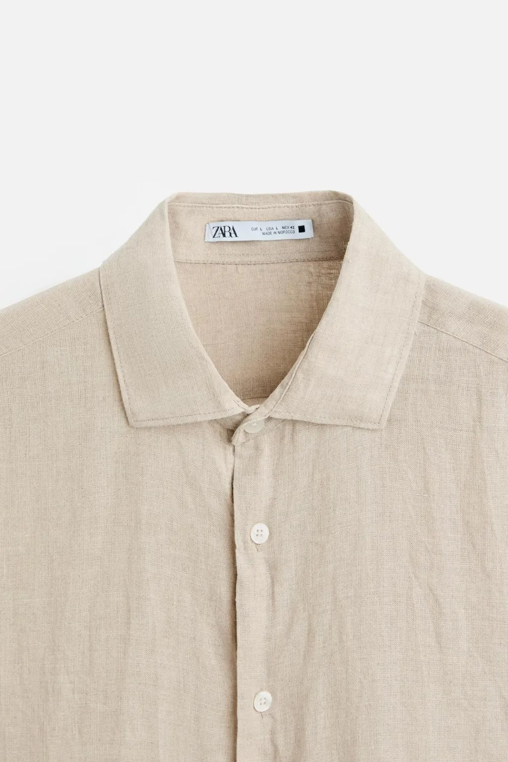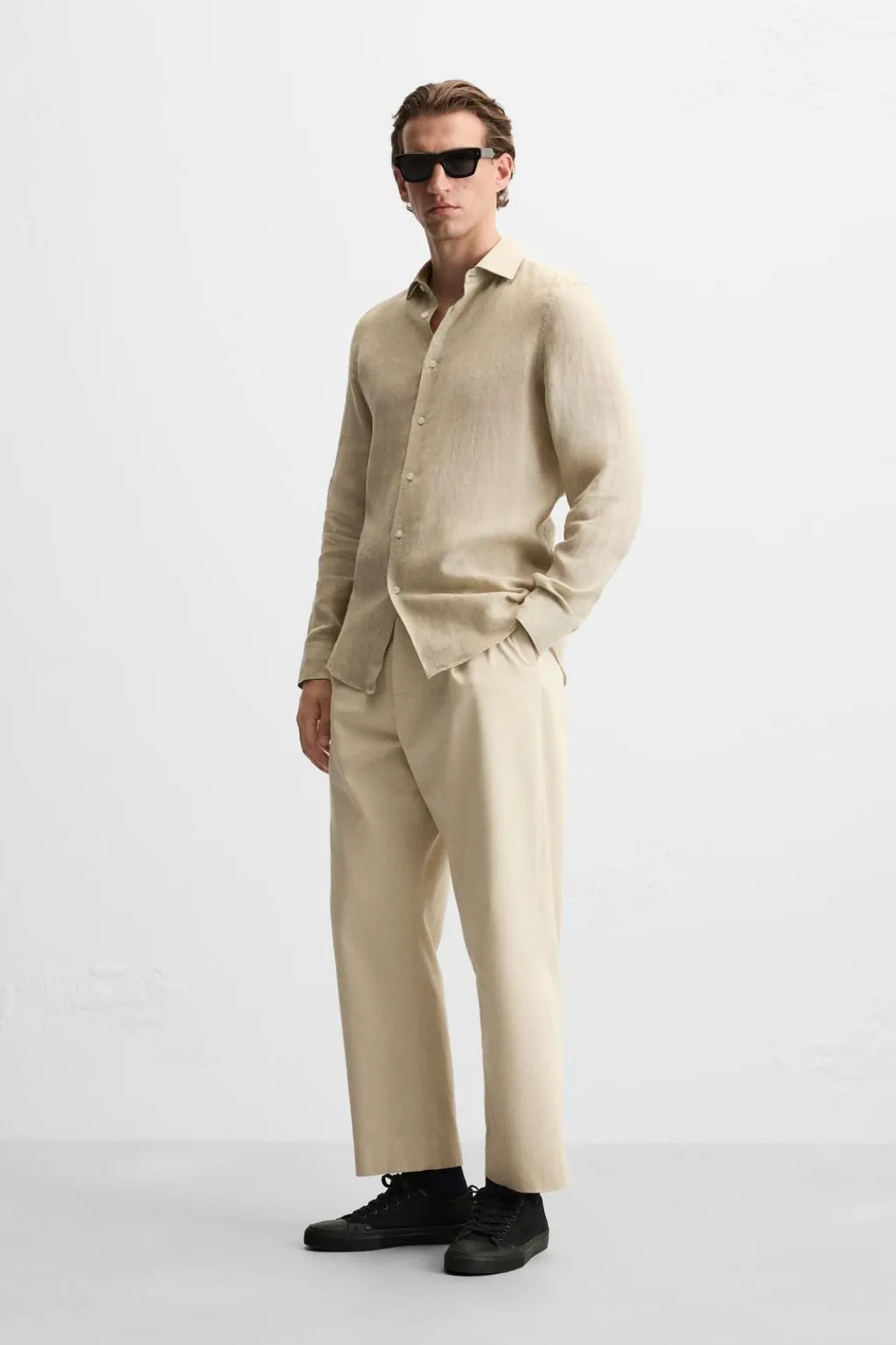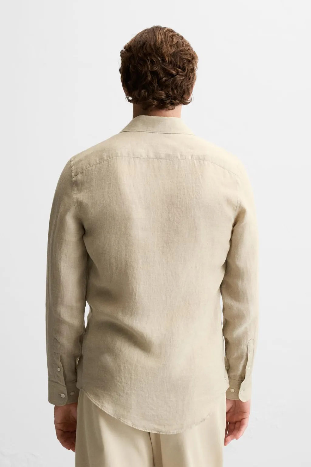 Camisa relaxed fit confeccionada en tejido de lino. Cuello solapa y manga larga acabada en puño con botón. Cierre frontal de botonadura.