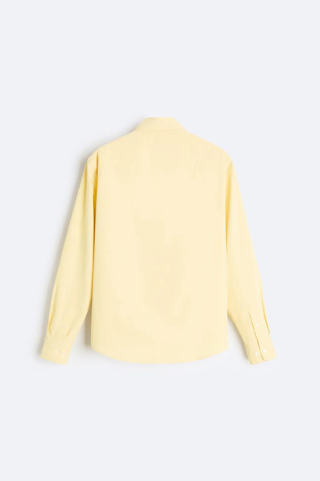 Camisa regular fit confeccionada en tejido de algodón. Cuello solapa y manga larga acabada en puño con botón. Bolsillo plastrón en pecho. Cierre frontal de botonadura.