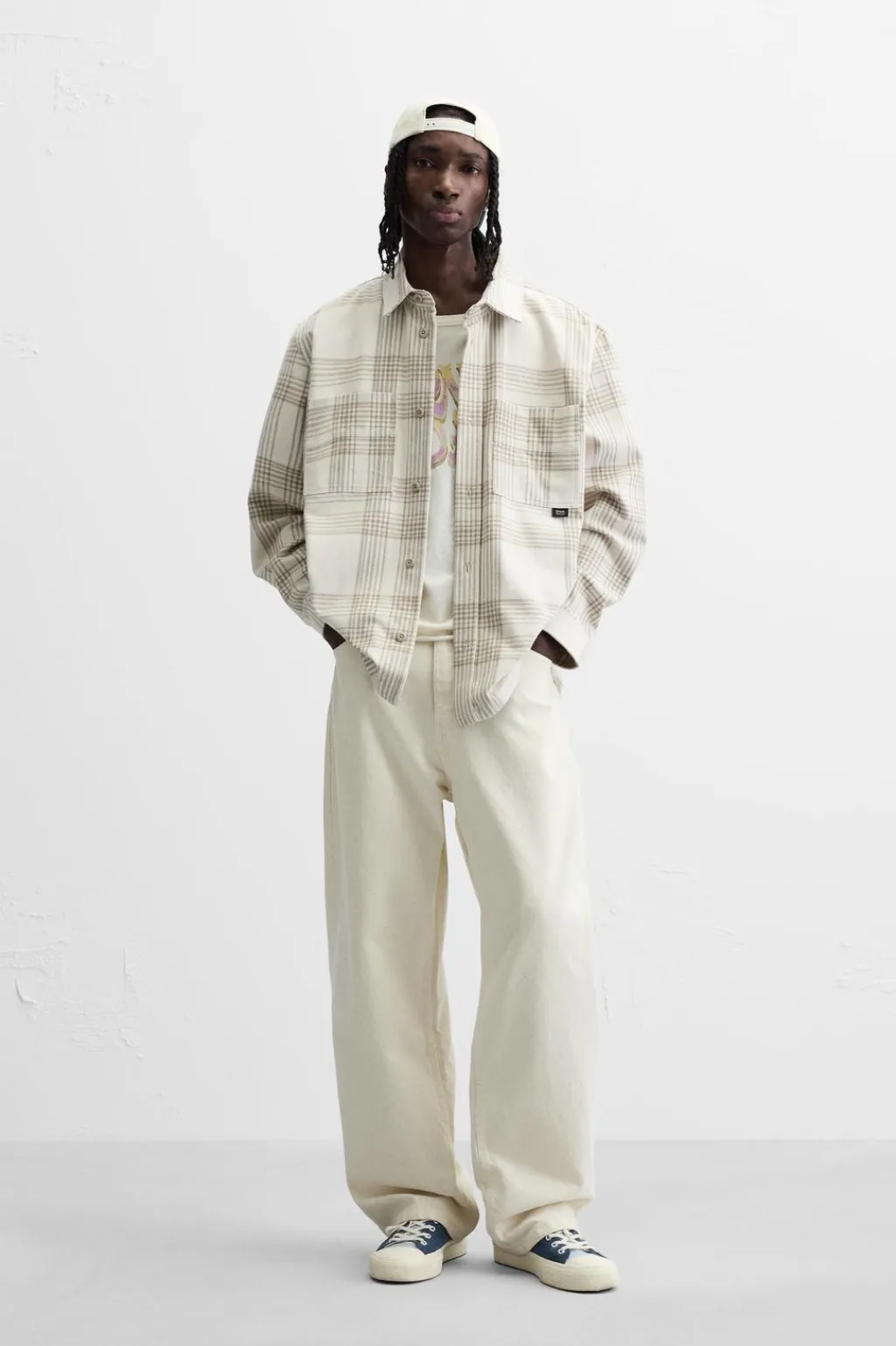 Camisa relaxed fit confeccionada en tejido de algodón con acabado franela. Cuello solapa y manga larga acabada en puño con botón. Bolsillos de plastrón en pecho. Cierre frontal de botonadura.