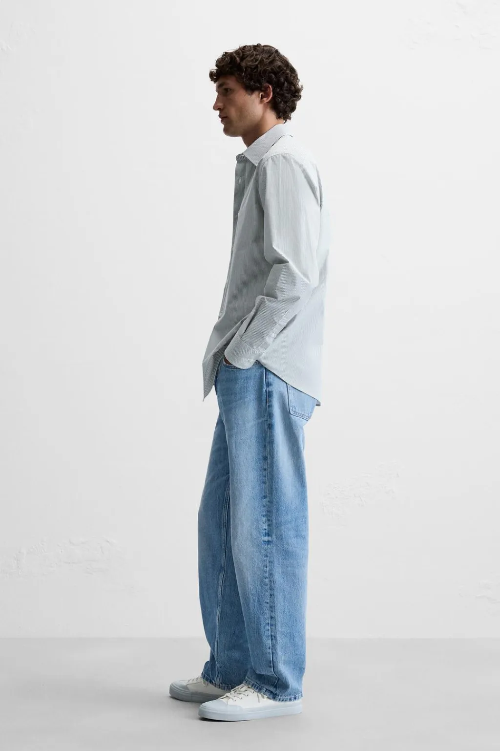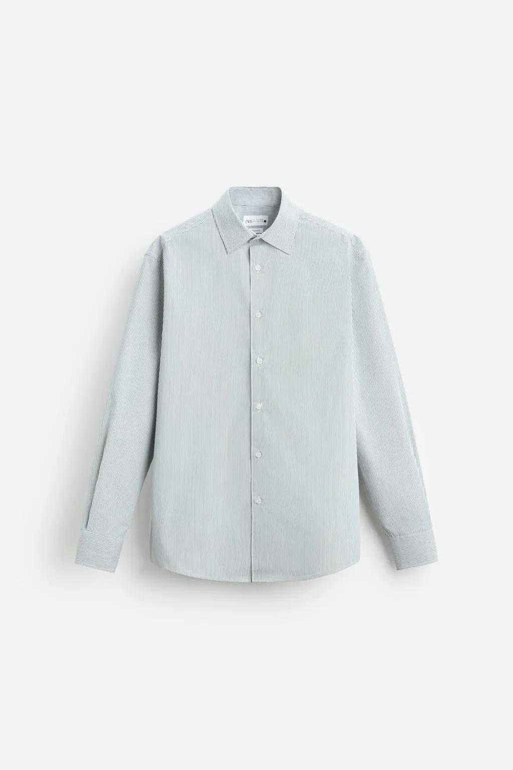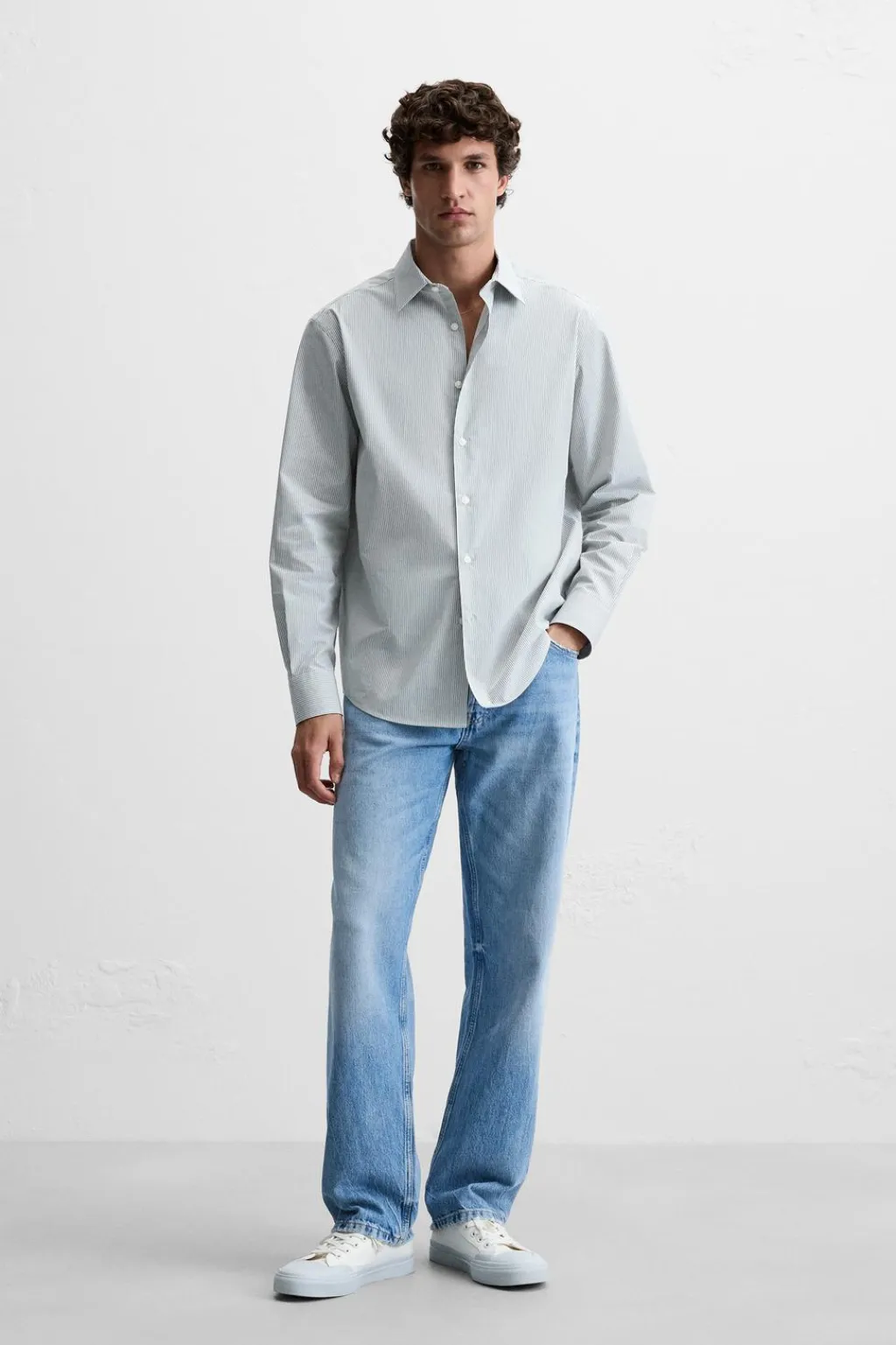 Regular fit. Cuello italiano y manga larga acabada en puño con botón. Cierre frontal de botonadura.