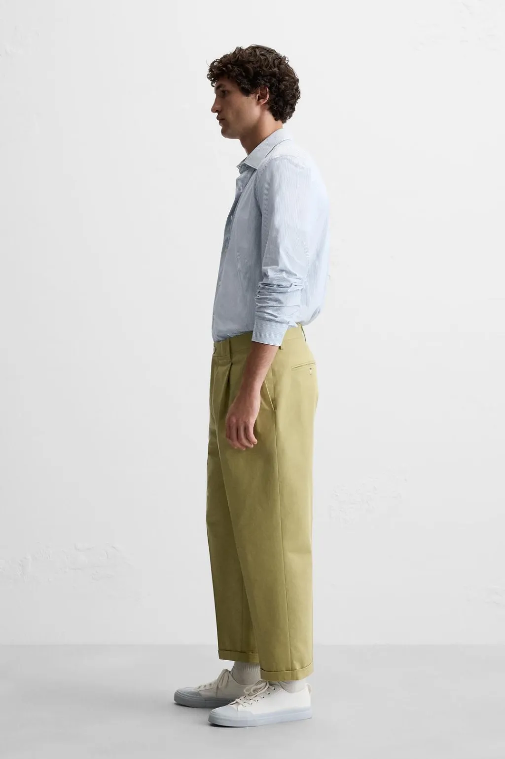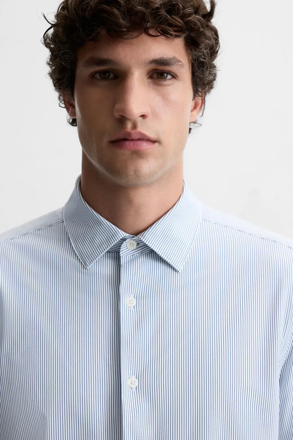Camisa slim fit confeccionada en un tejido que minimiza la necesidad de plancha después del lavado. Cuello italiano y manga larga acabada en puño con botón. Cierre frontal de botonadura.