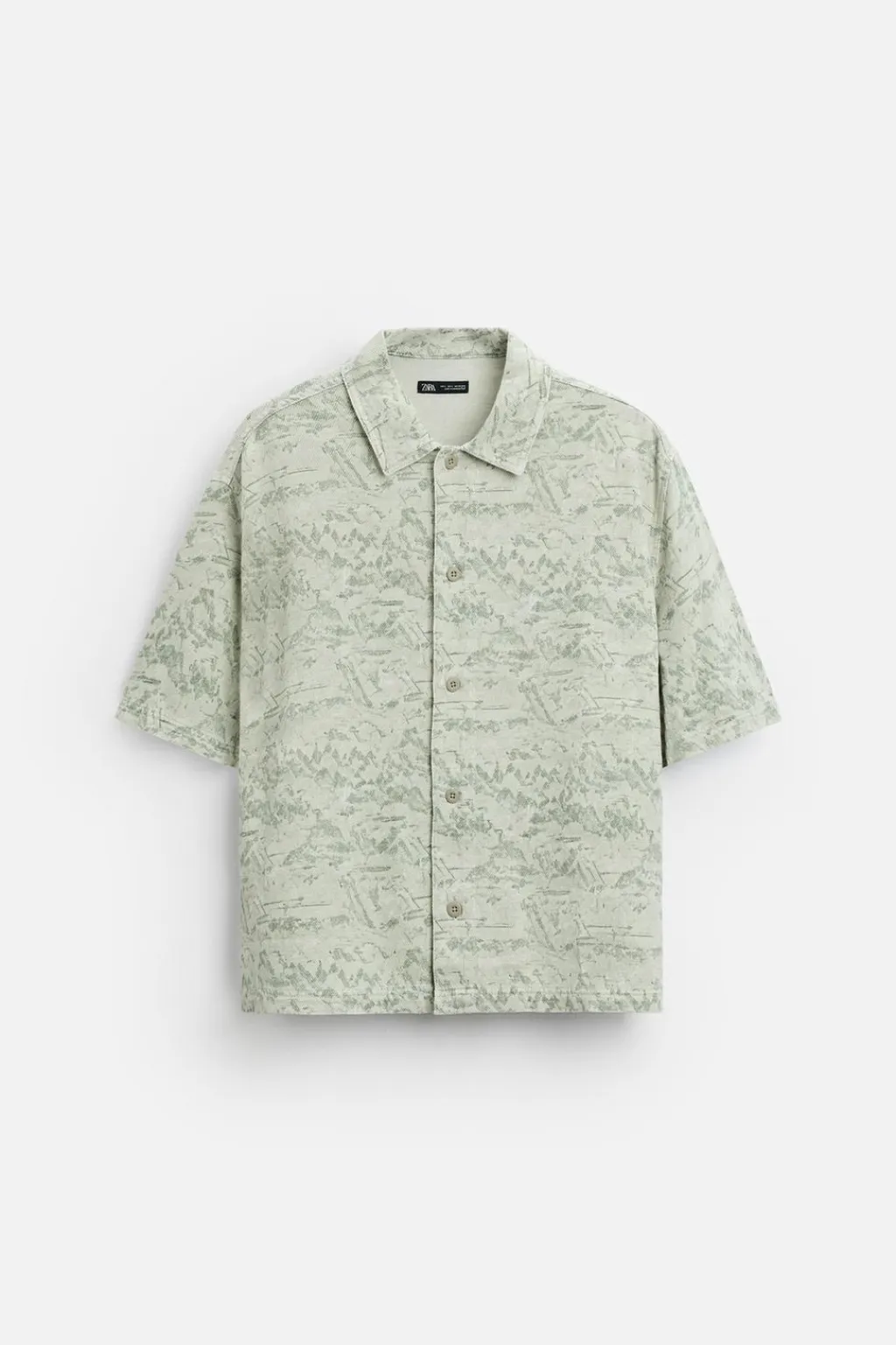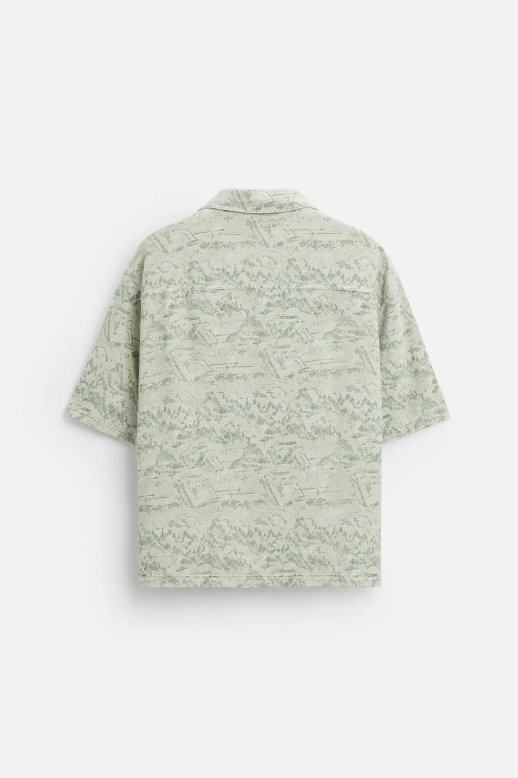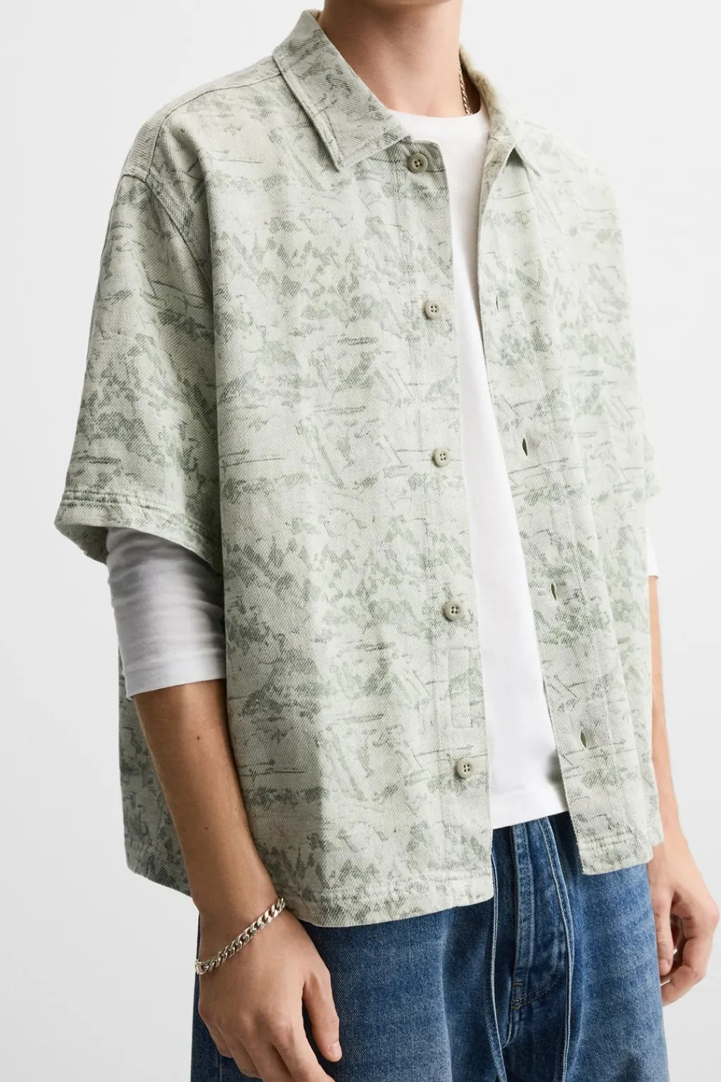 Camisa relaxed fit confeccionada en tejido de algodón. Cuello solapa y manga corta. Bajo con aberturas laterales. Cierre frontal de botonadura.