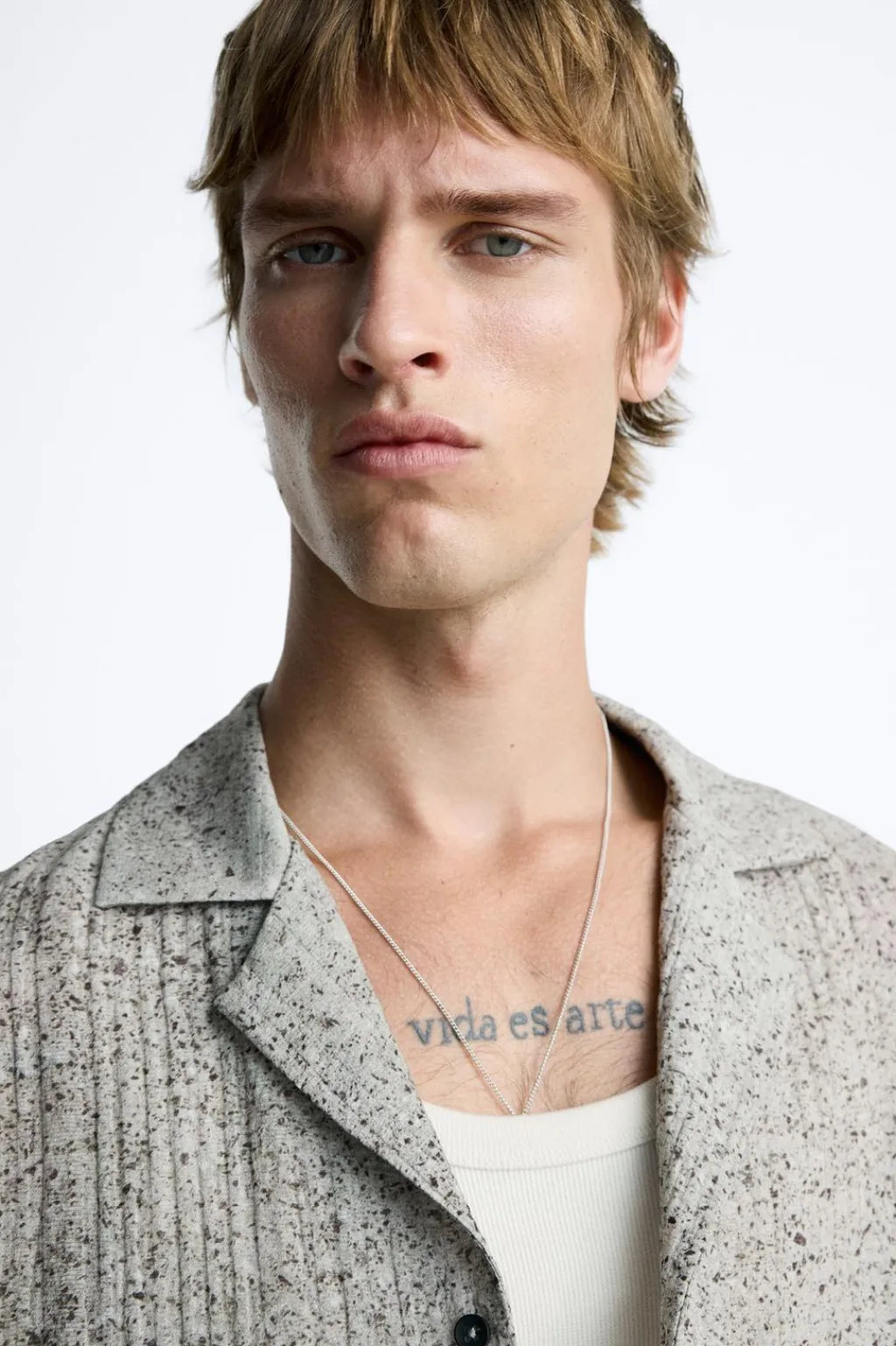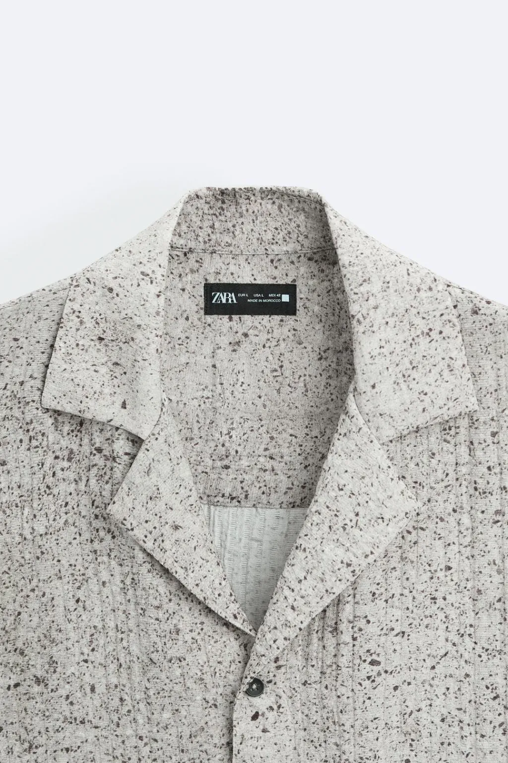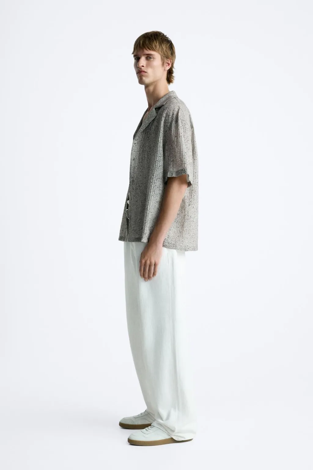 Camisa relaxed fit confeccionada en tejido fluido con mezcla de viscosa. Cuello bowling y manga corta. Cierre frontal de botonadura.