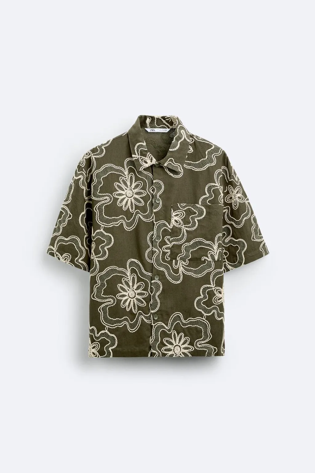 Camisa relaxed fit. Cuello solapa y manga corta. Bolsillo plastrón en pecho. Bajo con aberturas laterales. Cierre frontal de botonadura.