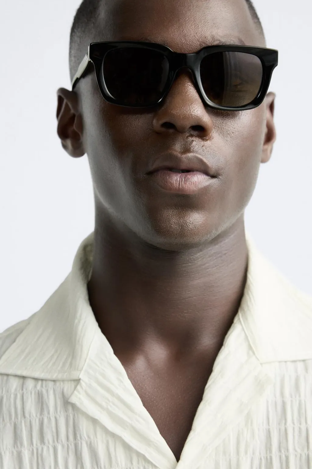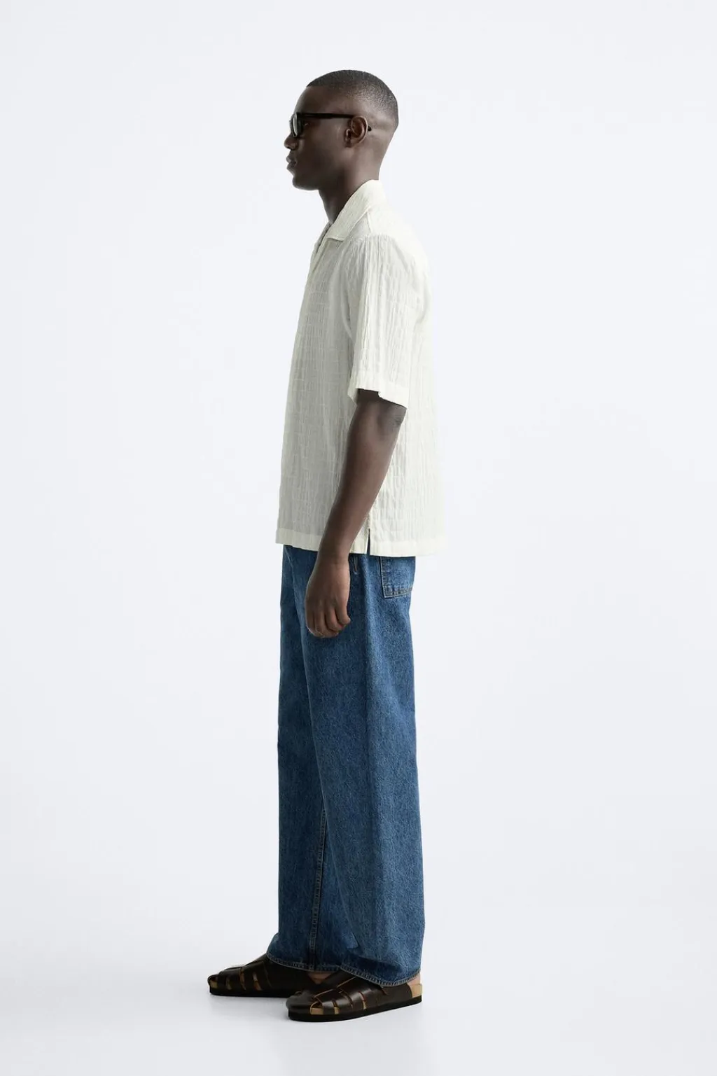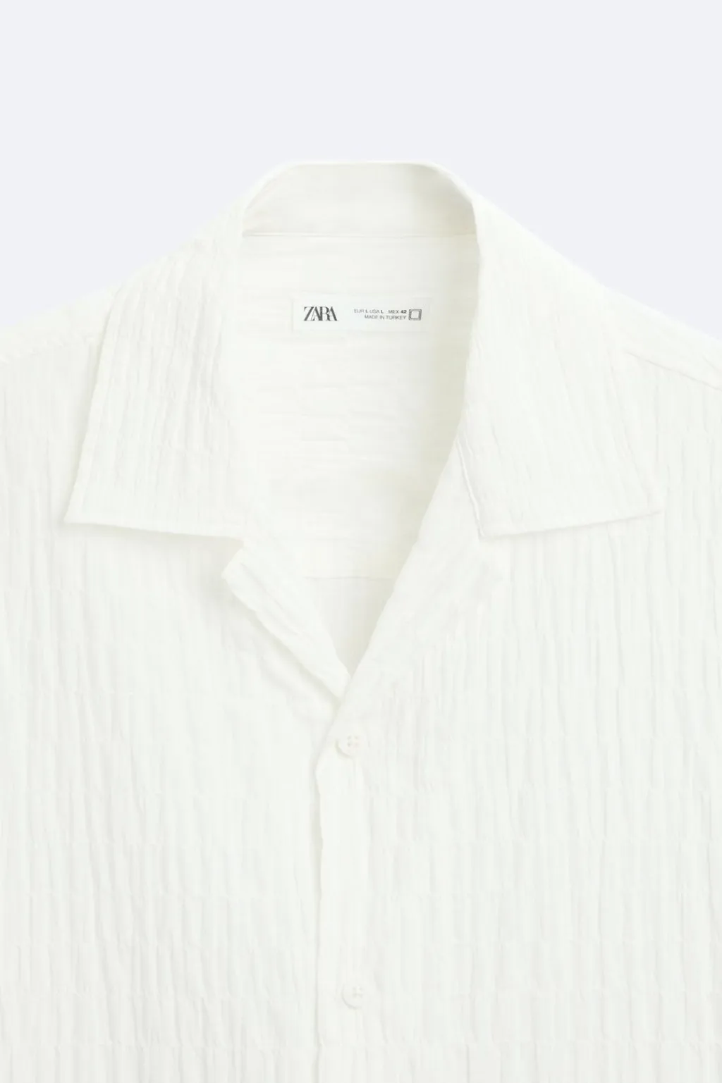 Camisa regular fit confeccionada en tejido de algodón con elasticidad. Cuello bowling y manga corta. Cierre frontal de botonadura.