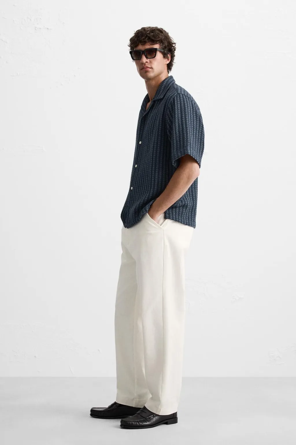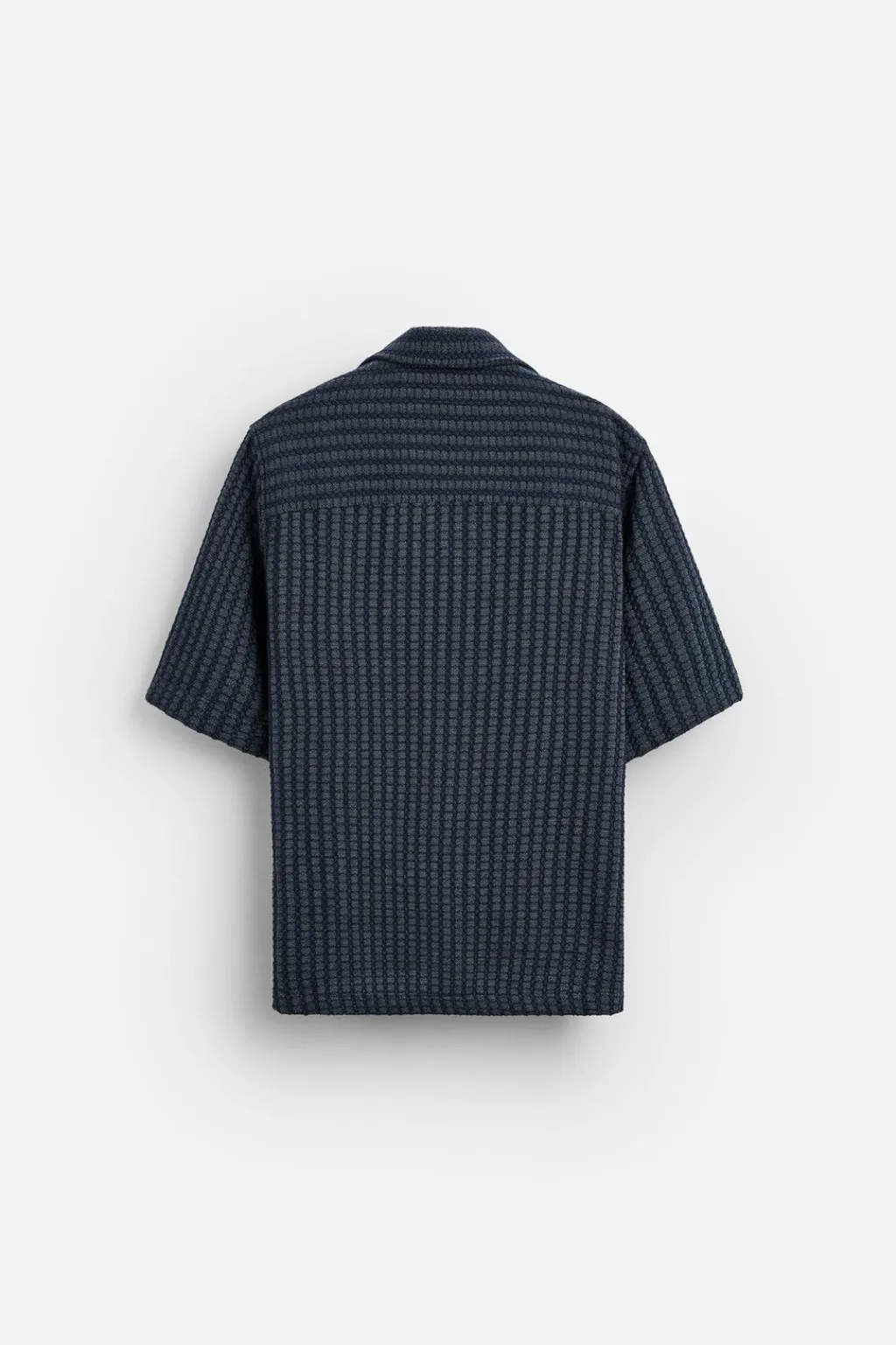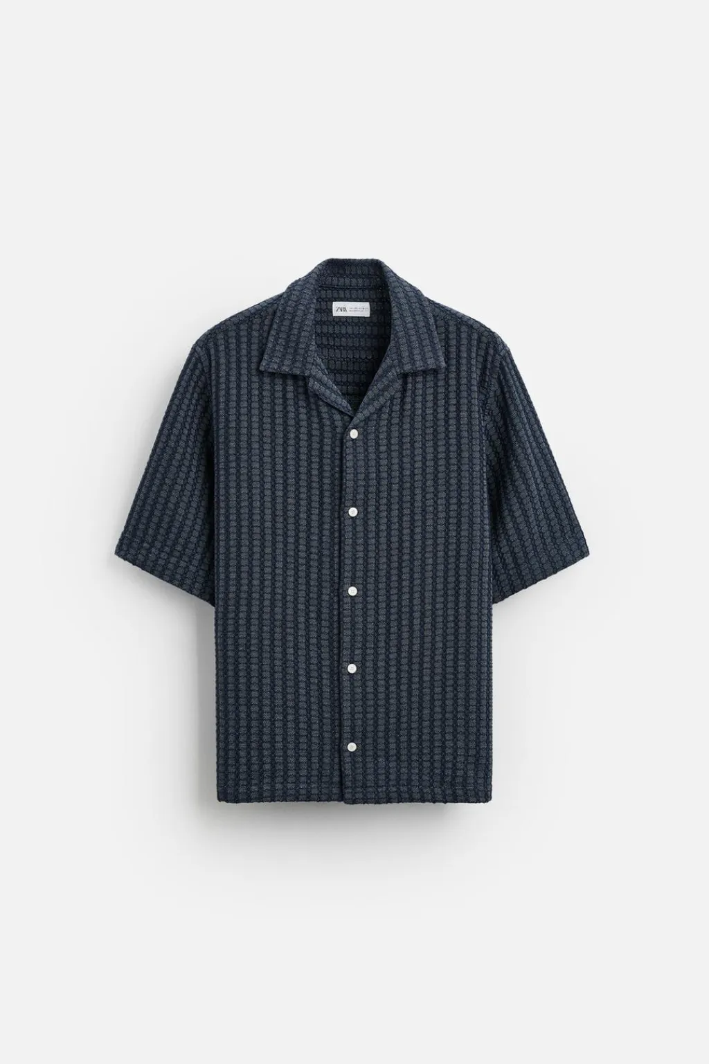 Camisa relaxed fit confeccionada en tejido con mezcla de algodón. Cuello bowling y manga corta. Cierre frontal de botonadura.