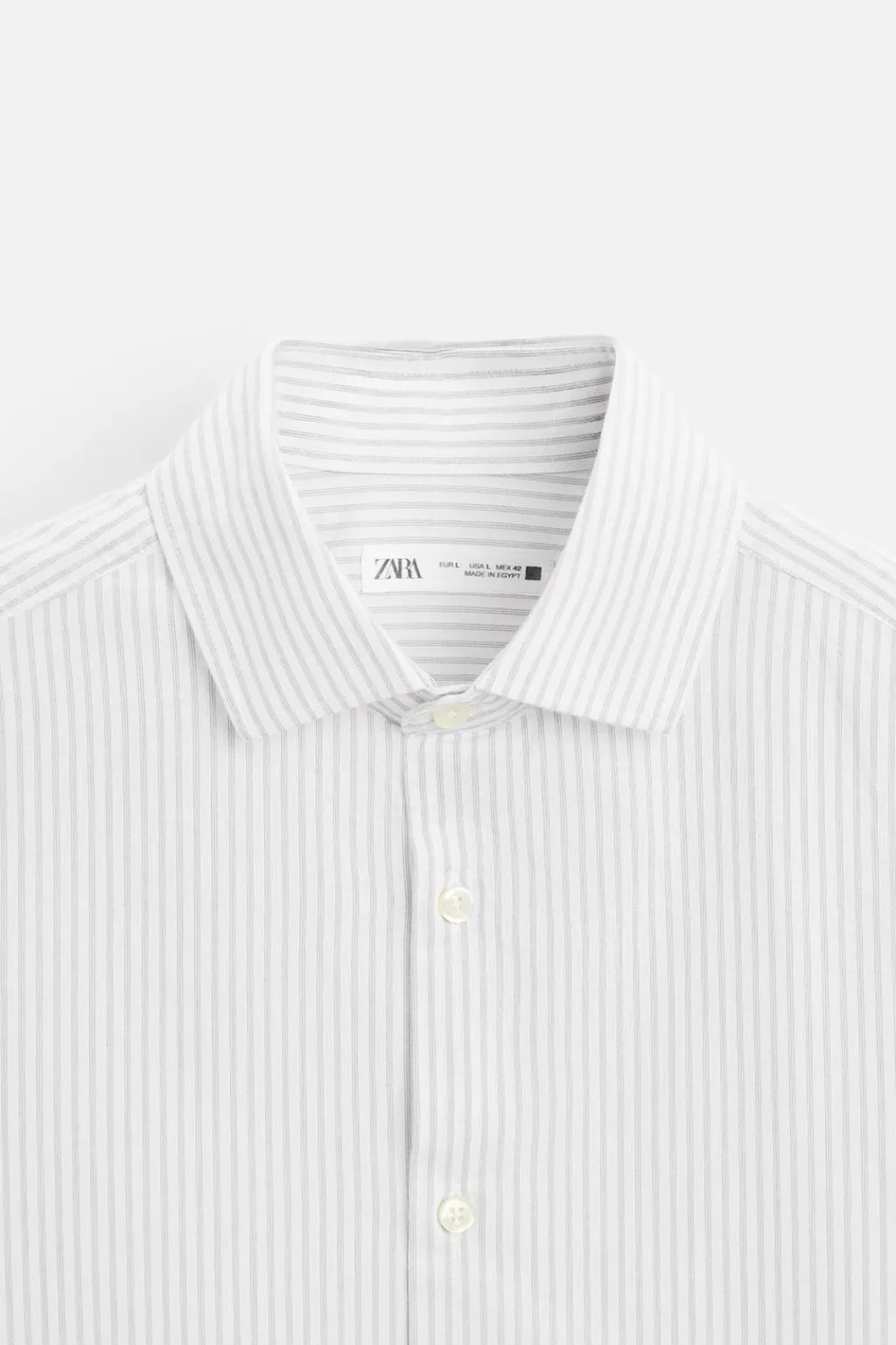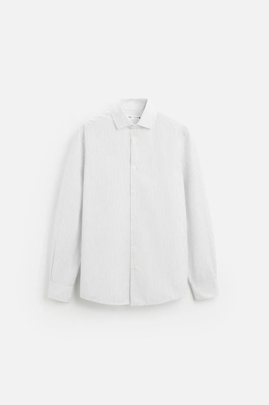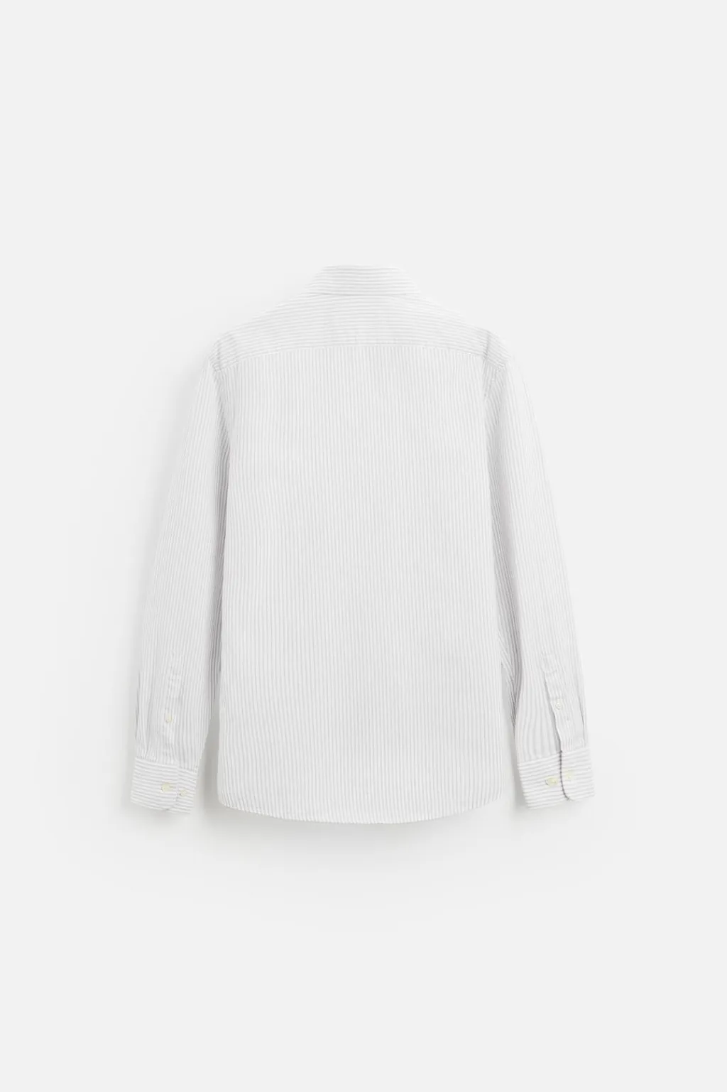 Camisa regular fit confeccionada en algodón con estructura diagonal. Cuello italiano y manga larga acabada en puño con botón. Cierre frontal de botonadura.