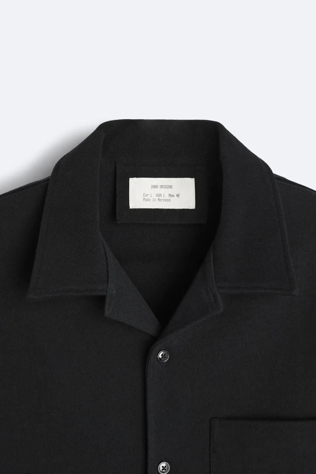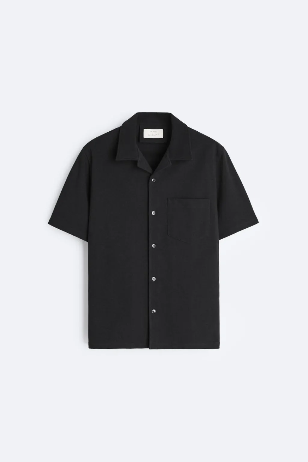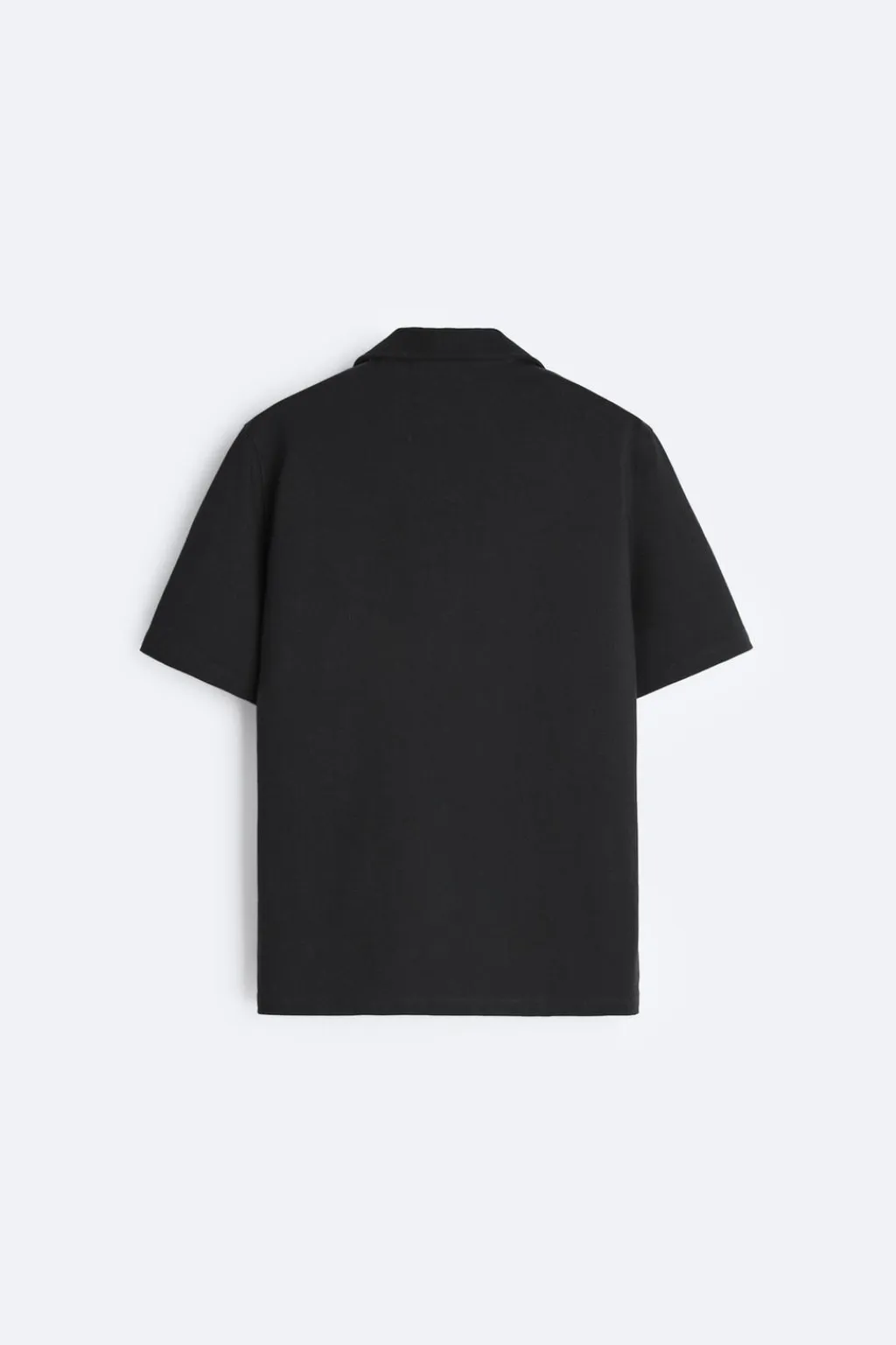 Camisa regular fit confeccionada en tejido compacto y pesado de algodón. Cuello bowling y manga corta. Bolsillo plastrón en pecho. Bajo con aberturas laterales. Cierre frontal de botonadura.