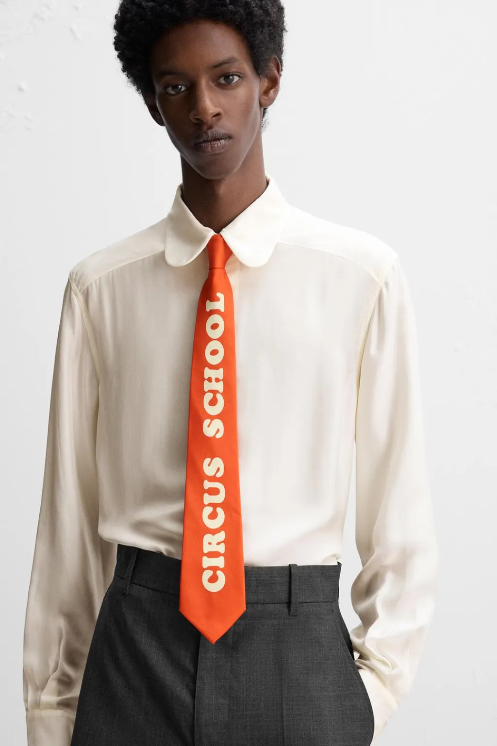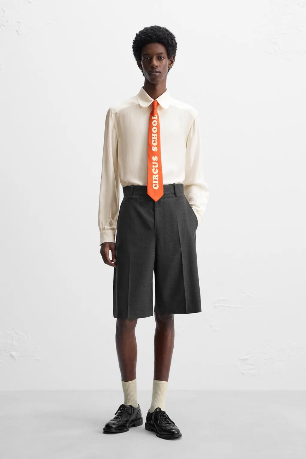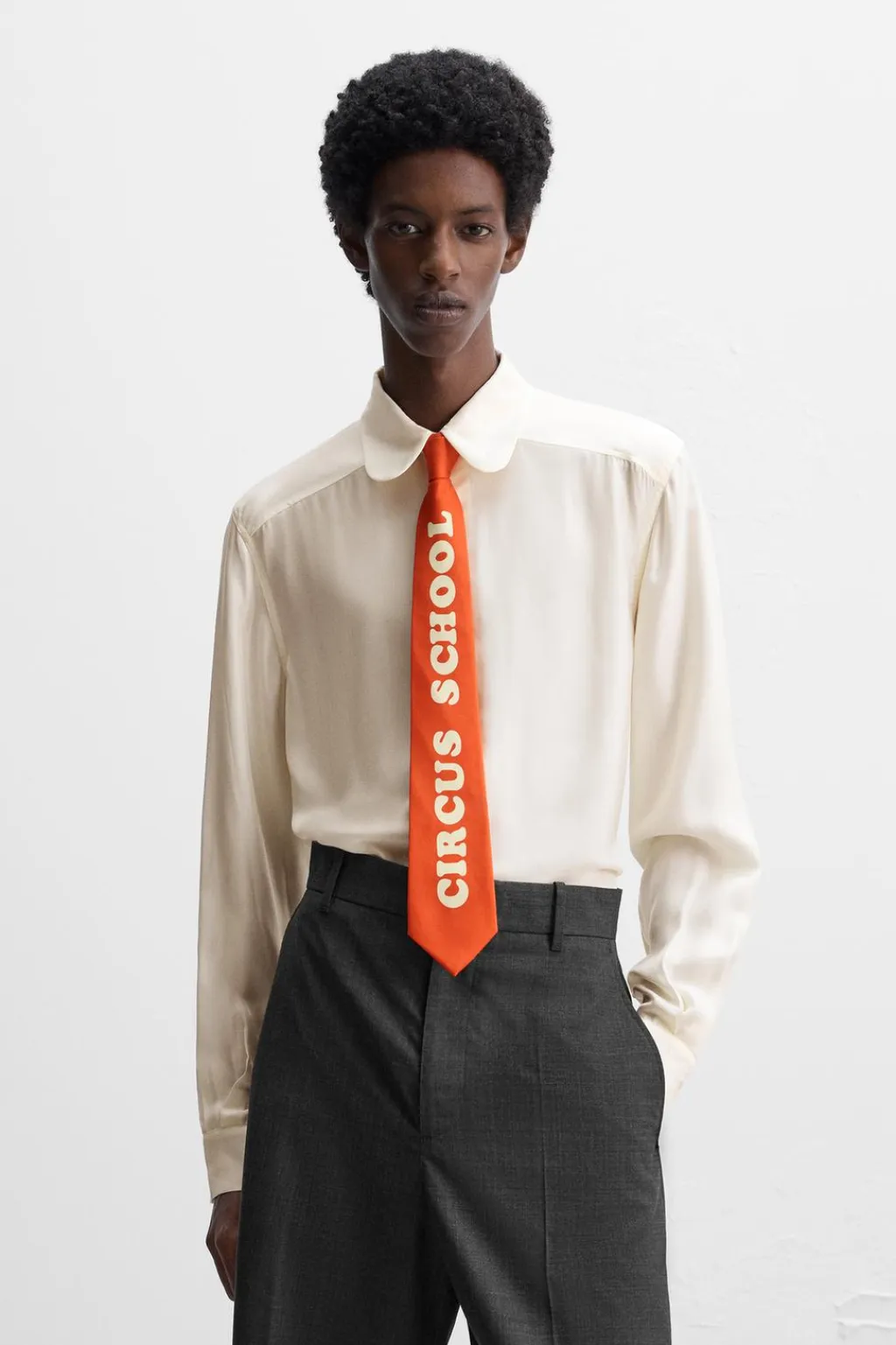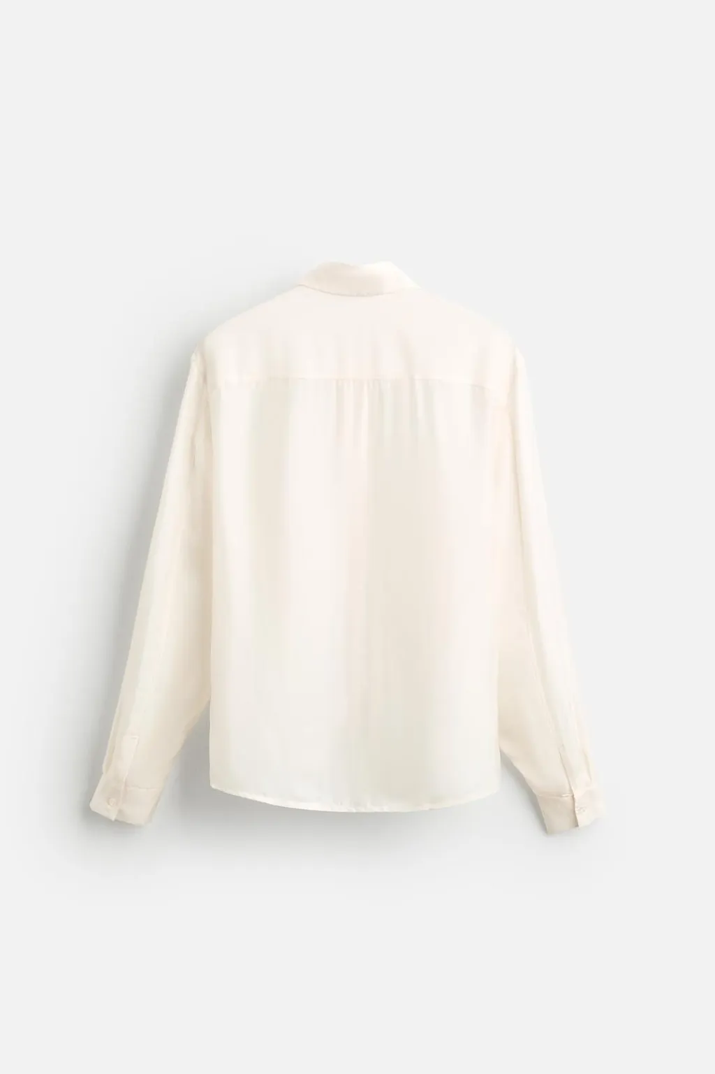 Camisa relaxed fit confeccionada en tejido con mezcla de viscosa y seda. Cuello italiano y manga larga acabada en puño con botón. Cierre frontal de botonadura.