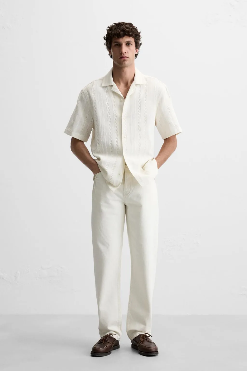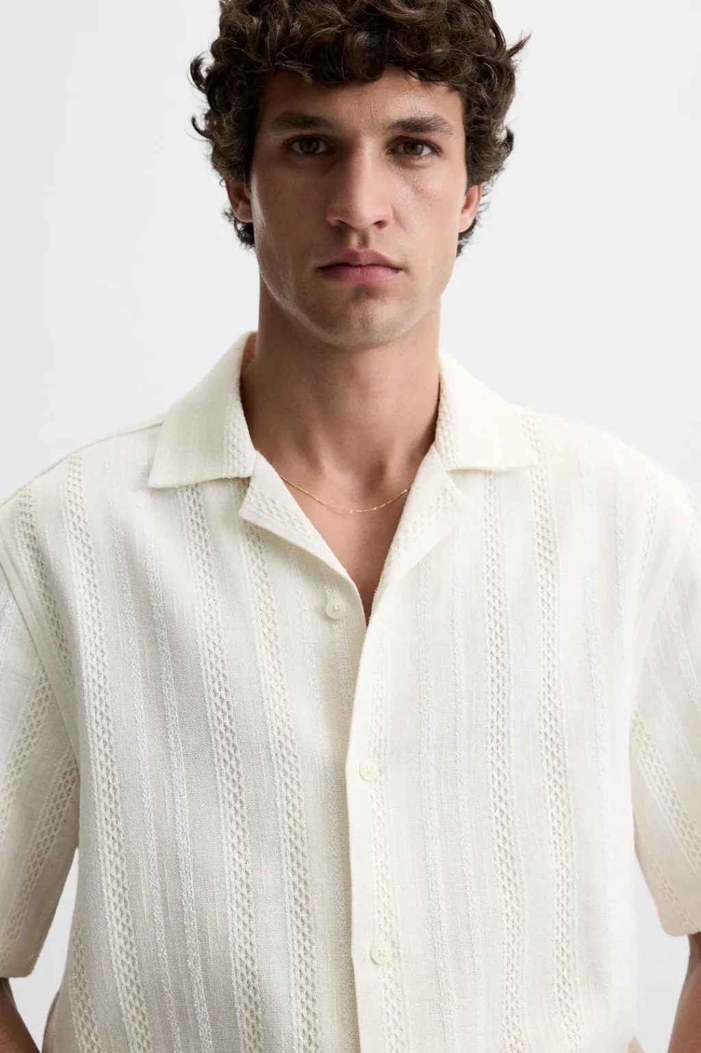 Camisa relaxed fit. Cuello bowling y manga corta. Cierre frontal de botonadura.