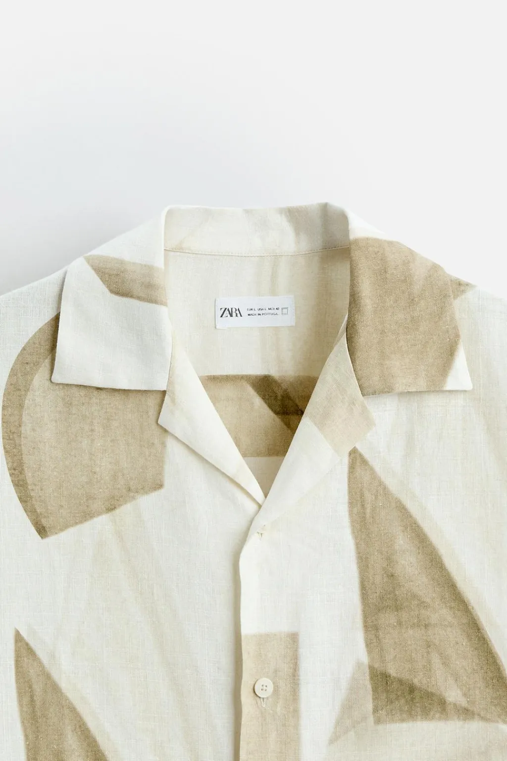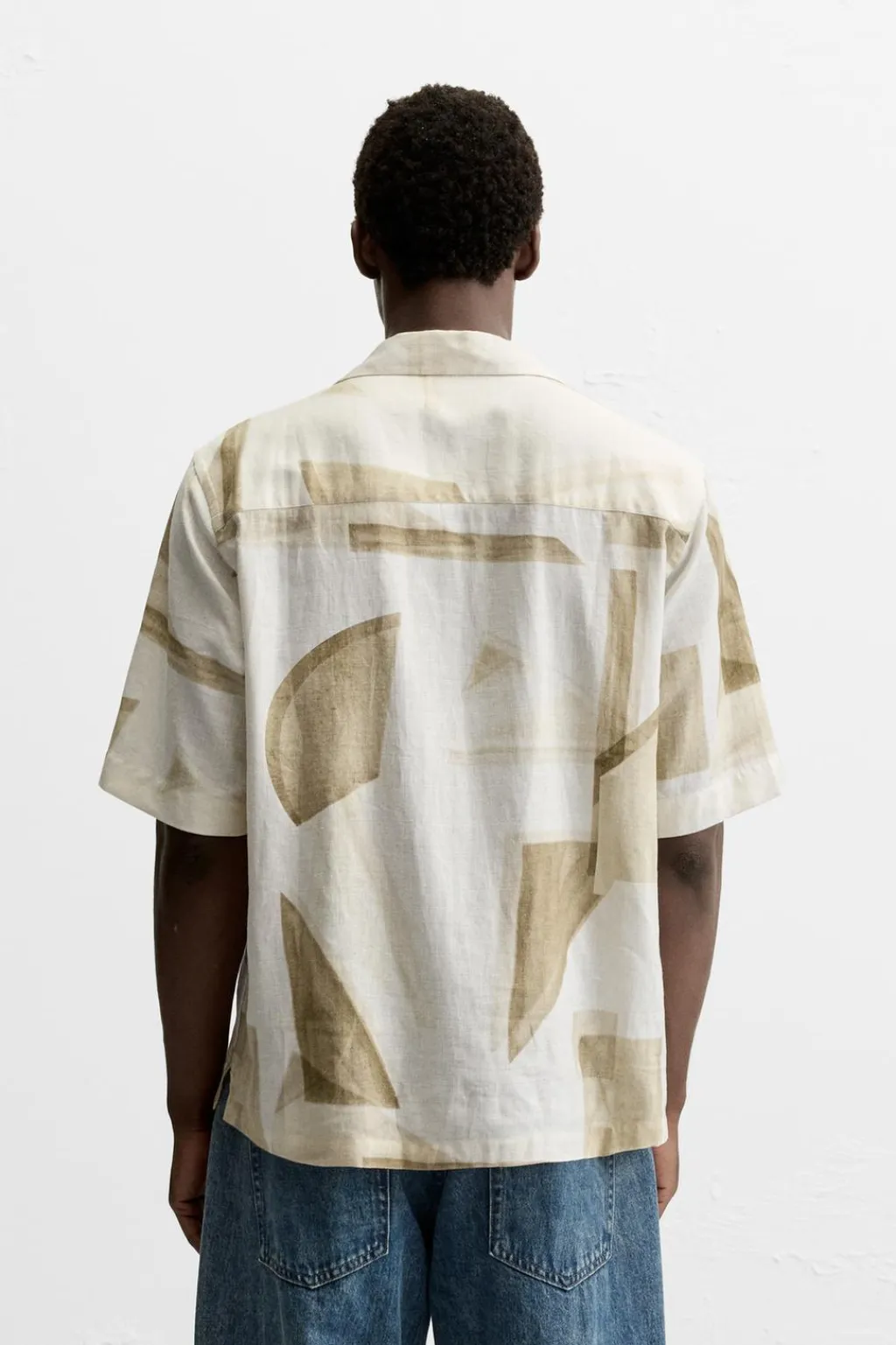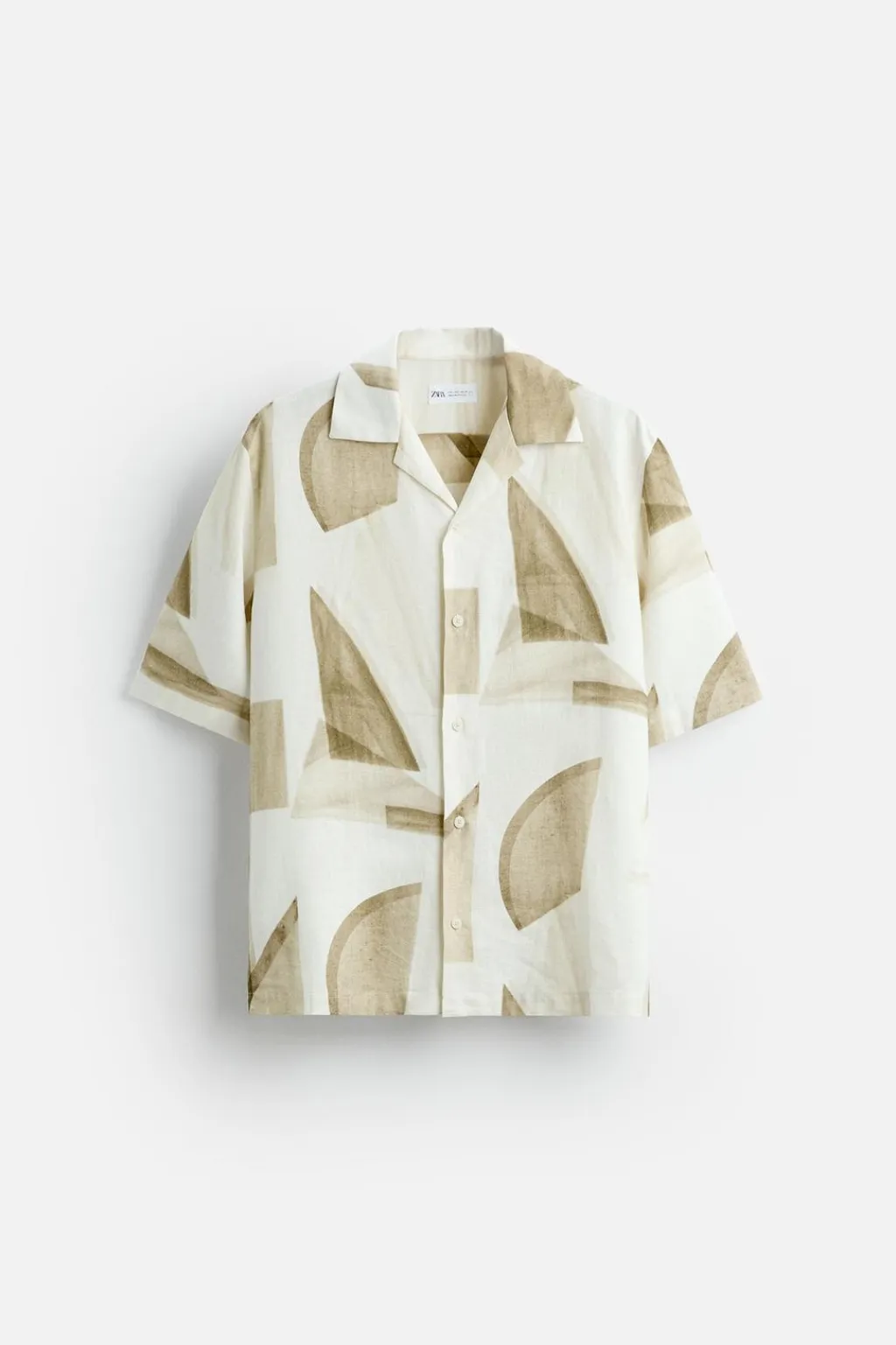 Camisa regular fit confeccionada en tejido de lino y viscosa. Cuello bowling y manga corta. Bajo con aberturas laterales. Cierre frontal de botonadura.
