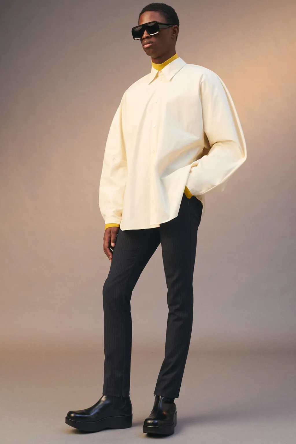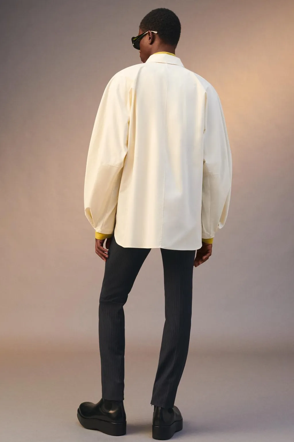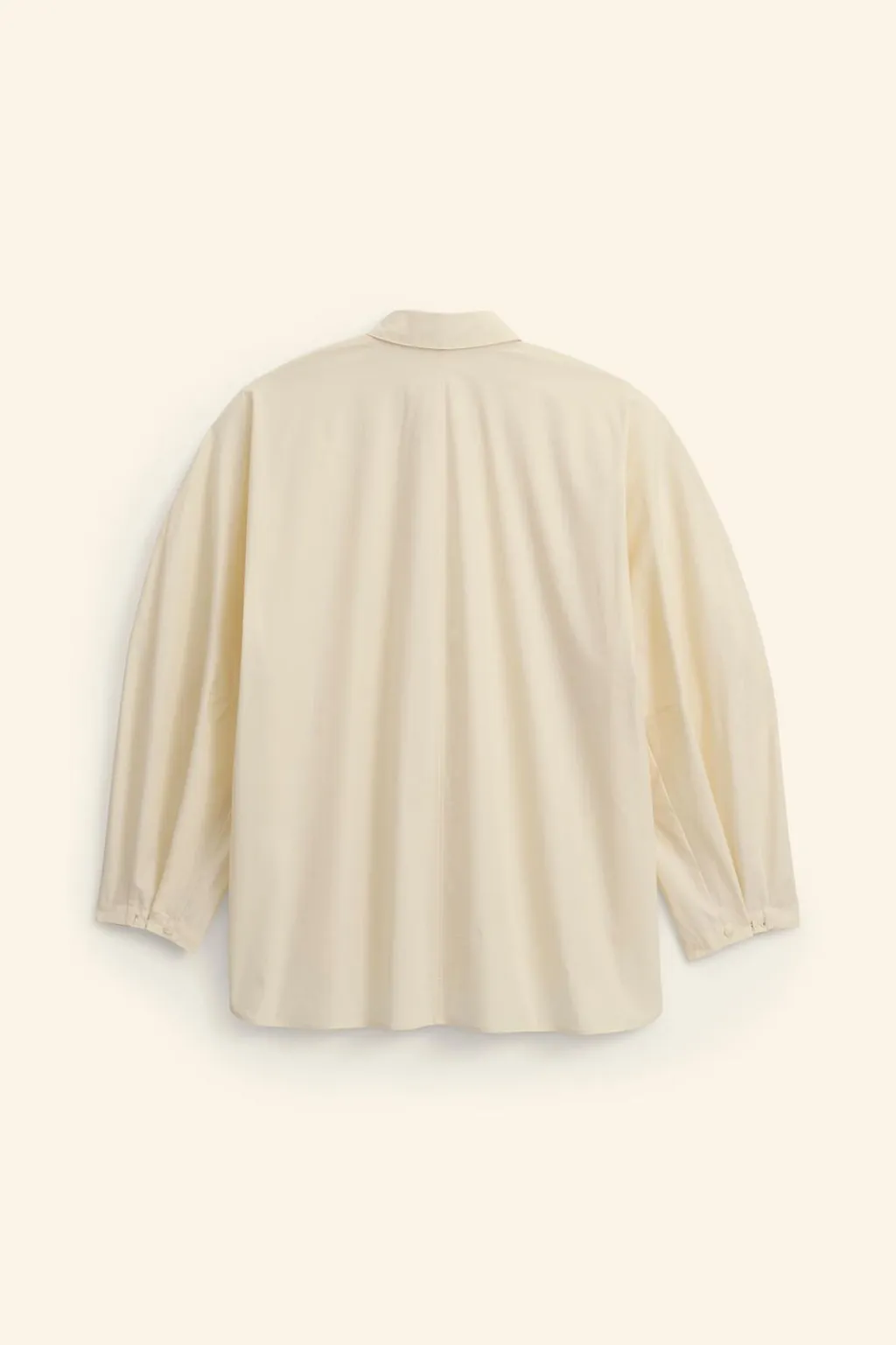 Camisa relaxed fit confeccionada en tejido de algodón con elasticidad. Cuello solapa y manga larga con volumen globo acabada en puño ajustable con botones. Cierre frontal de botonadura.