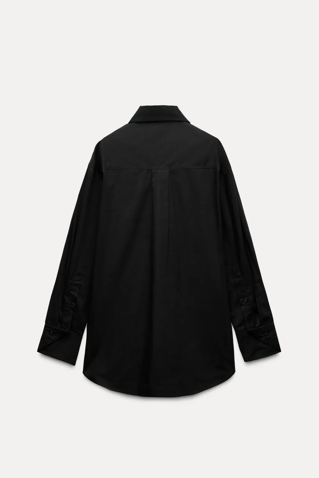 Camisa oversize de cuello solapa. Manga larga con hombro caído acabada en puño ajustable con botones. Pinza en espalda. Cierre frontal con botones.