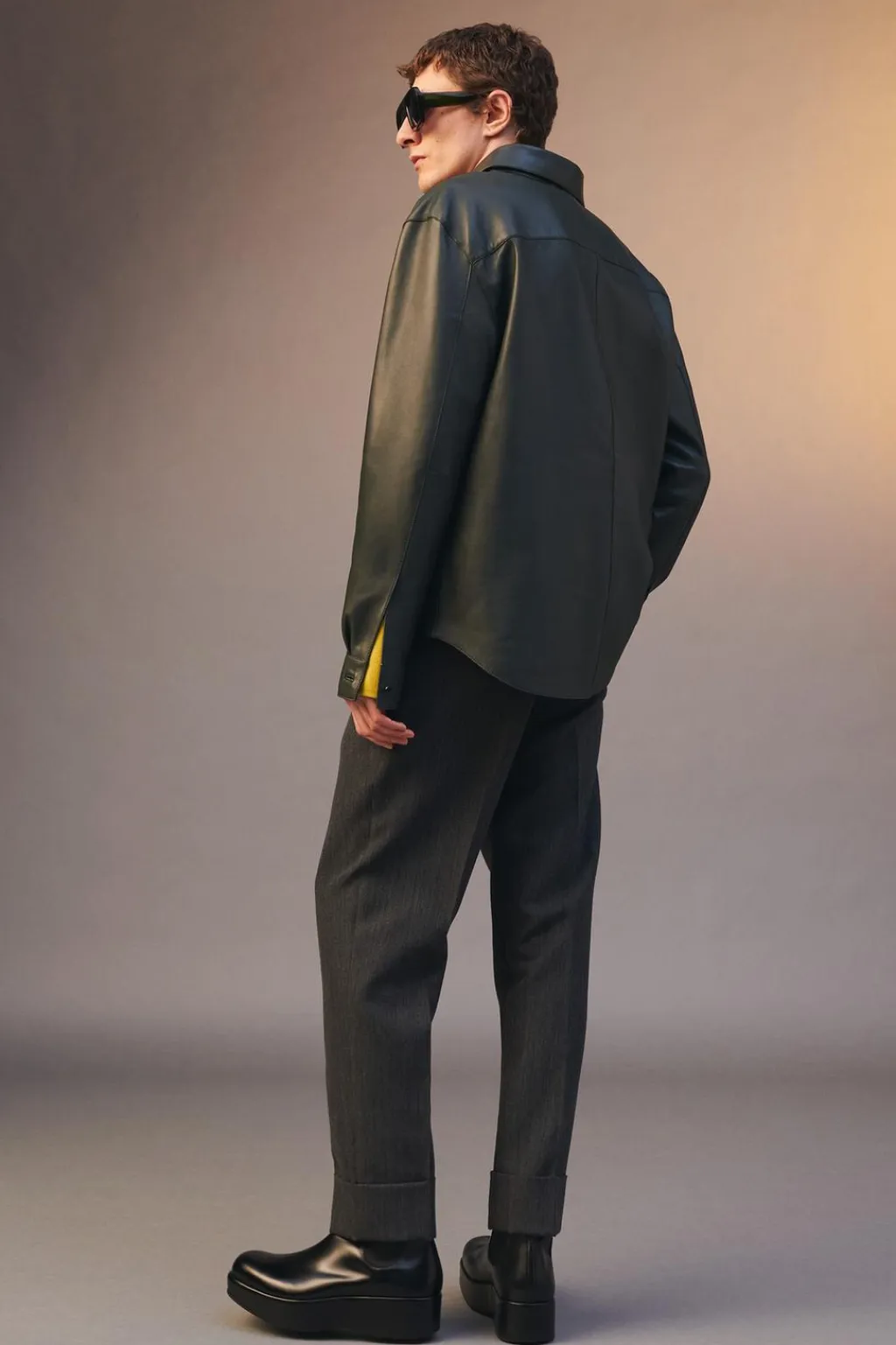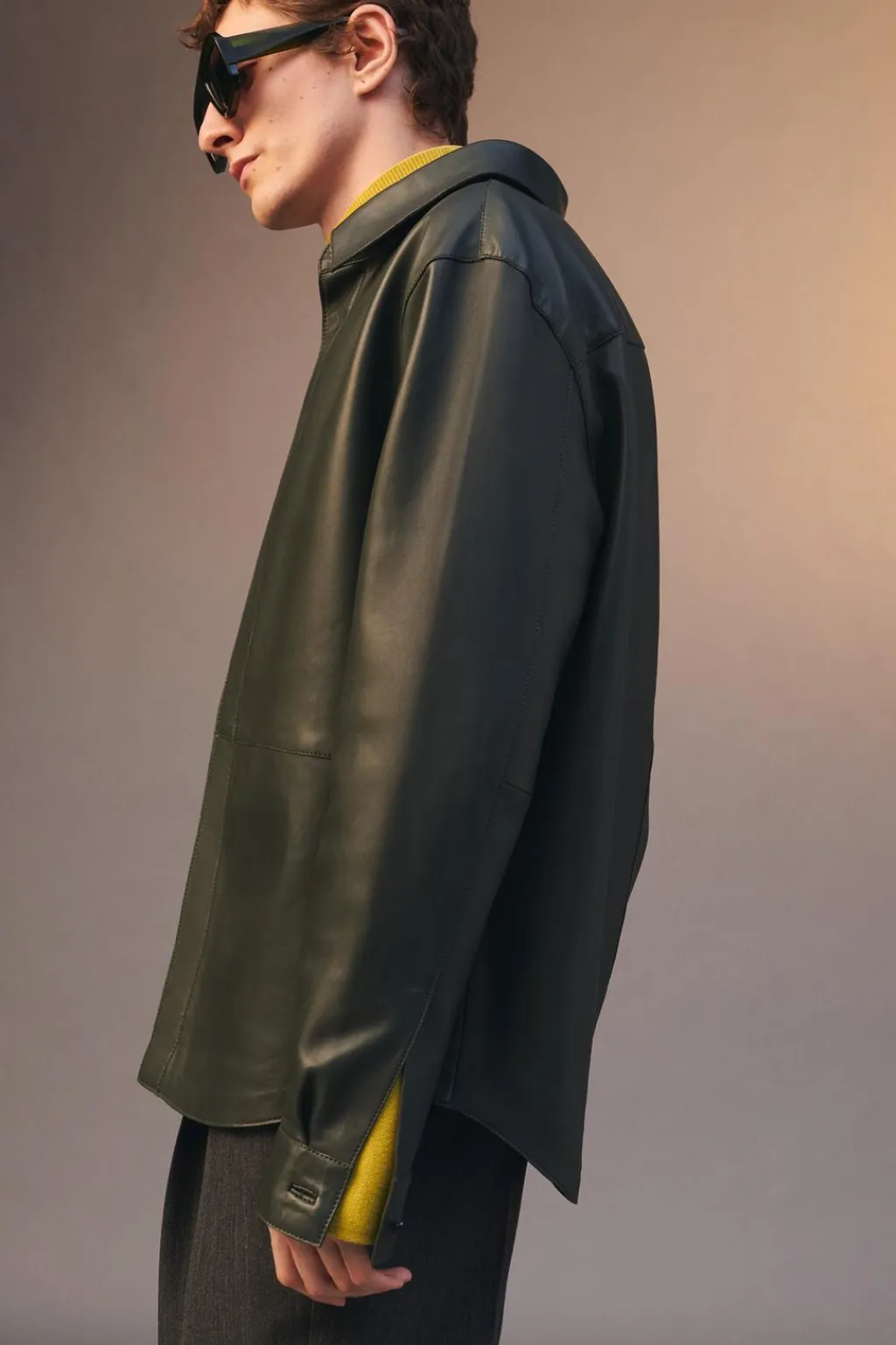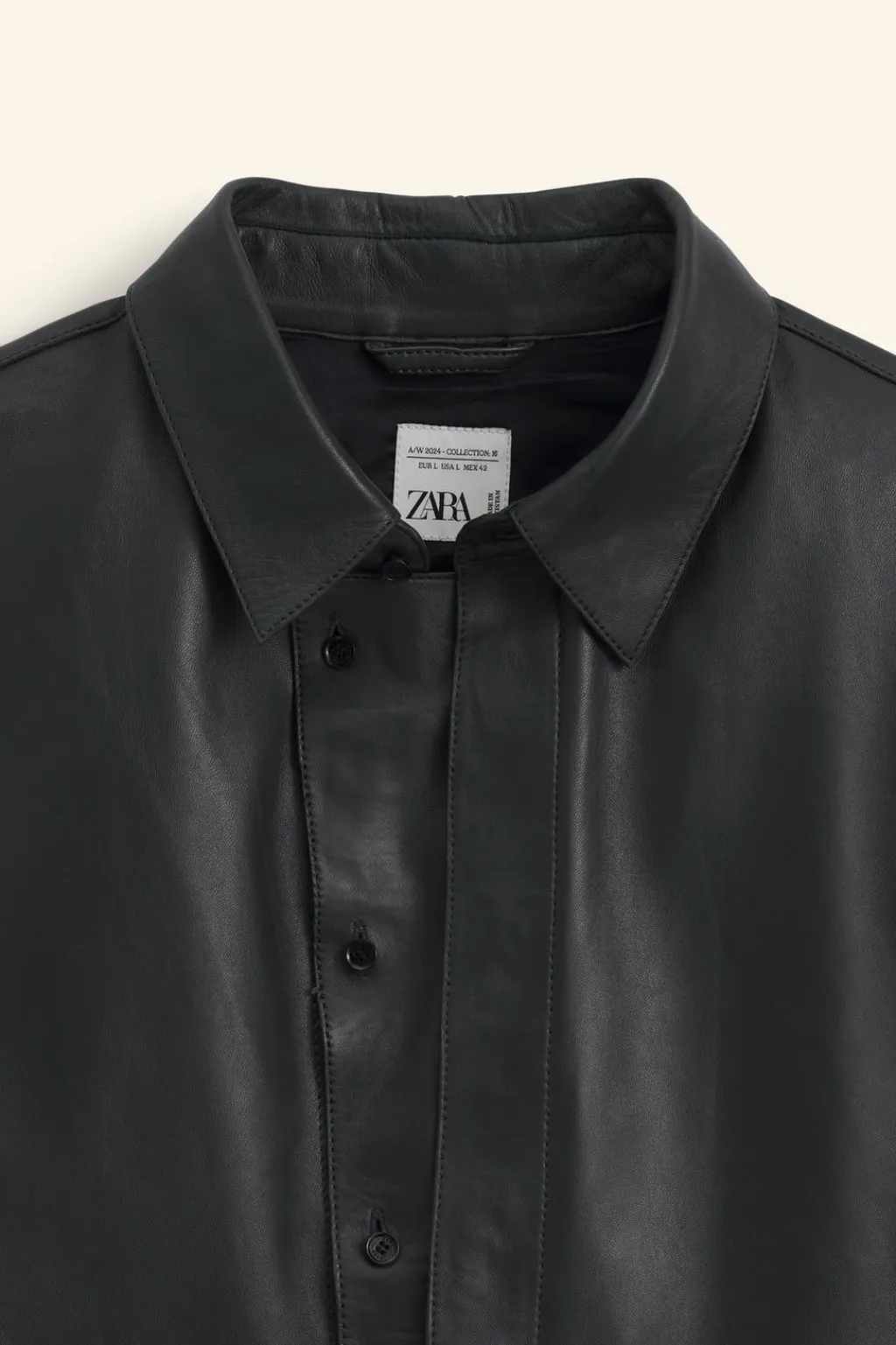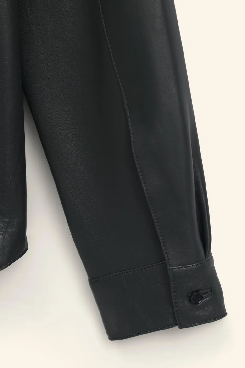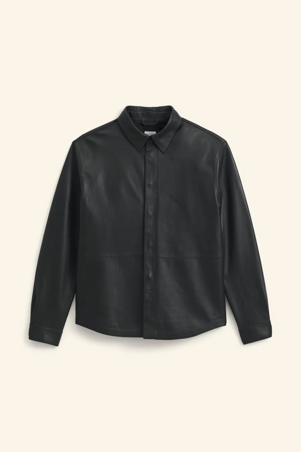 Camisa slim fit confeccionada en piel. Cuello solapa y manga larga acabada en puño ajustable con botones. Cierre frontal de botonadura con diferentes posiciones.