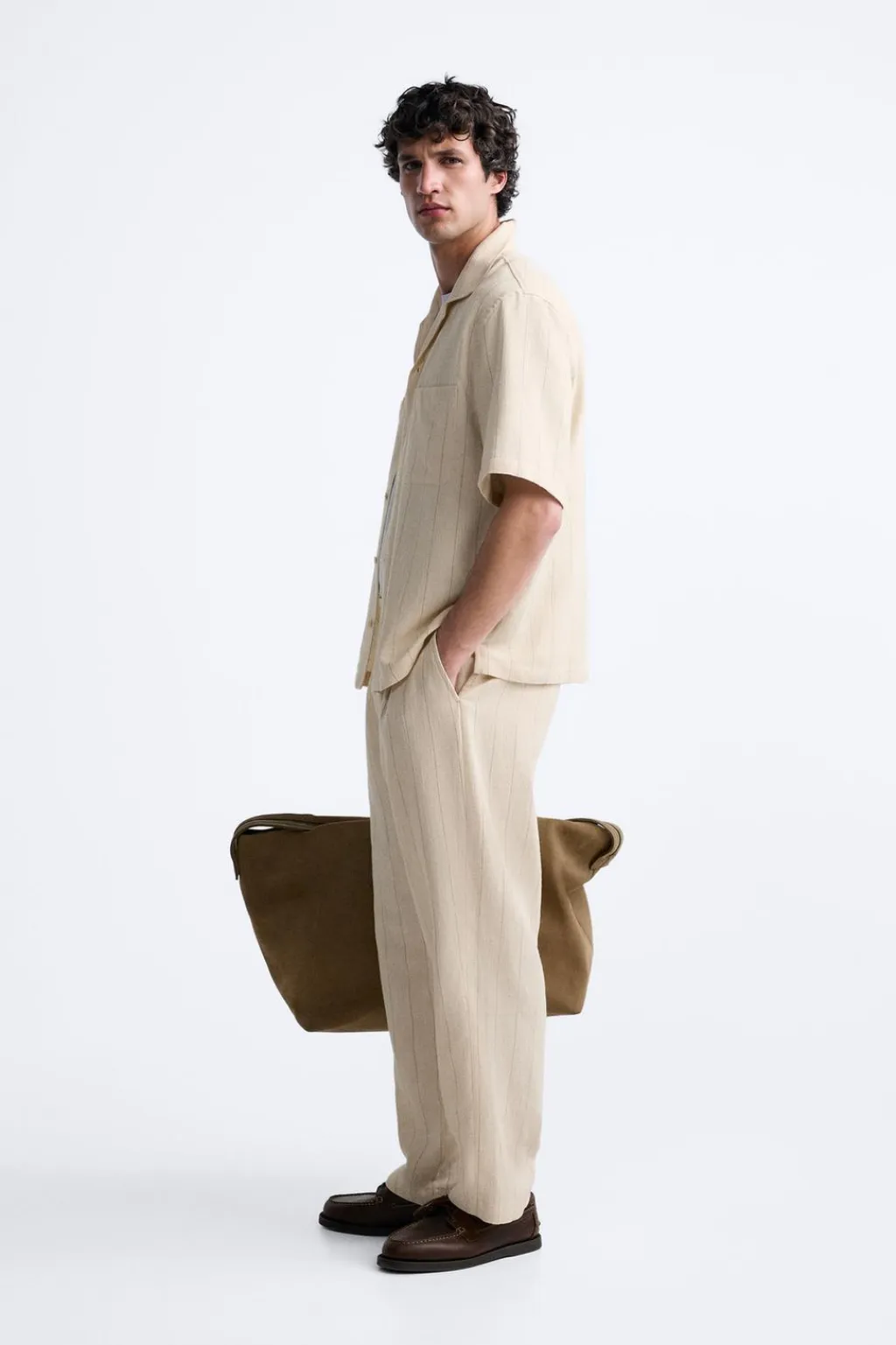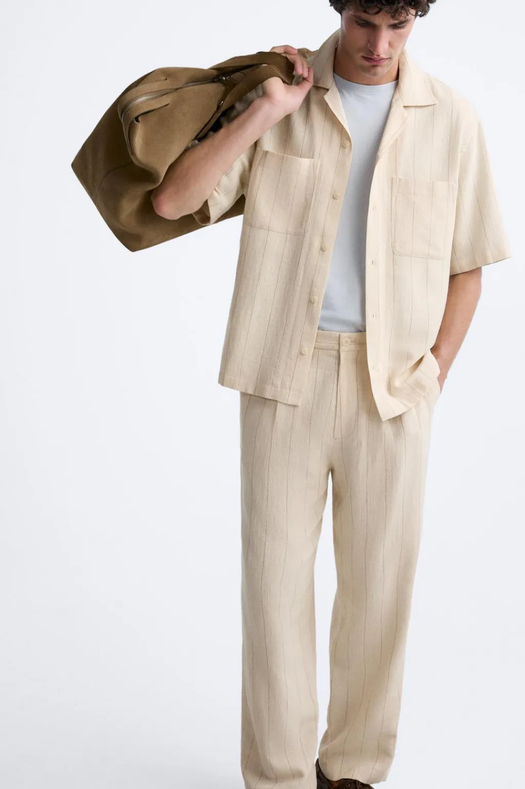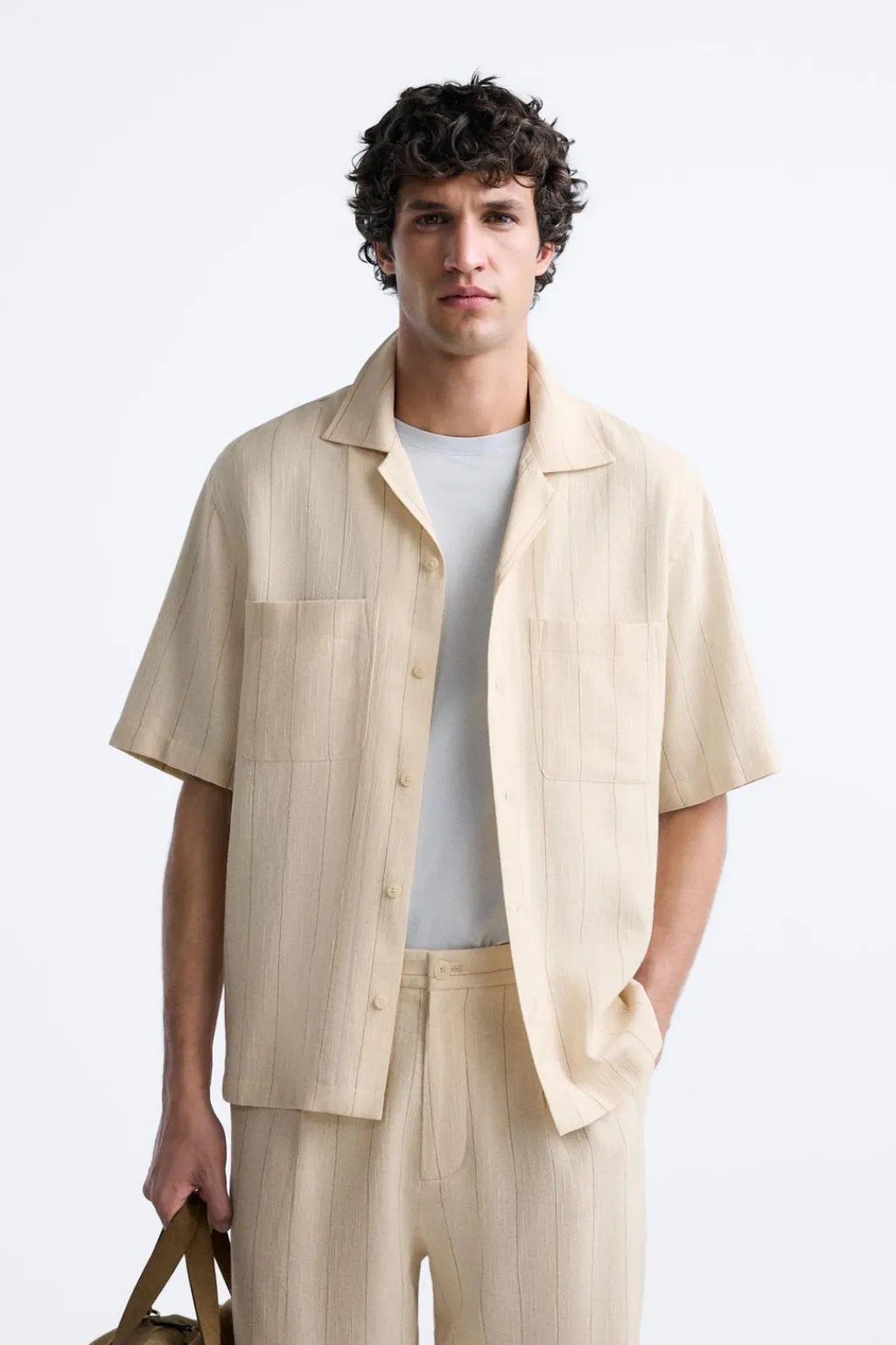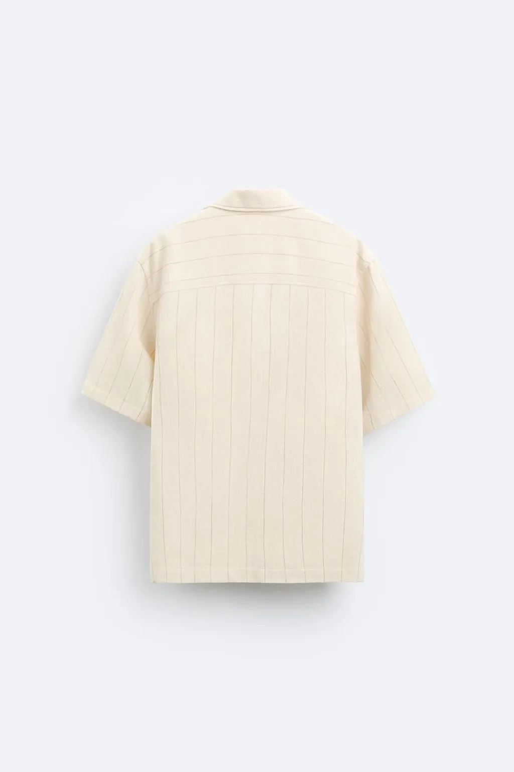 Camisa relaxed fit confeccionada en tejido con mezcla de algodón. Cuello bowling y manga corta. Bolsillo plastrón en pecho. Bajo con aberturas laterales. Cierre frontal de botonadura.