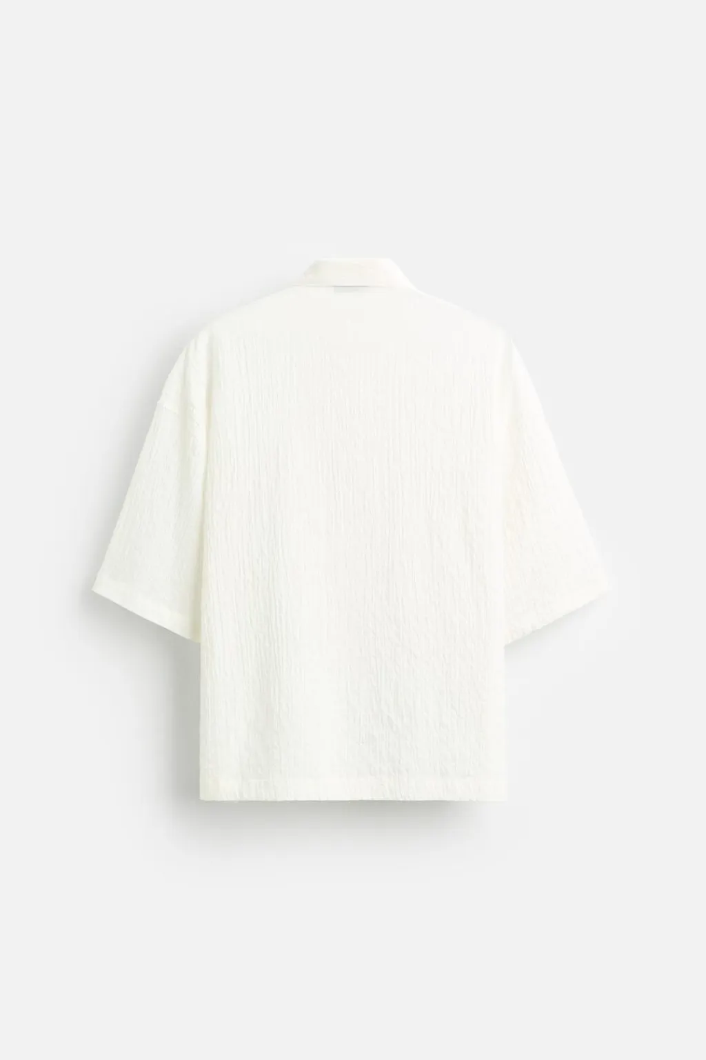 Camisa relaxed fit. Cuello solapa y manga corta. Bolsillo plastrón en pecho. Cierre frontal de botonadura.