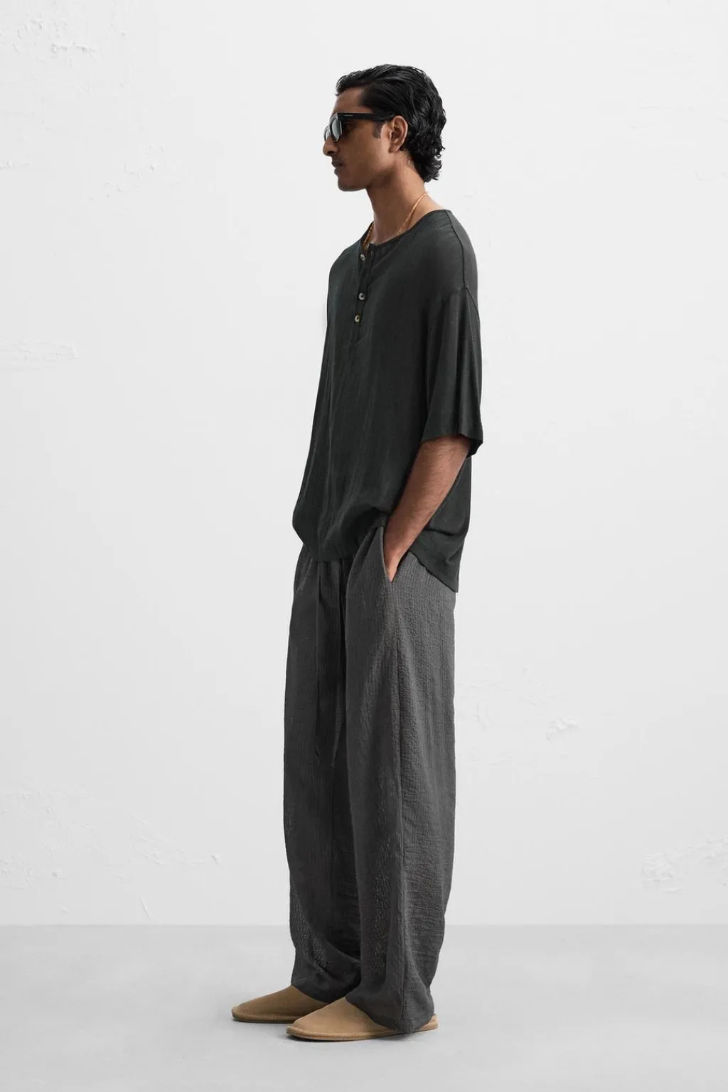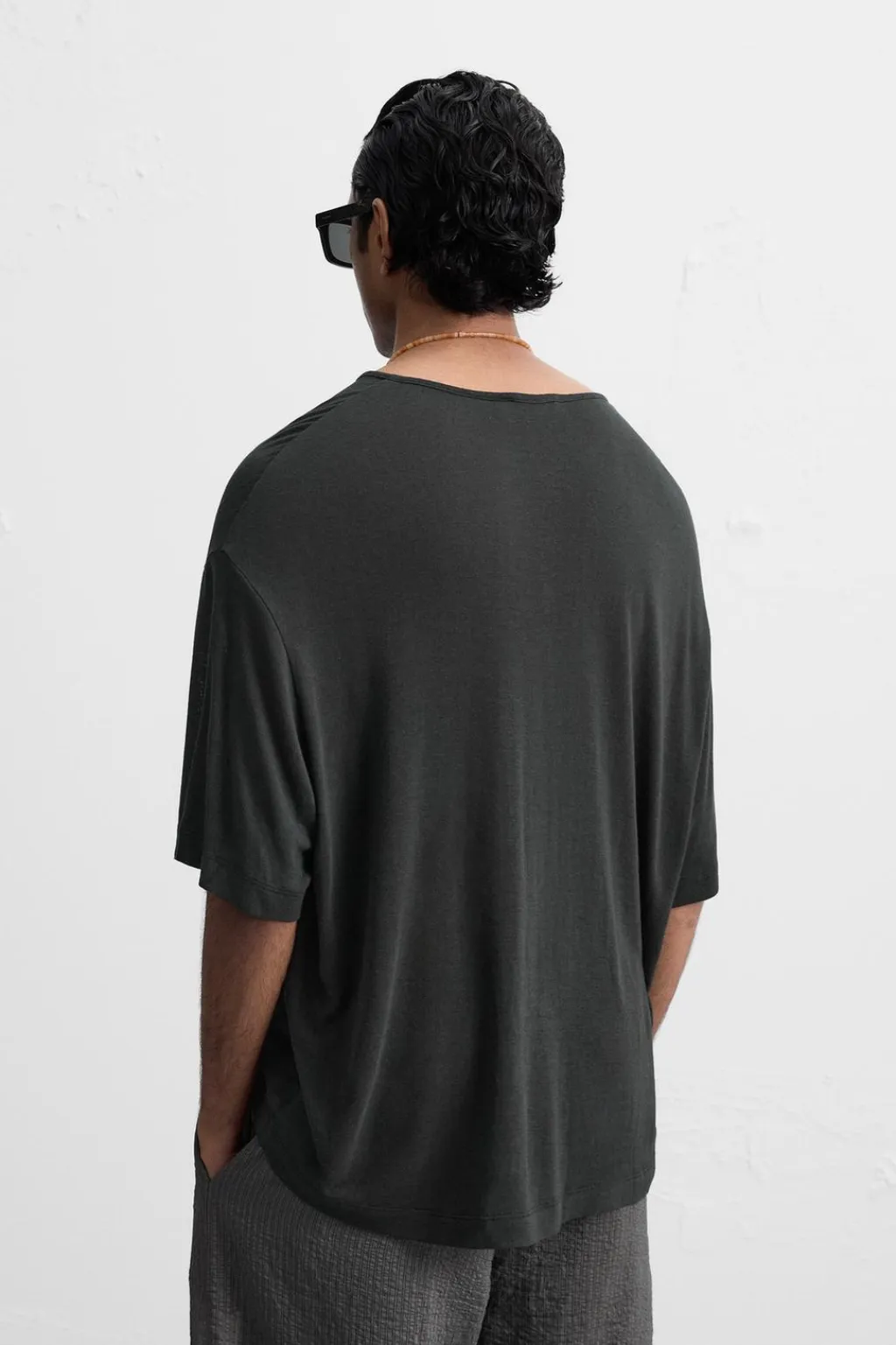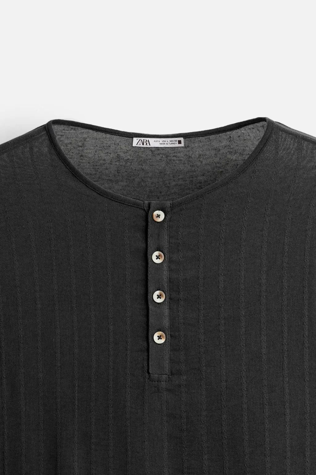 Camiseta relaxed fit. Cuello redondo con cierre frontal de botonadura. Manga corta.