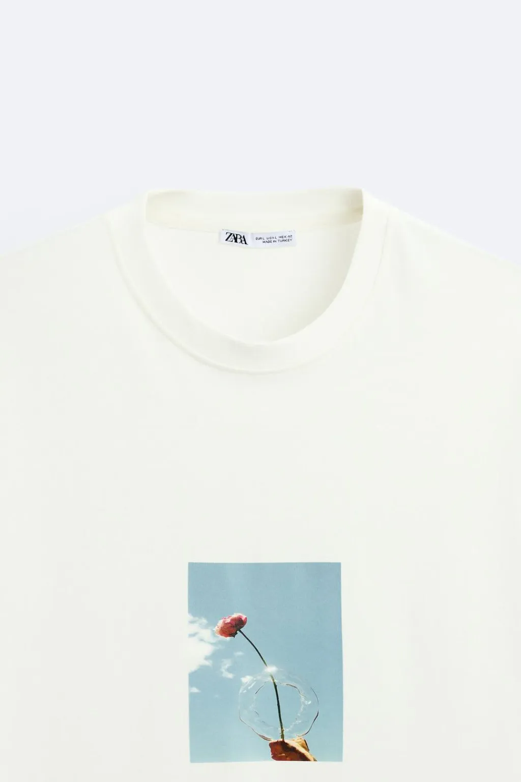 Camiseta relaxed fit. Cuello redondo y manga corta. Estampación frontal de fotografía de @Valeria Vasi combinada a contraste con estampación de textos en espalda.