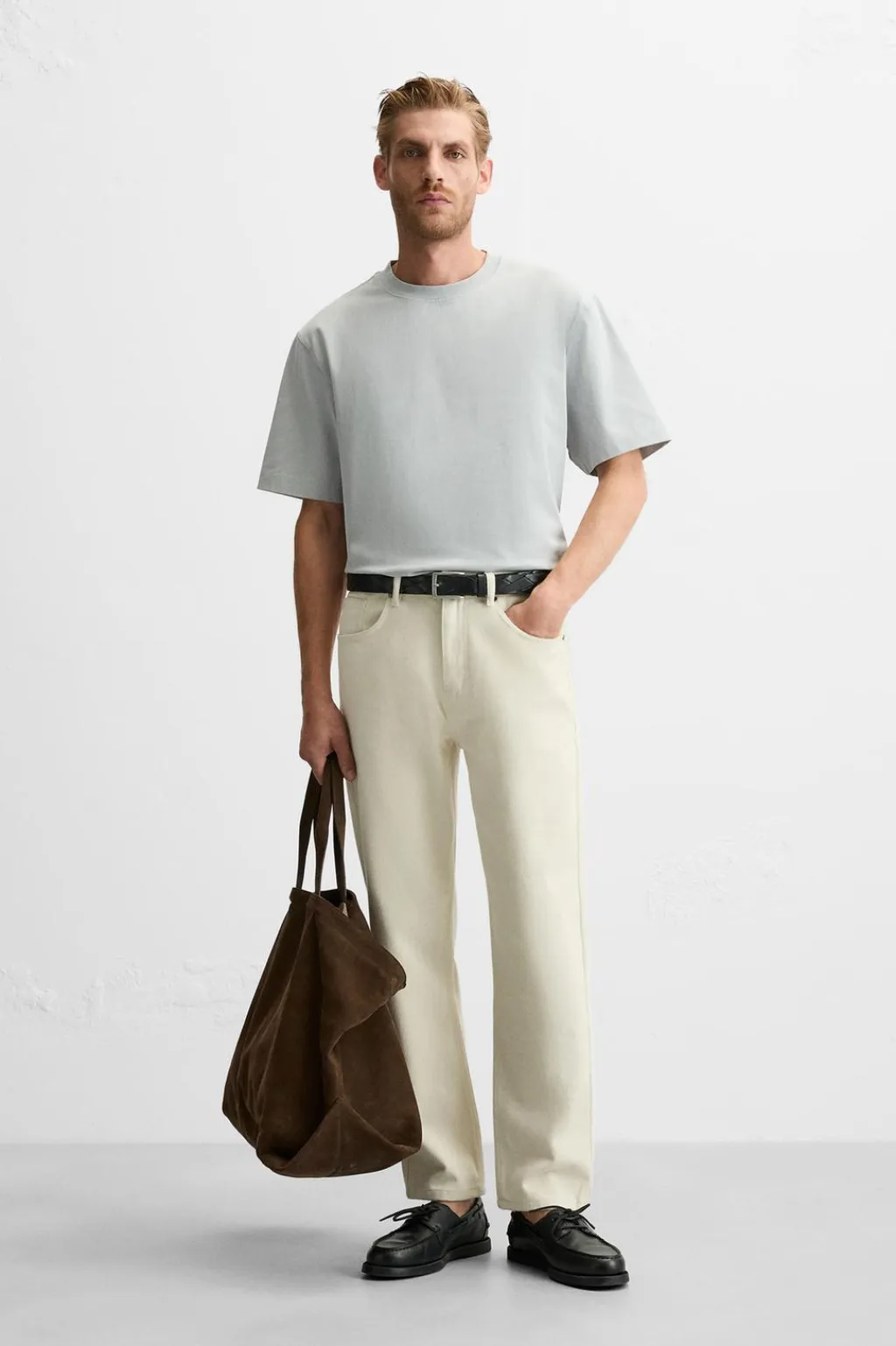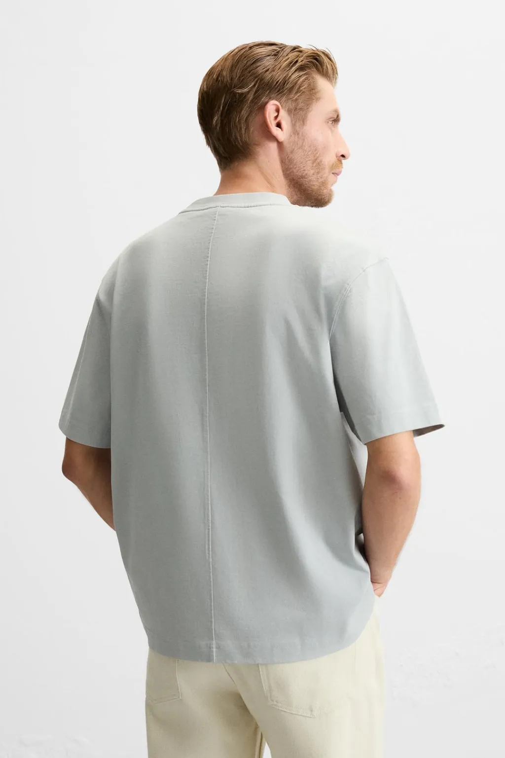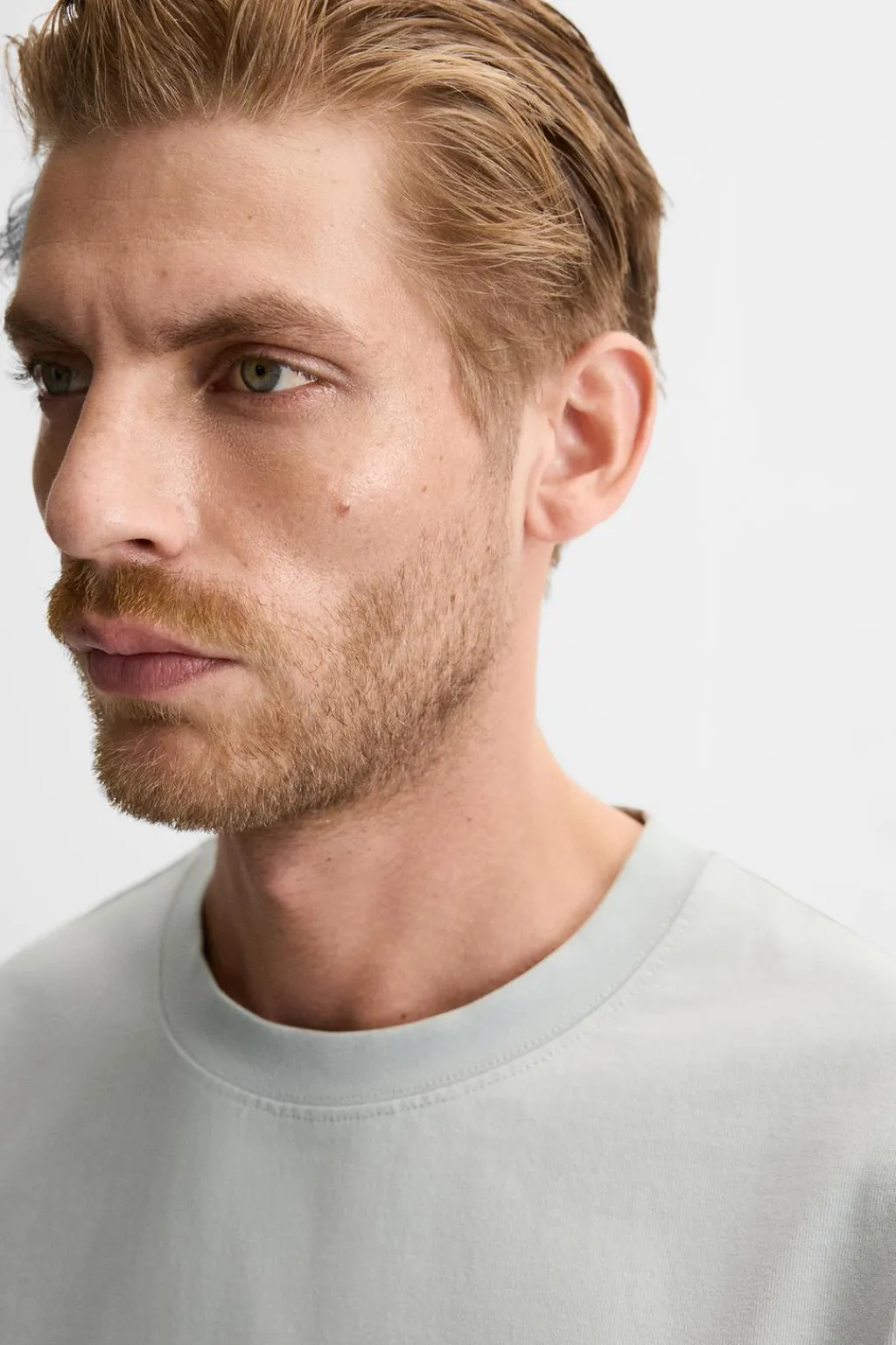 Camiseta relaxed fit confeccionada en tejido de algodón compacto. Cuello redondo y manga corta. Efecto lavado.