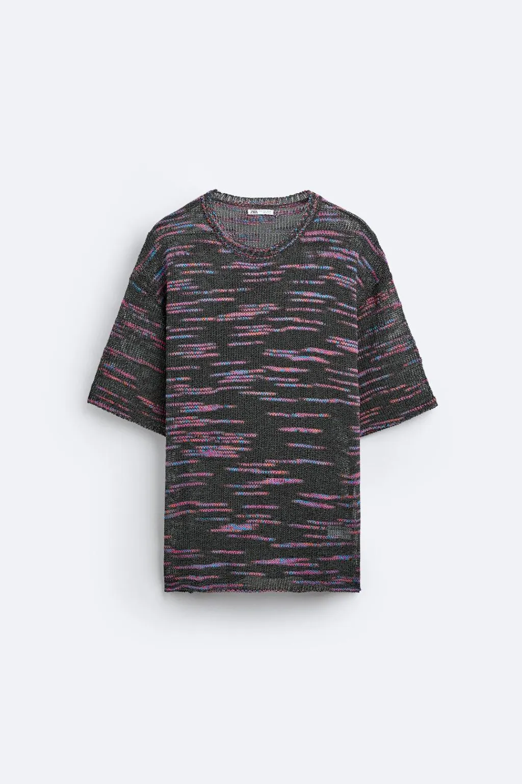 Camiseta de punto tejida en hilatura con algodón. Cuello redondo y manga corta. Acabados en rib.