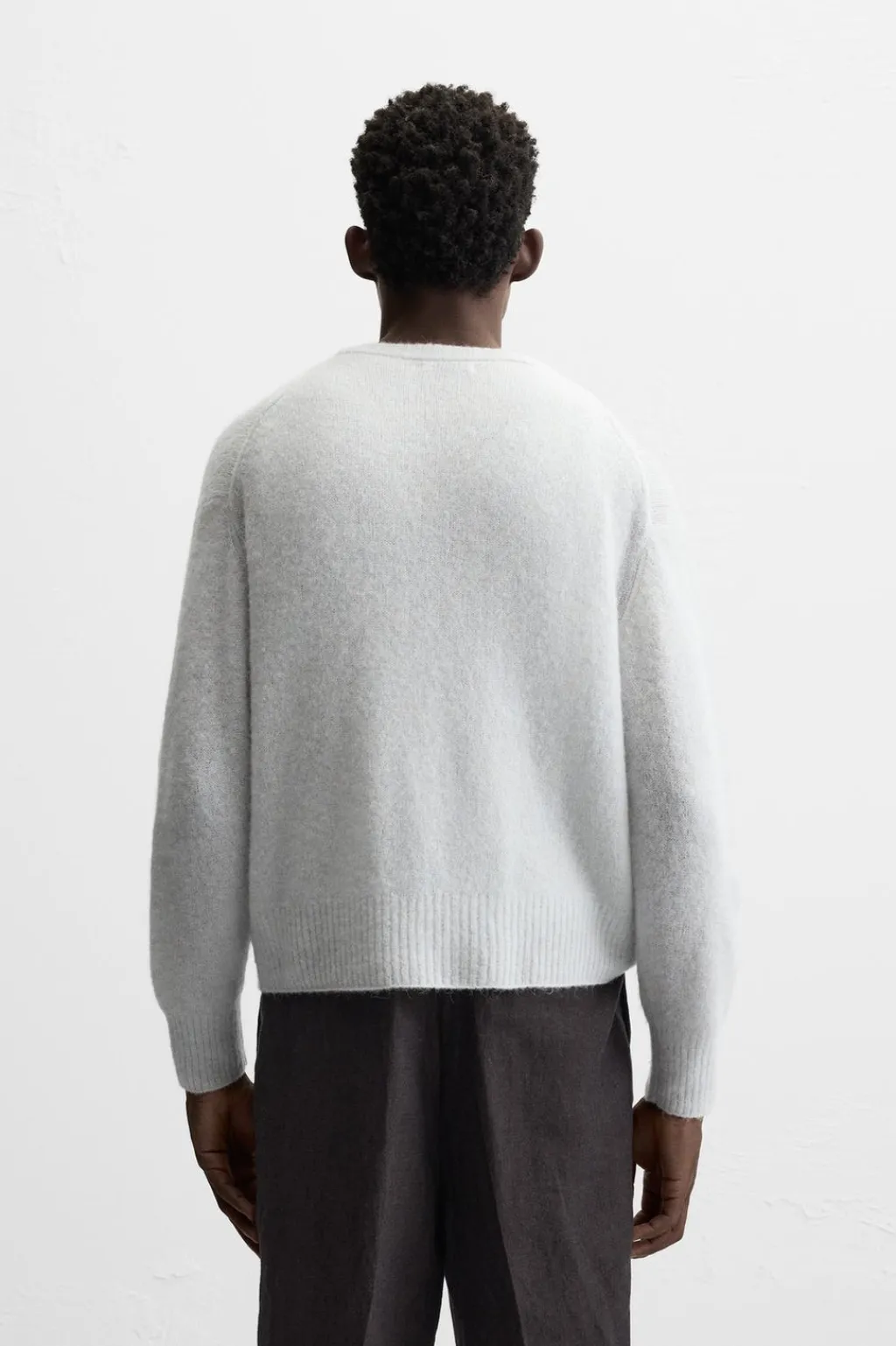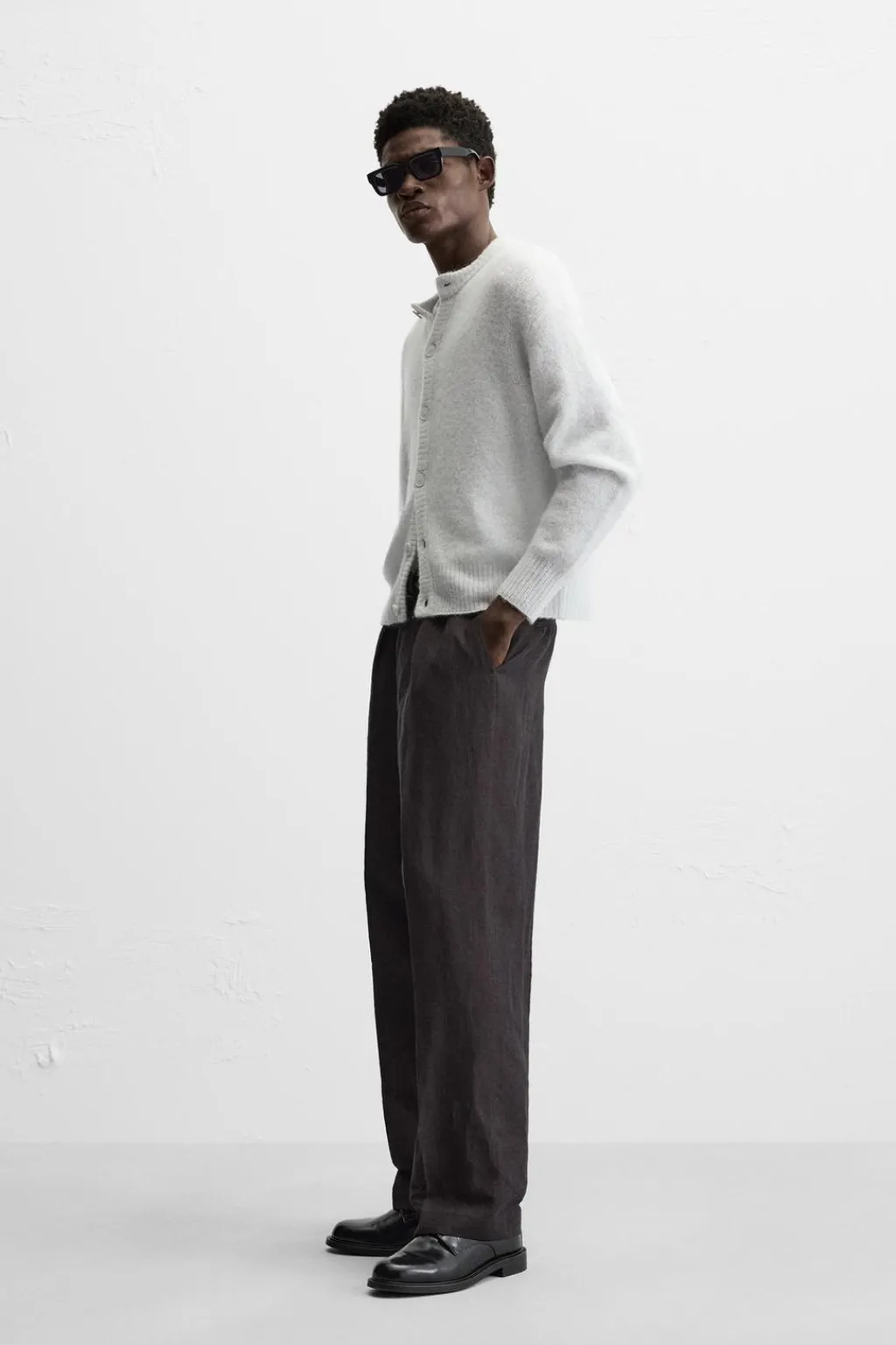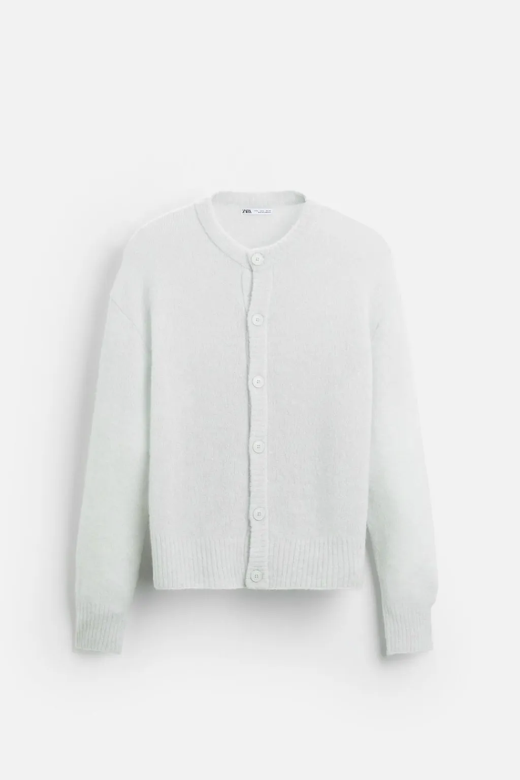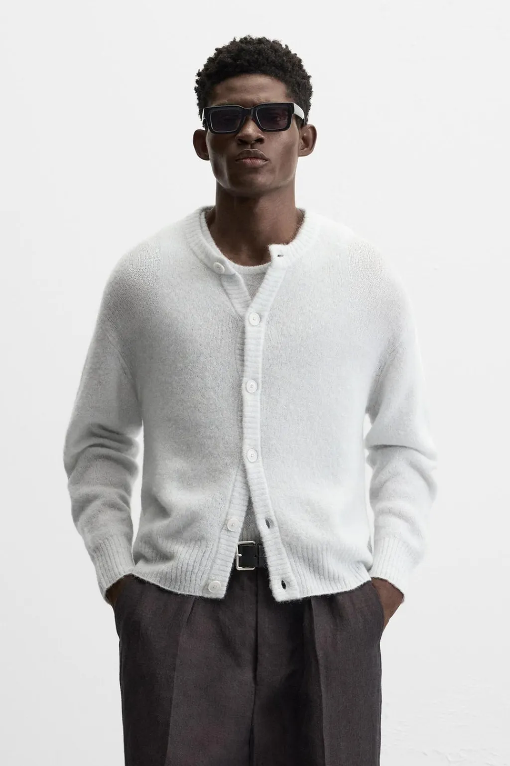 Cárdigan regular fit tejido en hilatura ligera con lana. Cuello redondo y manga larga. Acabados en rib. Cierre frontal de botonadura.