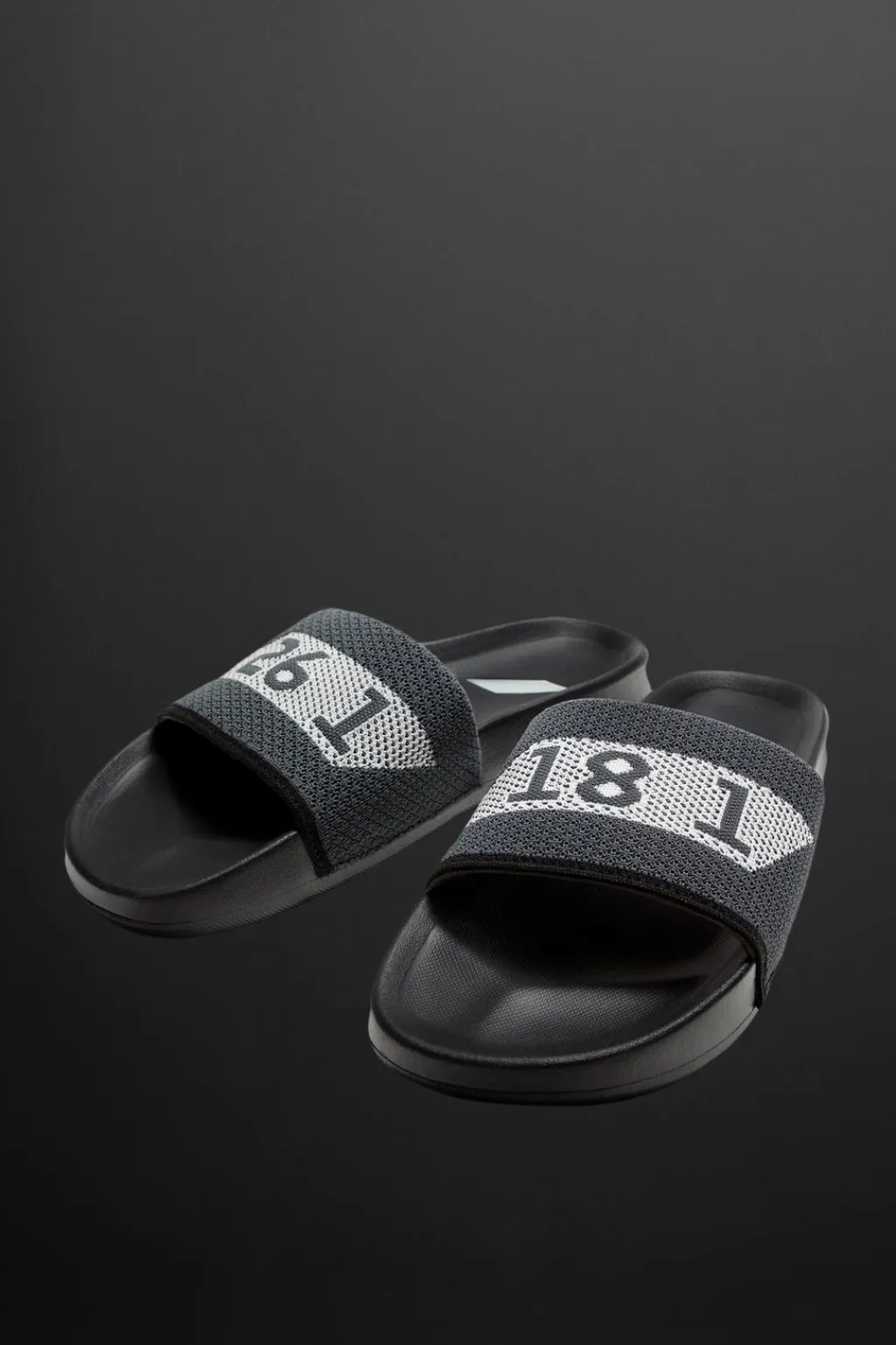 Sandalia tipo chancla. Corte con tira ancha de tejido de punto en el empeine. Suela de goma.