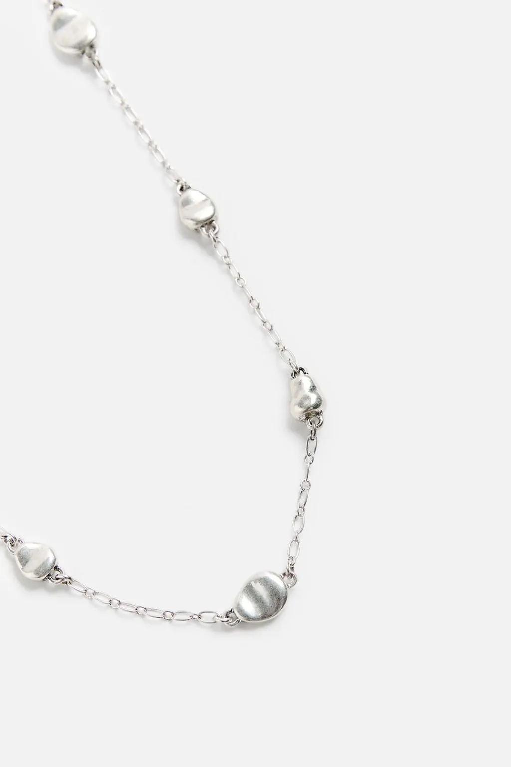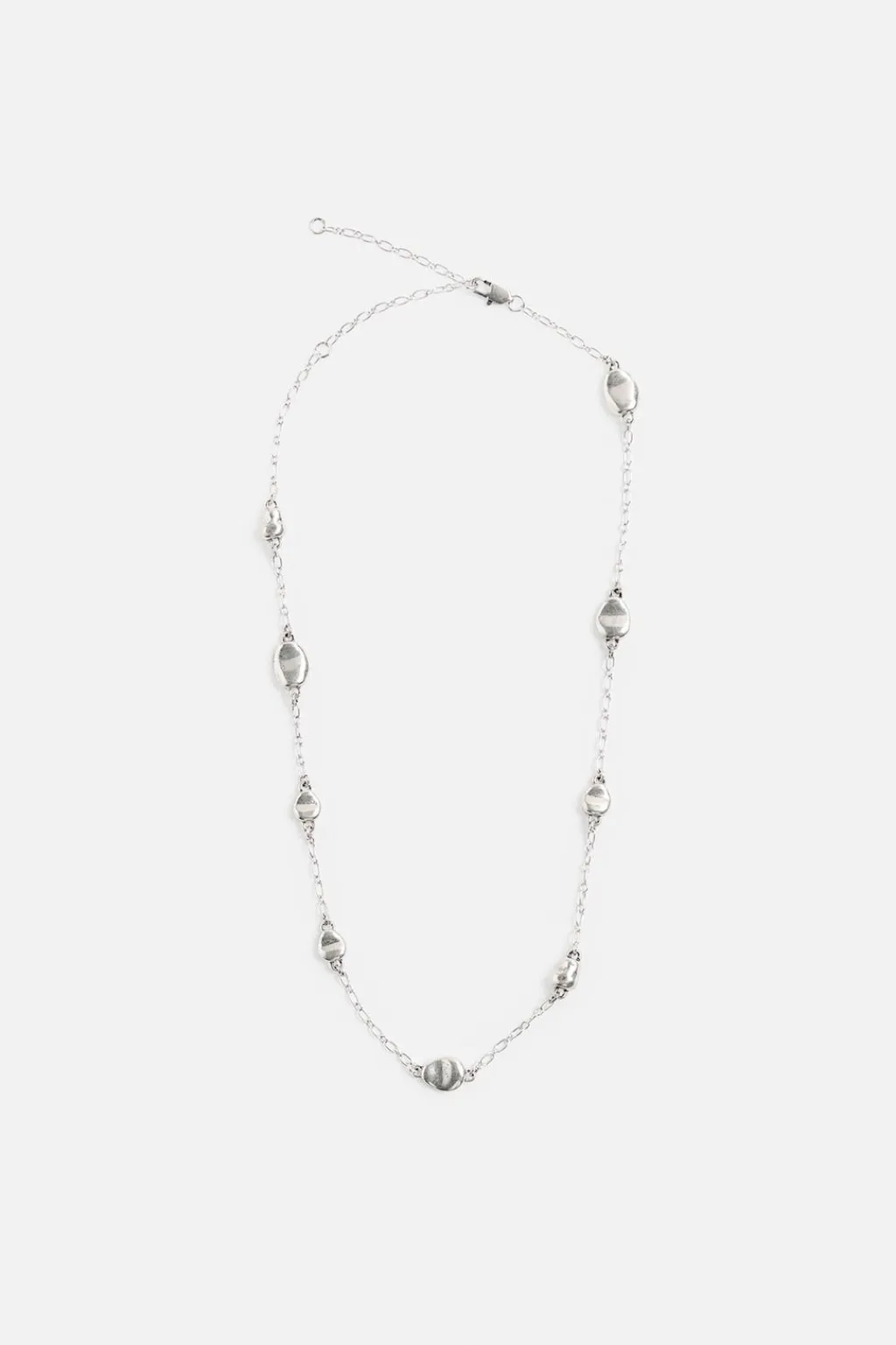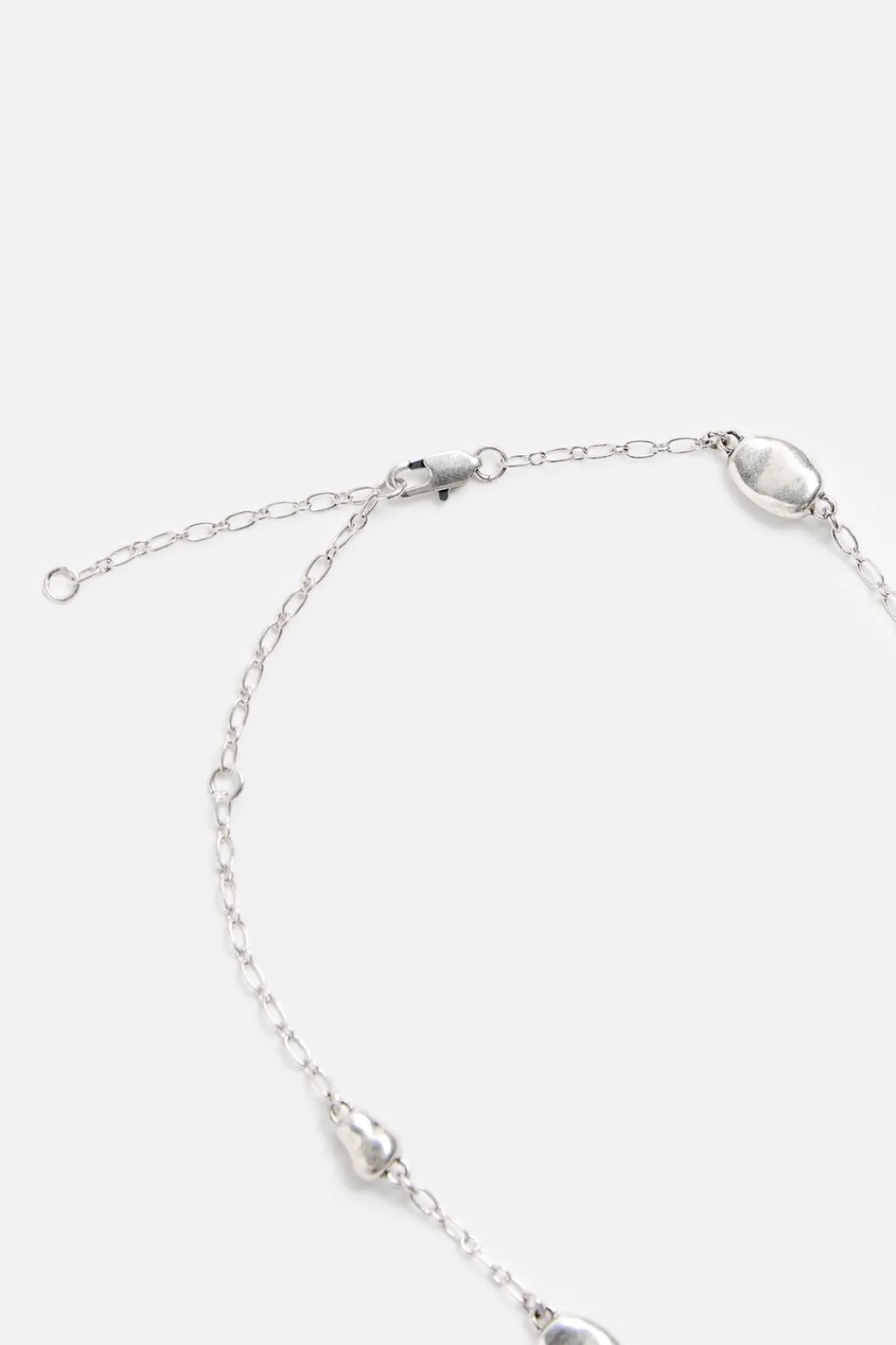 Collar de largo medio compuesto por eslabones combinados con abalorios metálicos. Acabado con baño de plata 925 MM. Cierre de mosquetón.