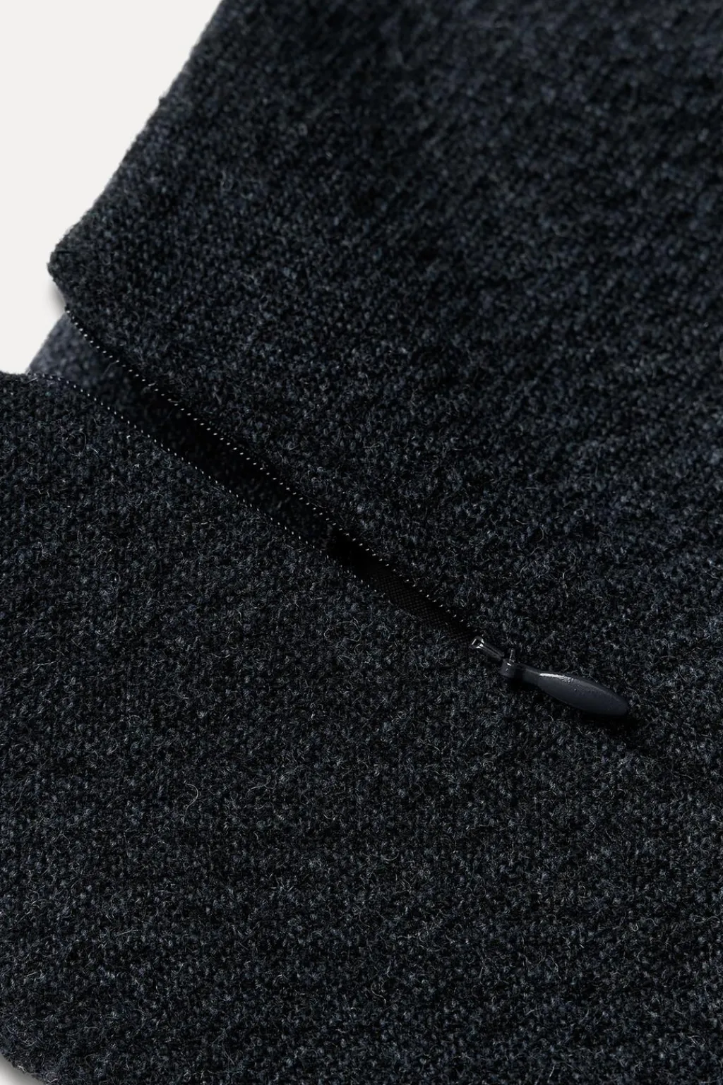 Falda midi de tiro medio confeccionada en hilatura con mezcla de lana. Bajo acabado en línea evasé. Cierre con cremallera oculta en costura.
