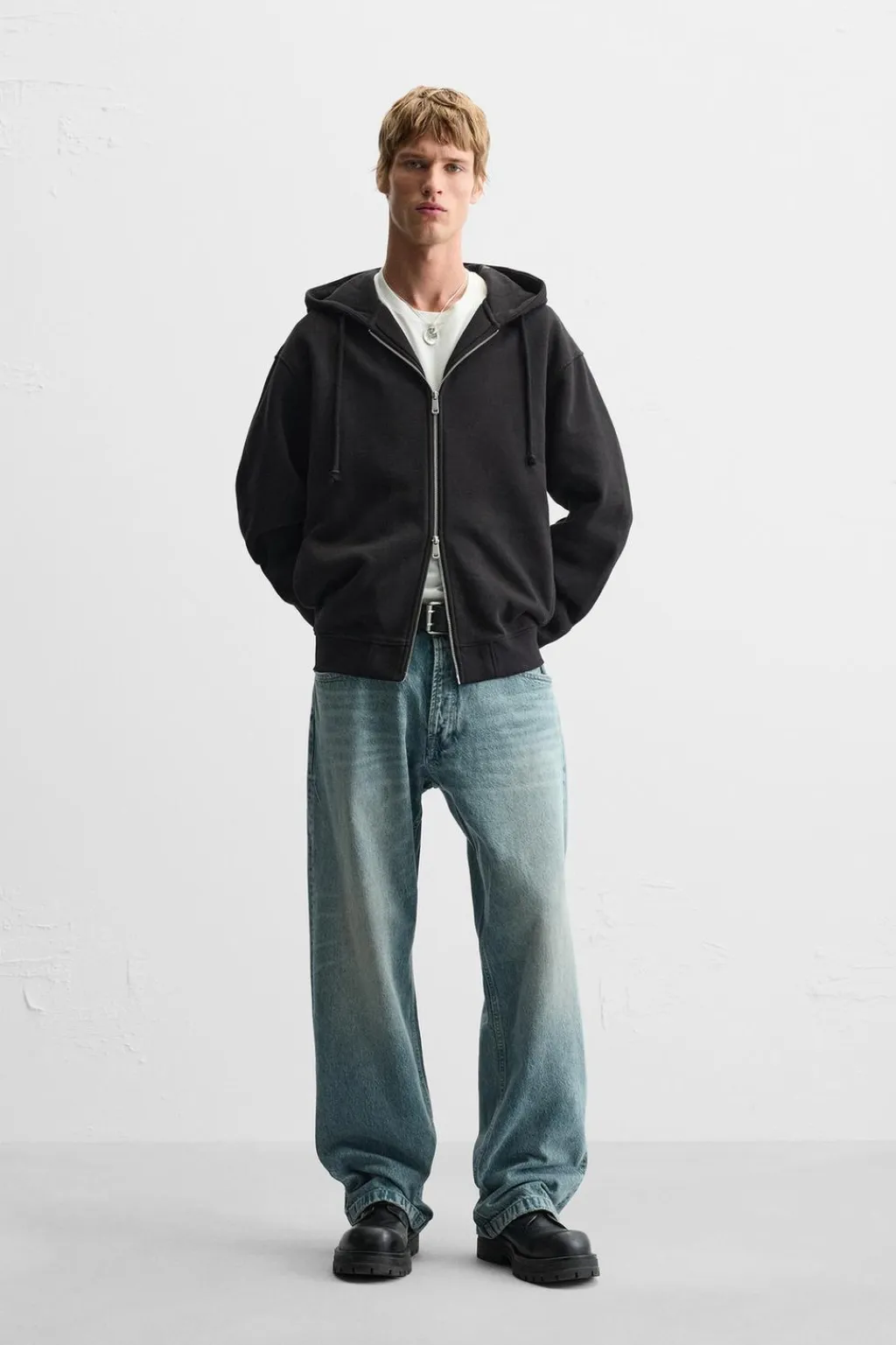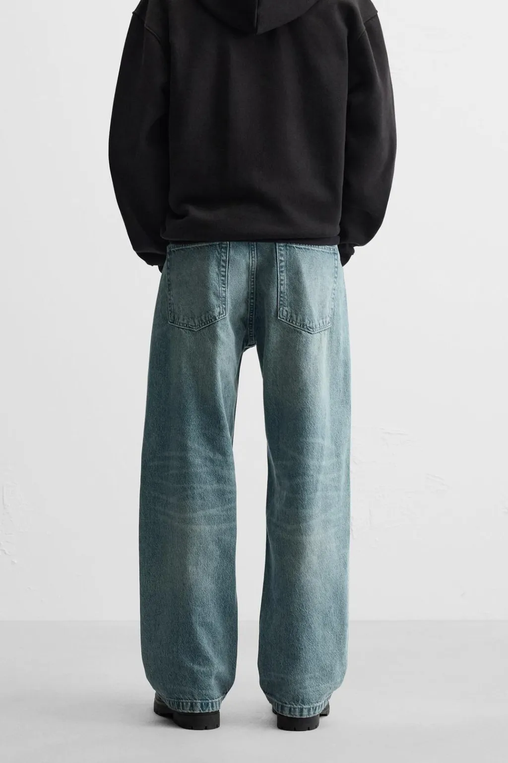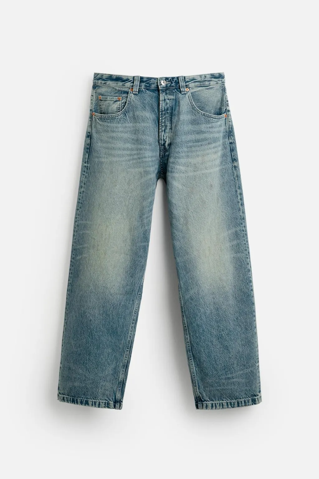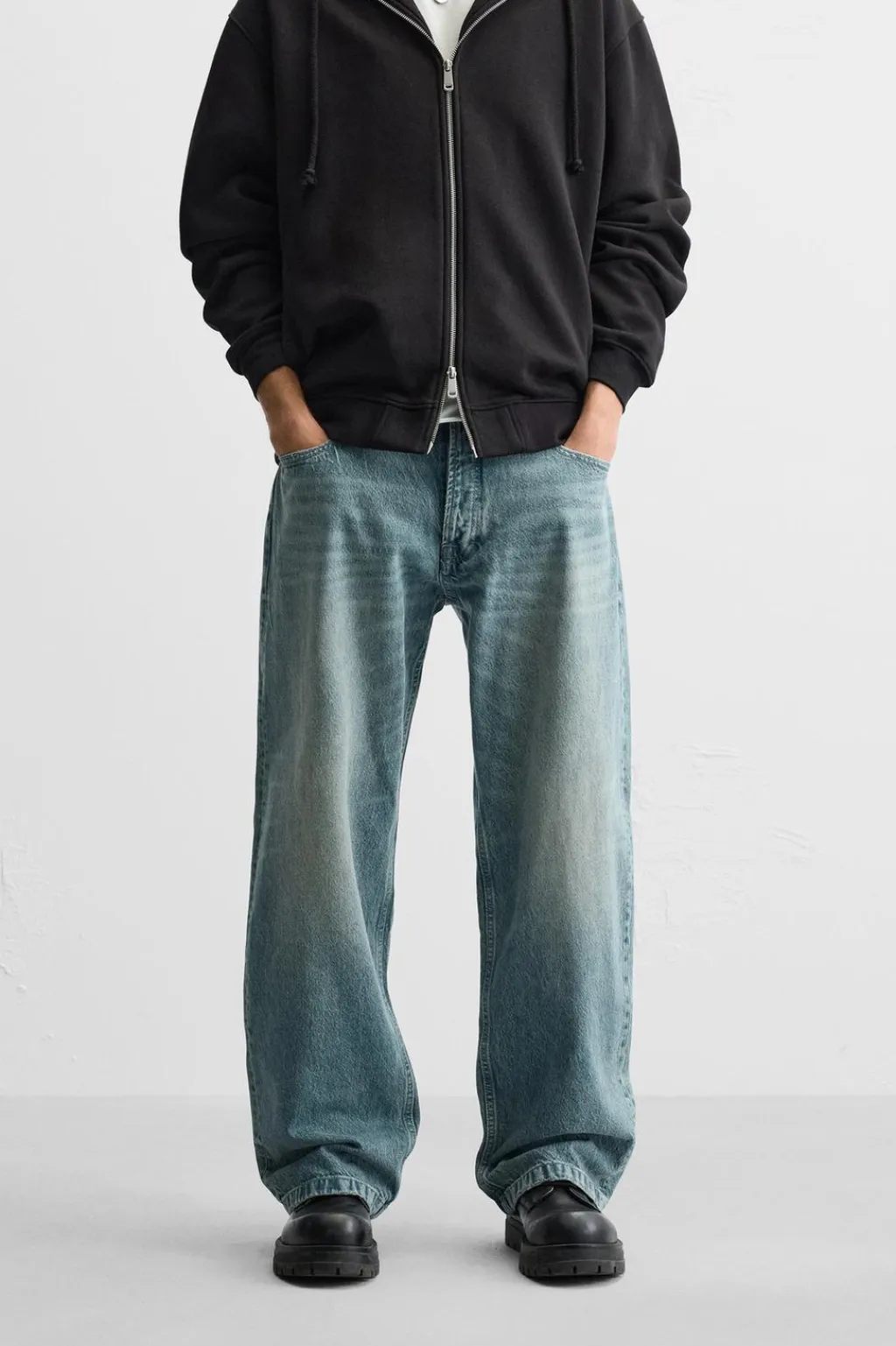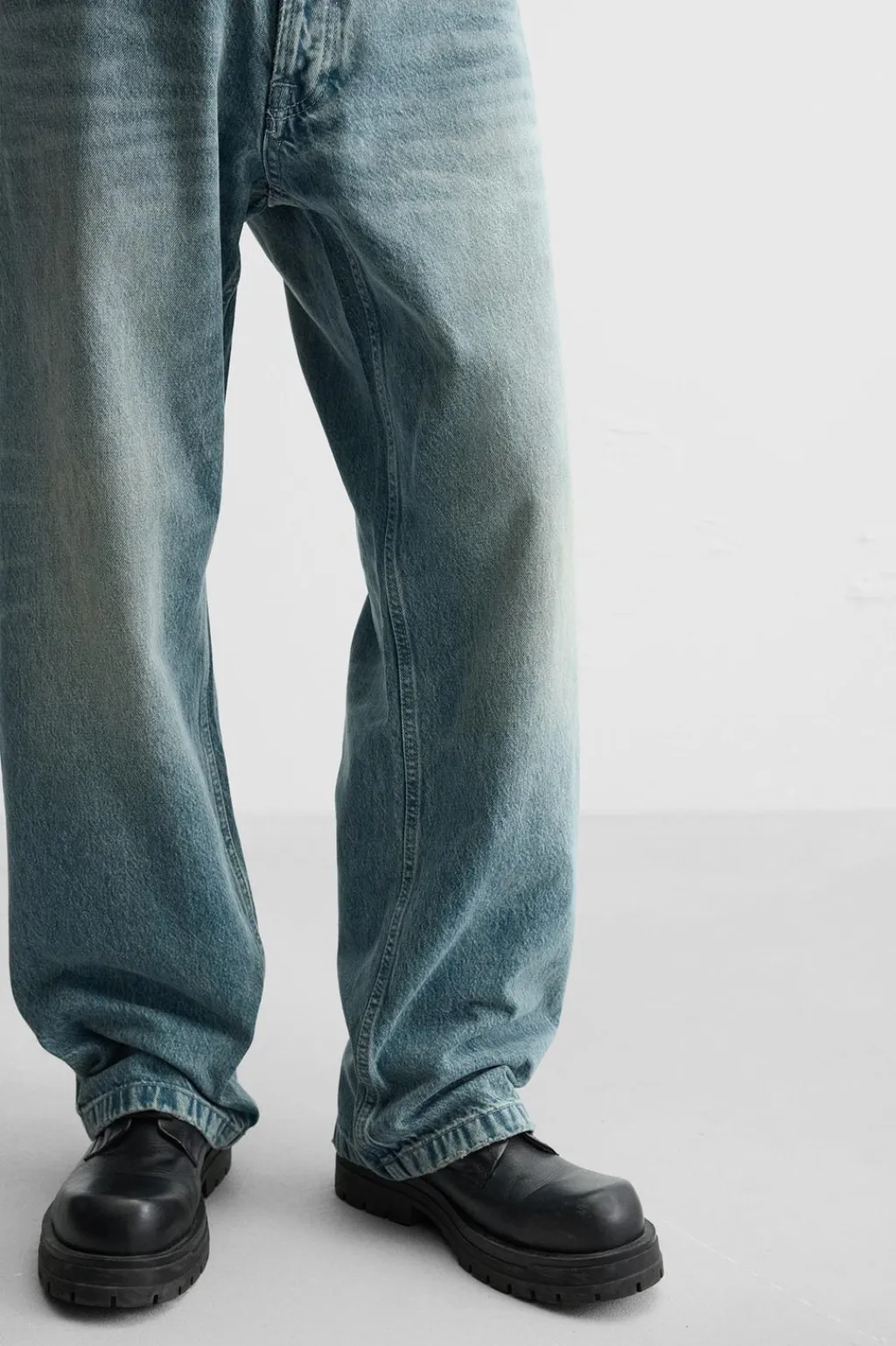 Jeans baggy fit. Cinco bolsillos. Efecto lavado. Cierre frontal con cremallera y botón.