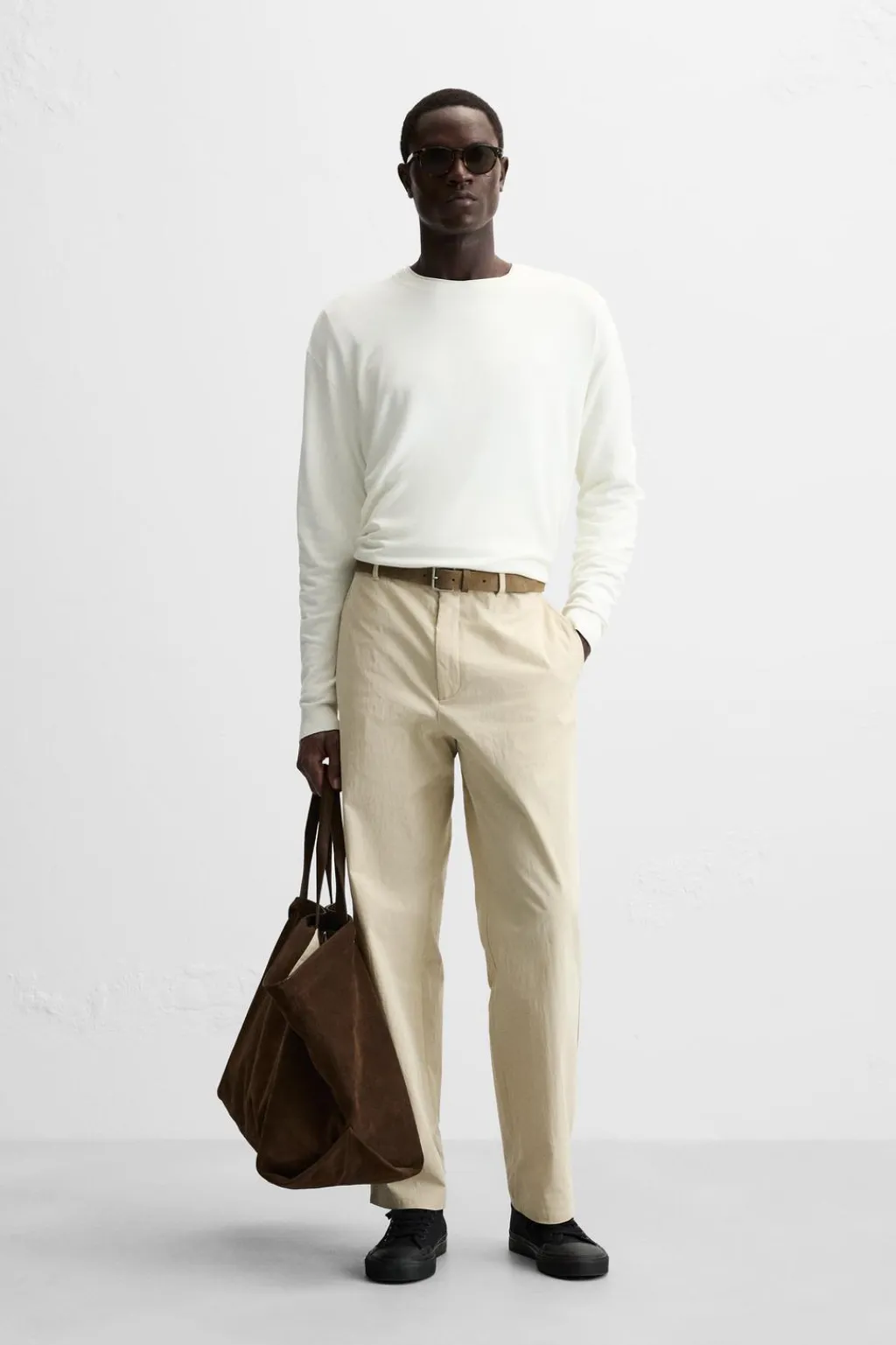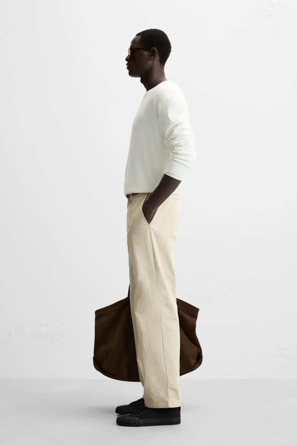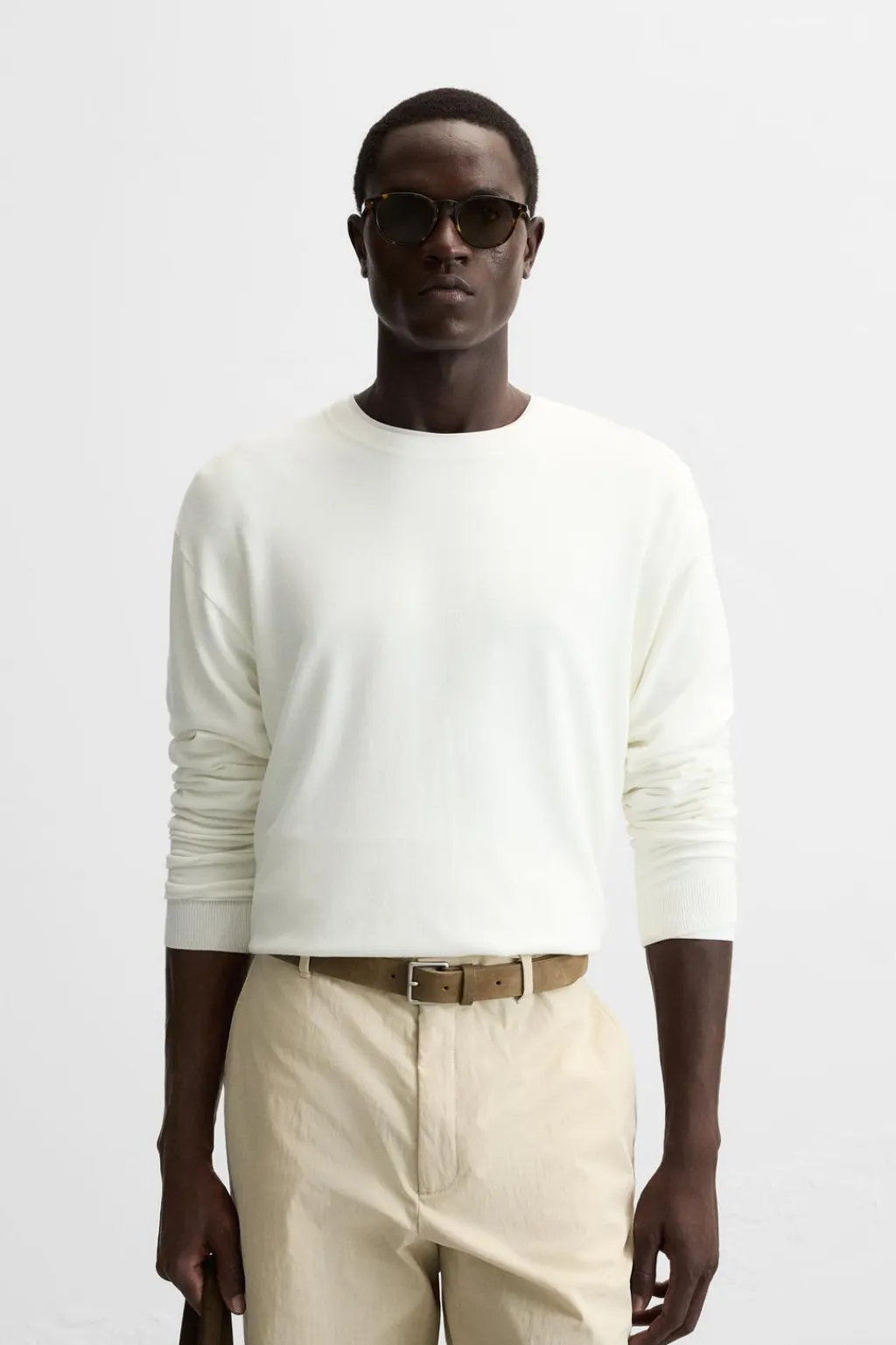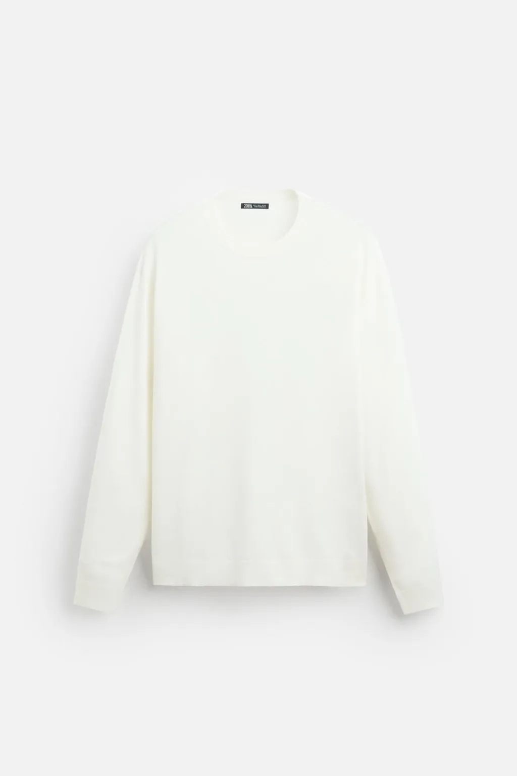 Jersey amplio tejido en hilatura con mezcla de viscosa. Cuello redondo y manga larga. Acabados en rib
