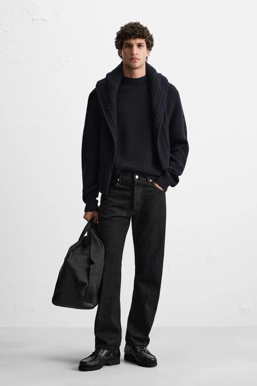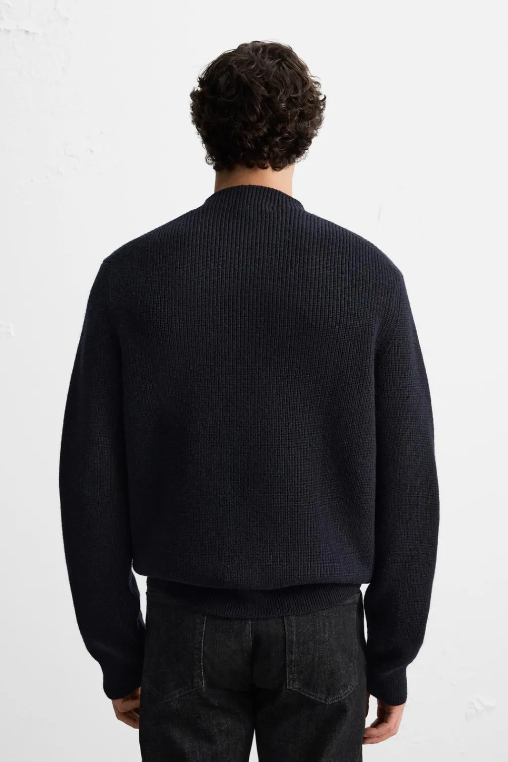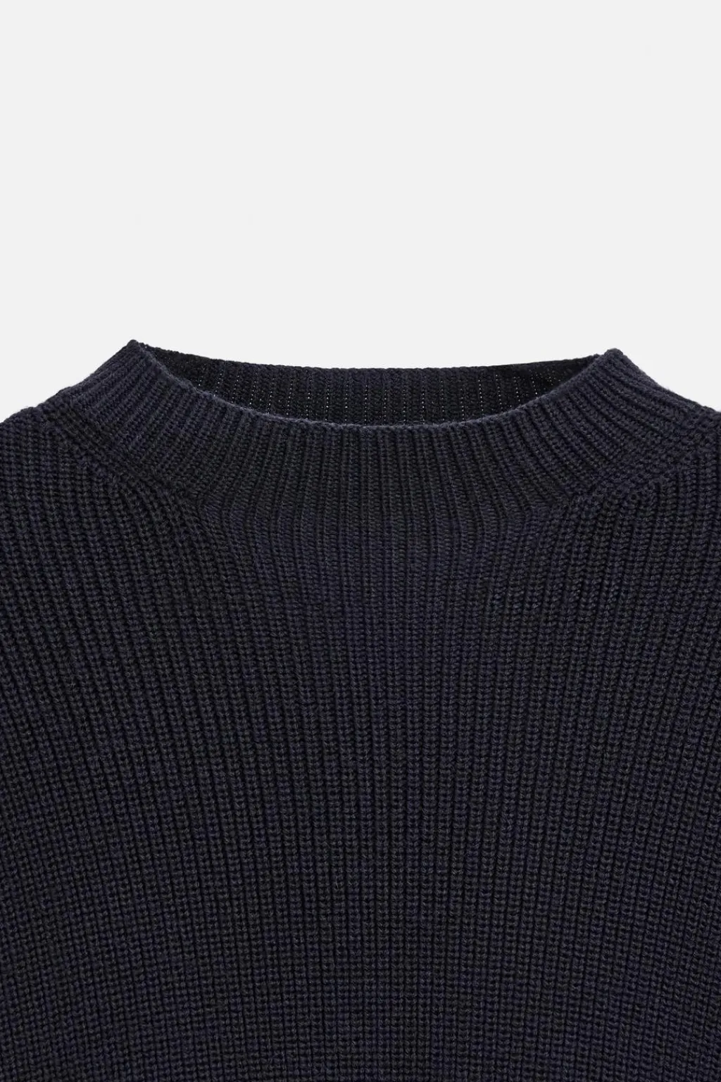 Jersey relaxed fit tejido en hilatura con mezcla de lana y algodón. Cuello perkins y manga larga. Acabados en rib.