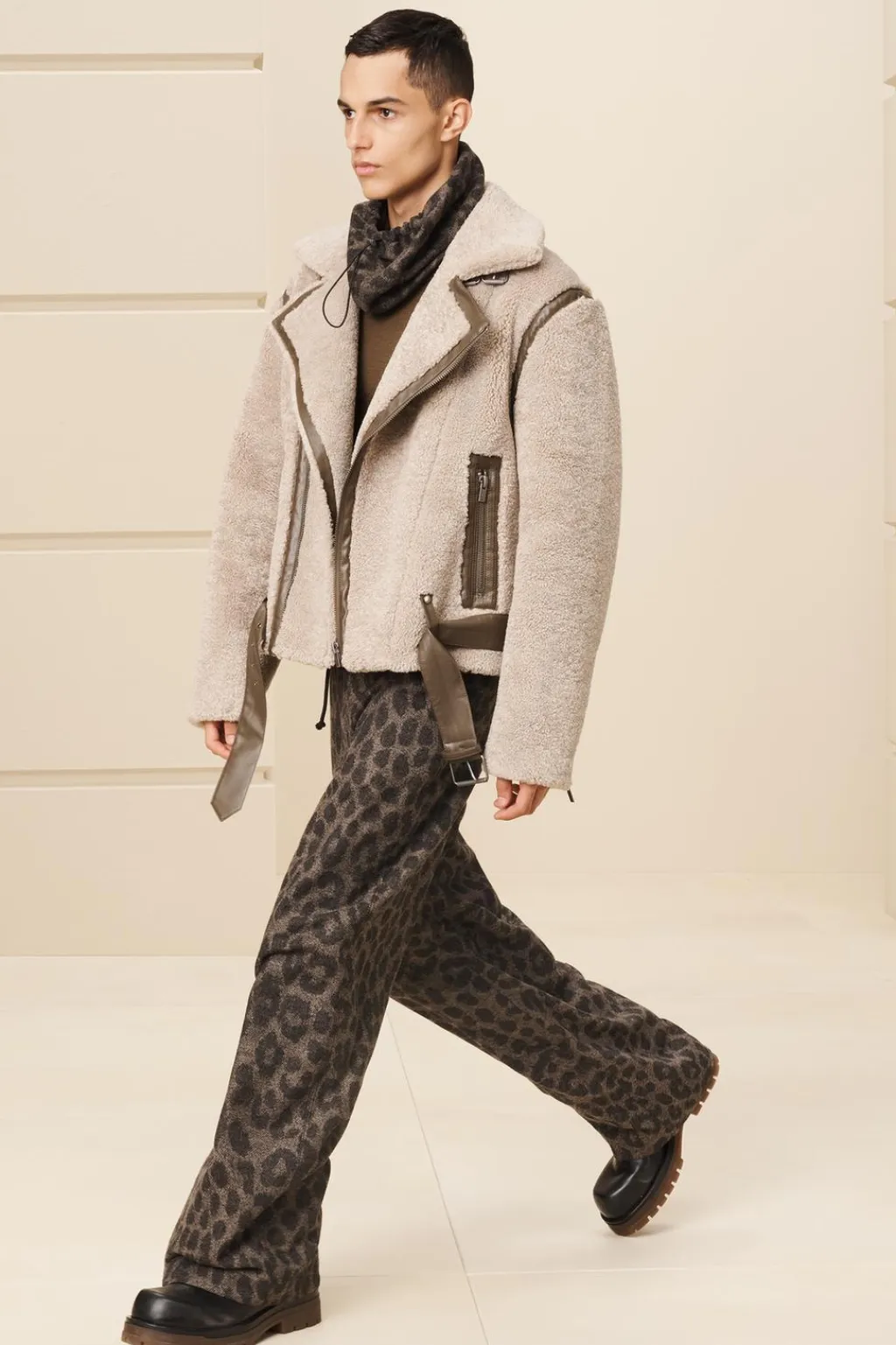 Pantalón loose fit confeccionado en tejido con lana. Cintura elástica ajustable con cordón Bolsillos frontales y detalle de bolsillos traseros de vivo con botón. Cierre frontal con cremallera y botón.