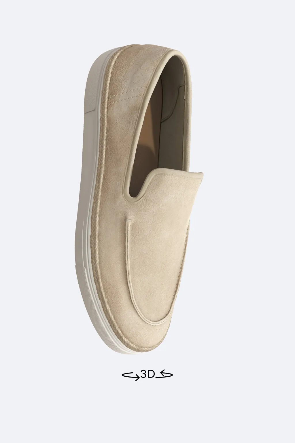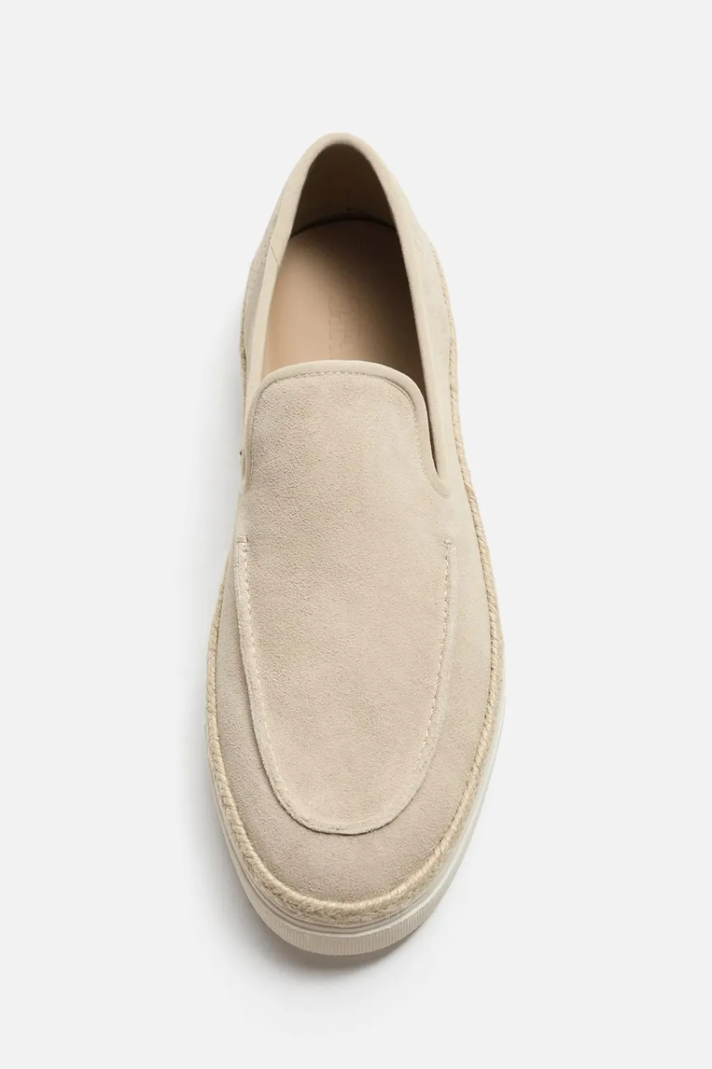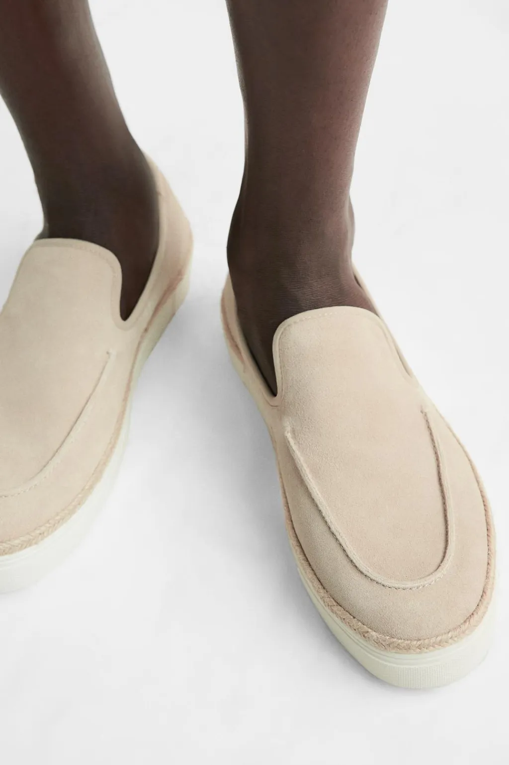 Mocasín casual. Parte superior fabricada en piel con acabado serraje. Detalle de bordón en el empeine. Piso con detalle de yute y suela estilo zapatilla deportiva.