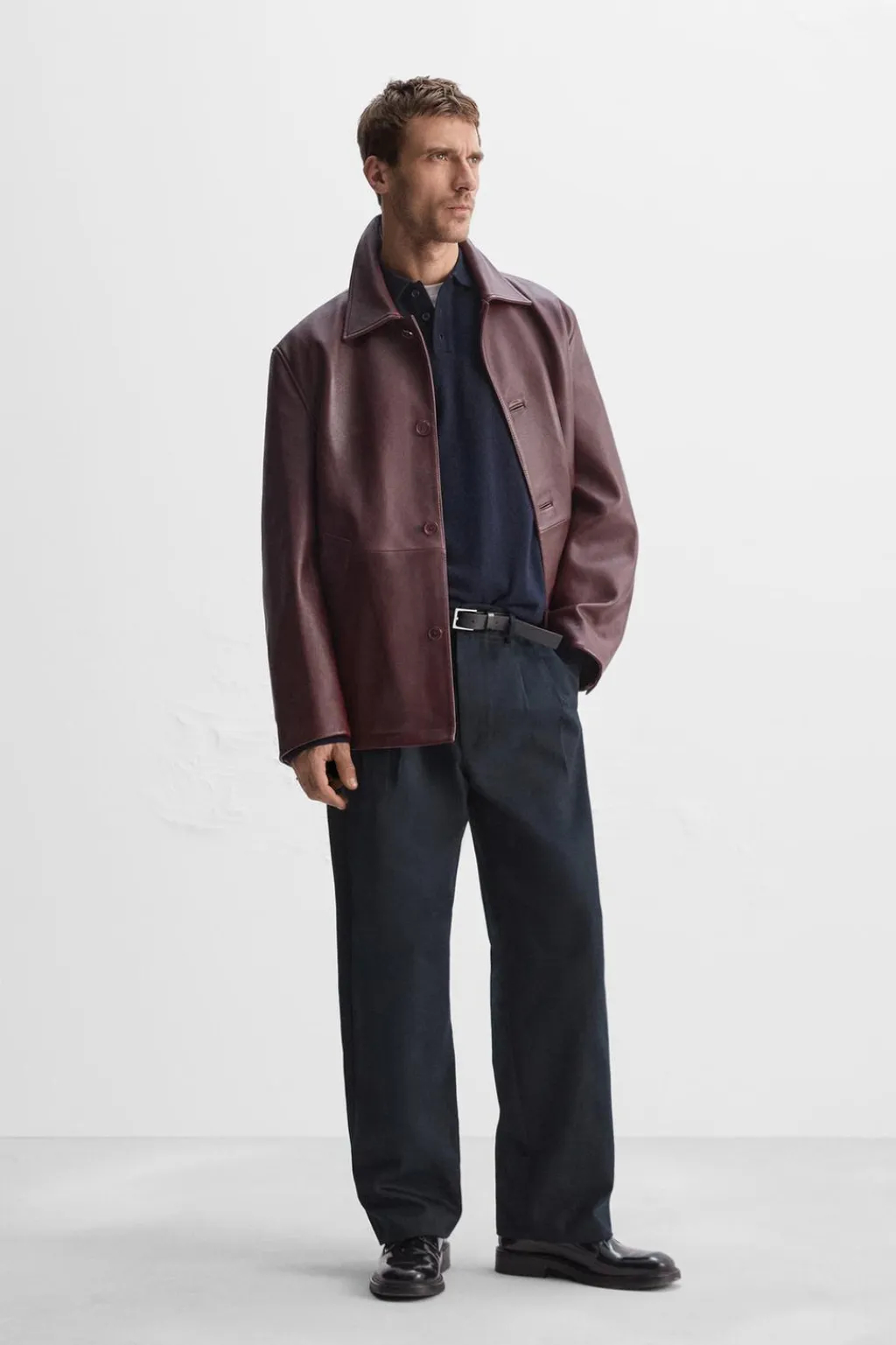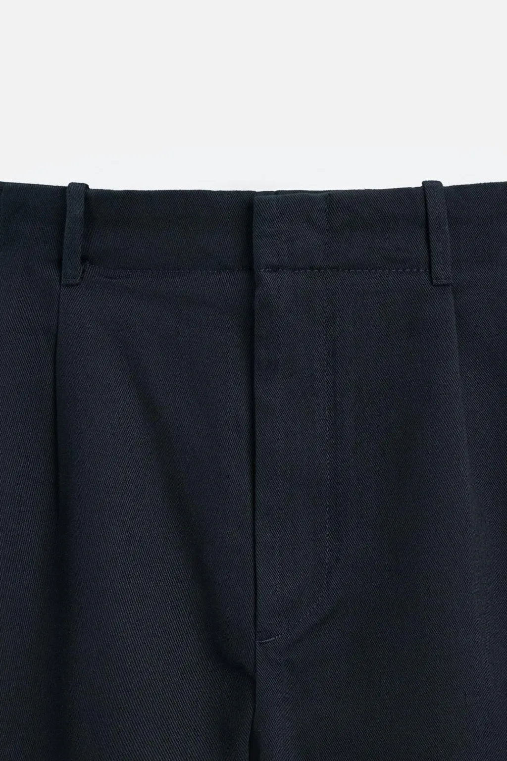 Pantalón relaxed fit confeccionado en tejido con mezcla de algodón y lyocell. Cintura con detalle de pliegues en delantero. Bolsillos frontales y detalle de bolsillo traseros de vivo. Cierre frontal con cremallera y botón.