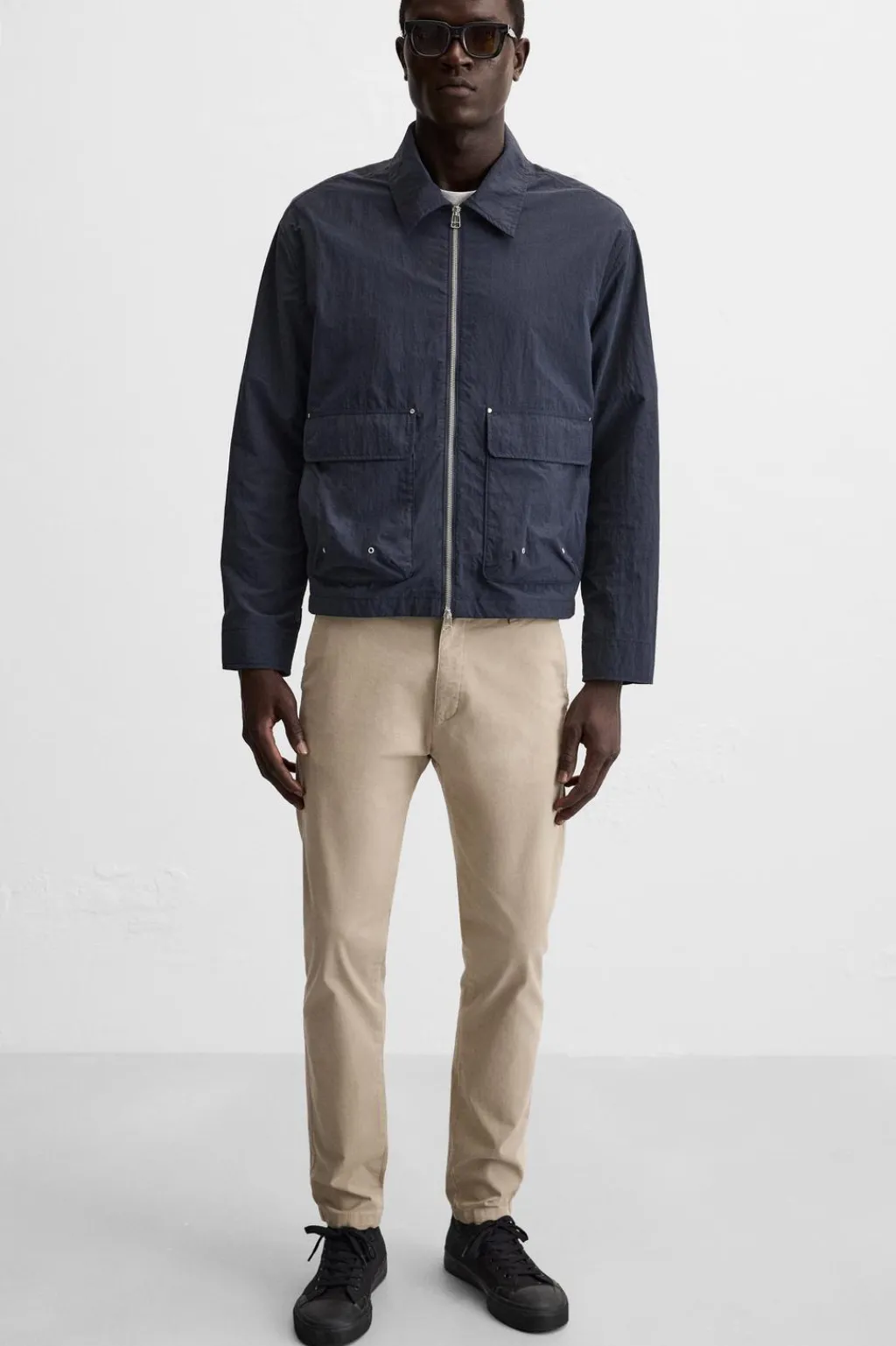 Pantalón skinny fit confeccionado en tejido con mezcla de algodón y elasticidad. Bolsillos frontales y detalle de bolsillos traseros de vivo. Cierre frontal con cremallera y botón.