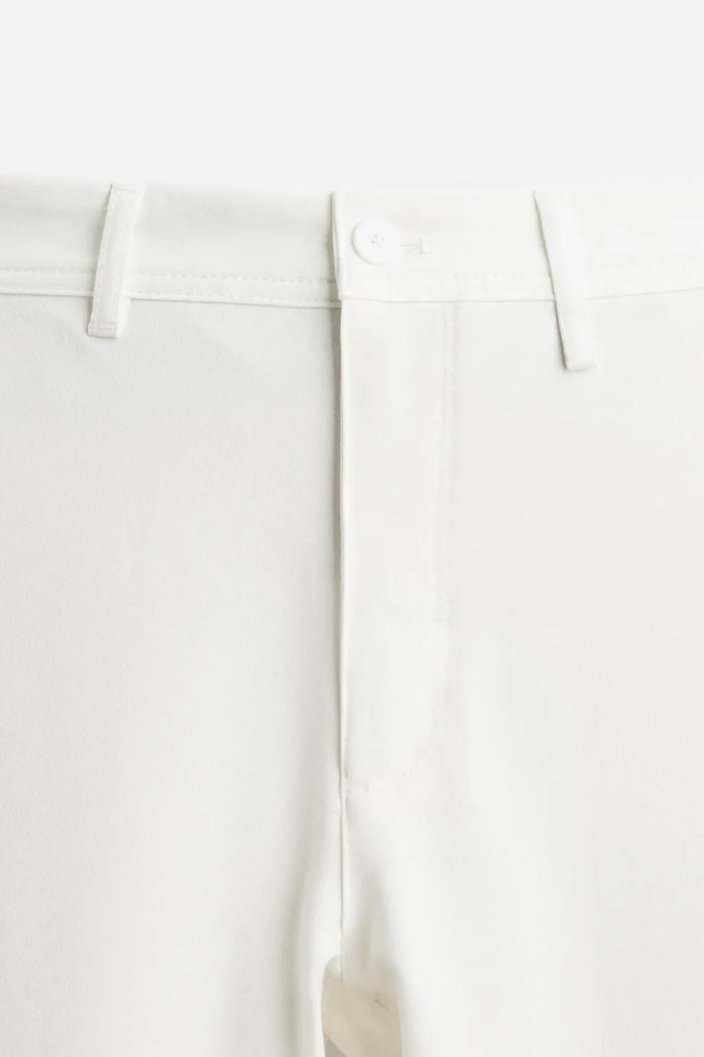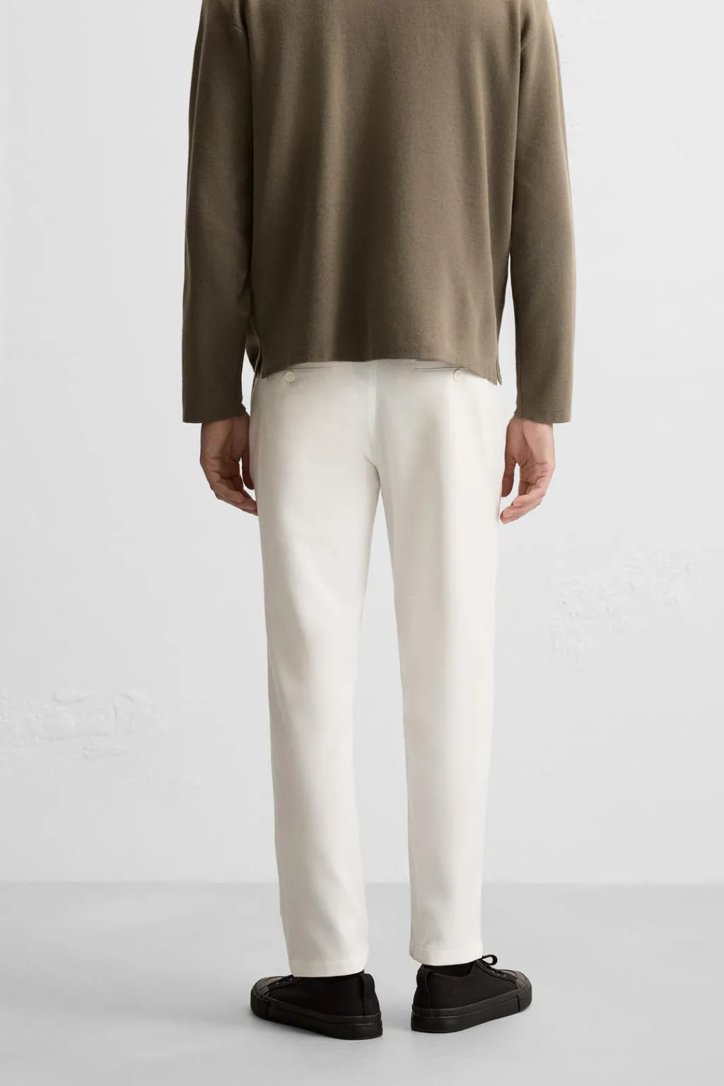 Pantalón slim fit confeccionado en tejido con elasticidad en ambas direcciones. Bolsillos frontales y detalle de bolsillos traseros de vivo con botón. Cierre frontal con cremallera y botón.