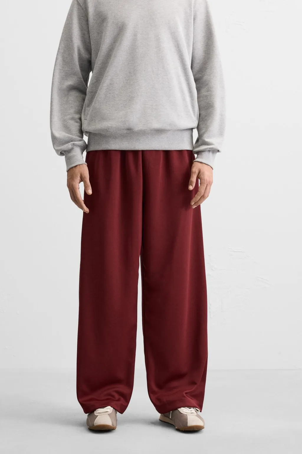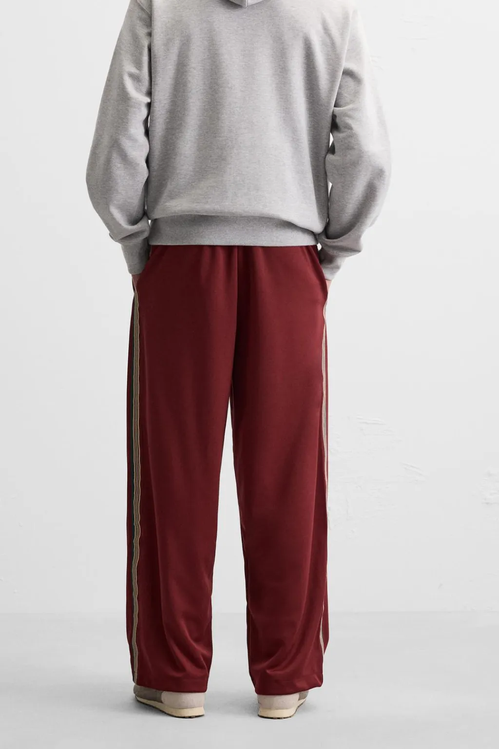 Pantalón relaxed fit confeccionado en tejido técnico. Cintura elástica ajustable con cordón interior. Bolsillos laterales. Bandas laterales combinadas a contraste.