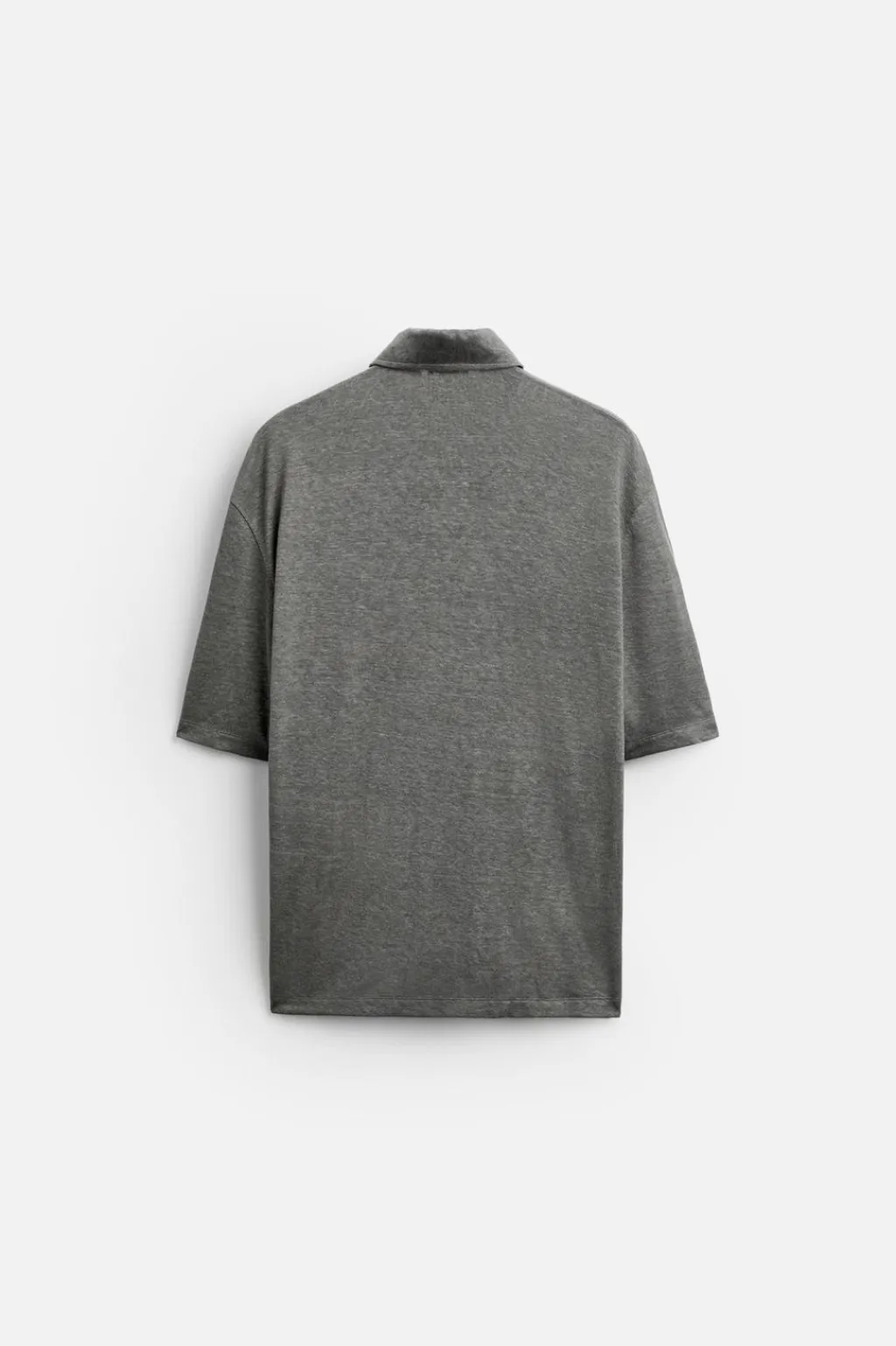 Polo regular fit confeccionado en tejido con mezcla de cáñamo y viscosa. Cuello solapa con cierre frontal de botonadura. Manga corta.