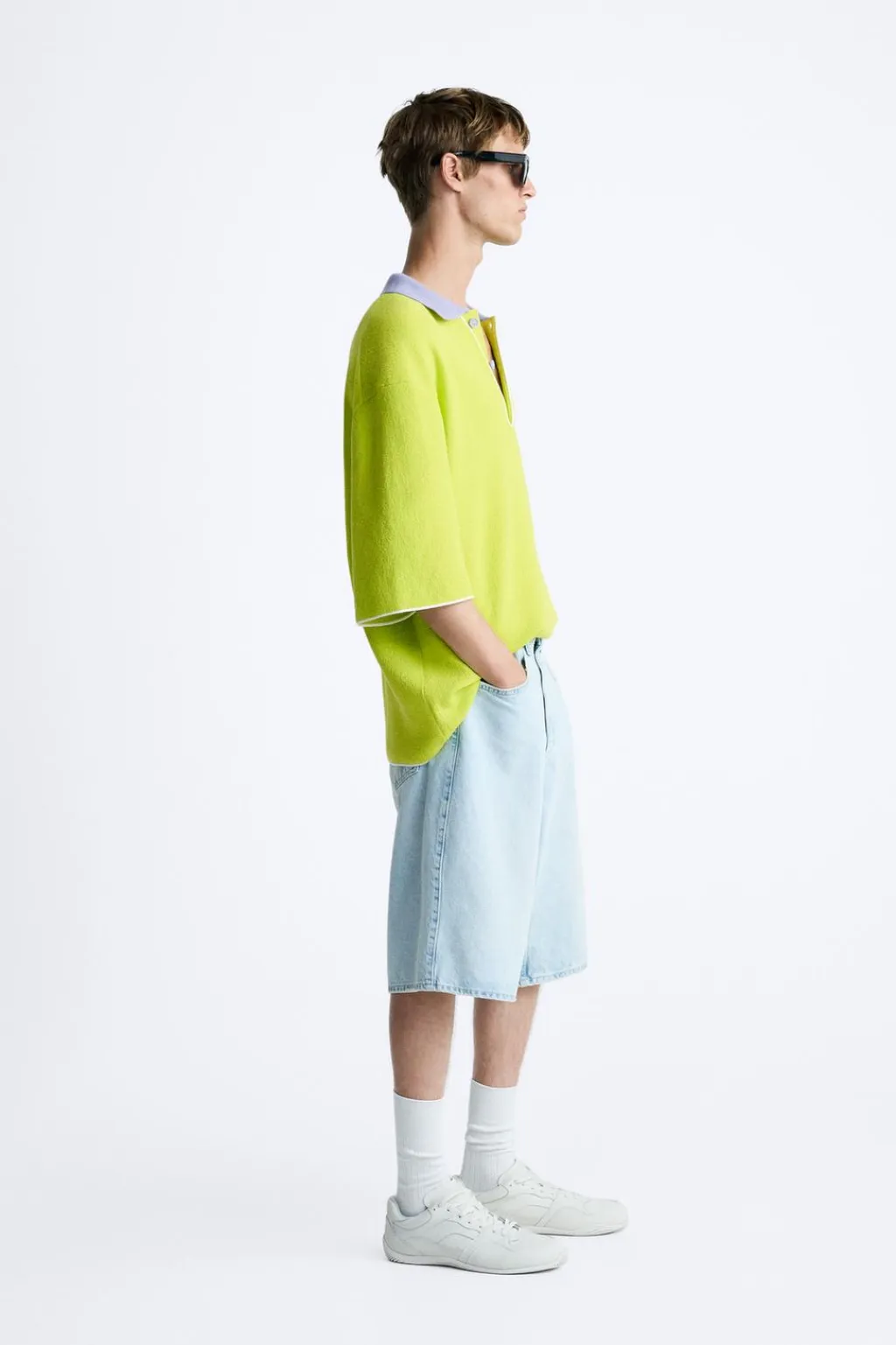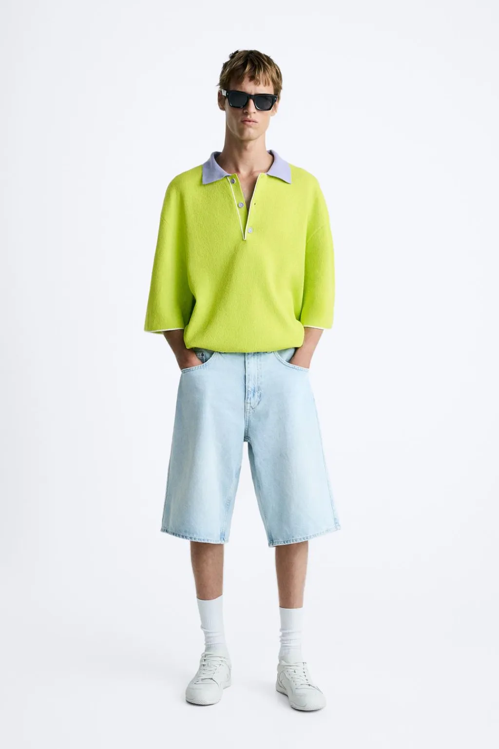 Polo oversize fit. Cuello solapa con cierre frontal de botonadura. Manga corta. Detalle de jacquard combinado a contraste en espalda. Acabados combinados a contraste.