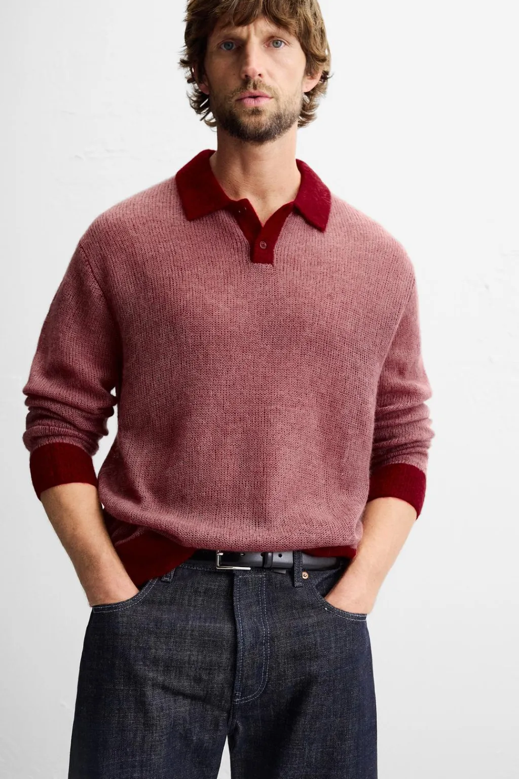 Polo de punto ligero. Cuello solapa y cierre frontal de botonadura. Manga larga. Acabados con rib.