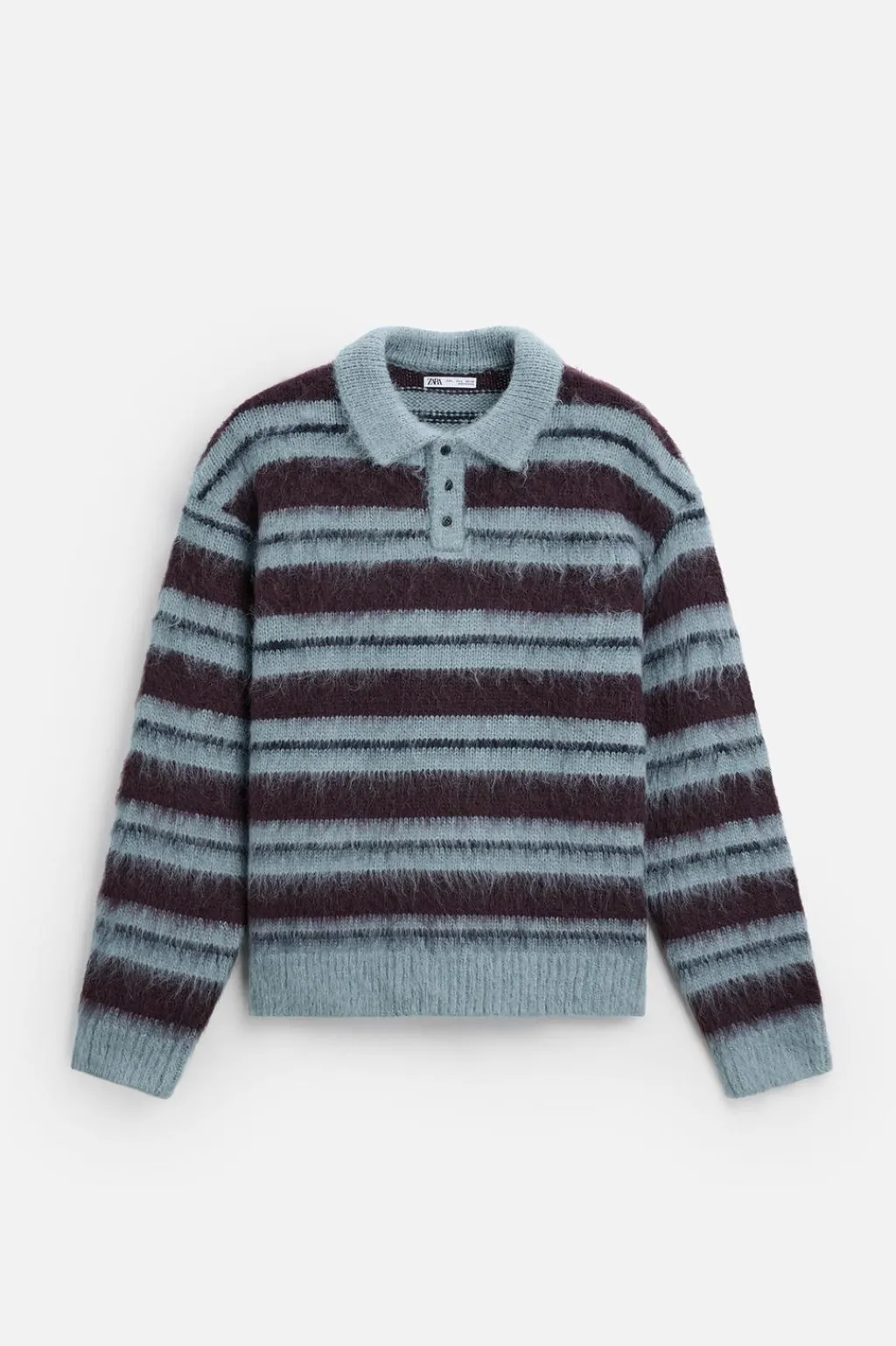 Polo de punto tejido en hilatura con acabado cepiilado. Cuello solapa con cierre frontal de botonadura. Manga larga. Acabados en rib.