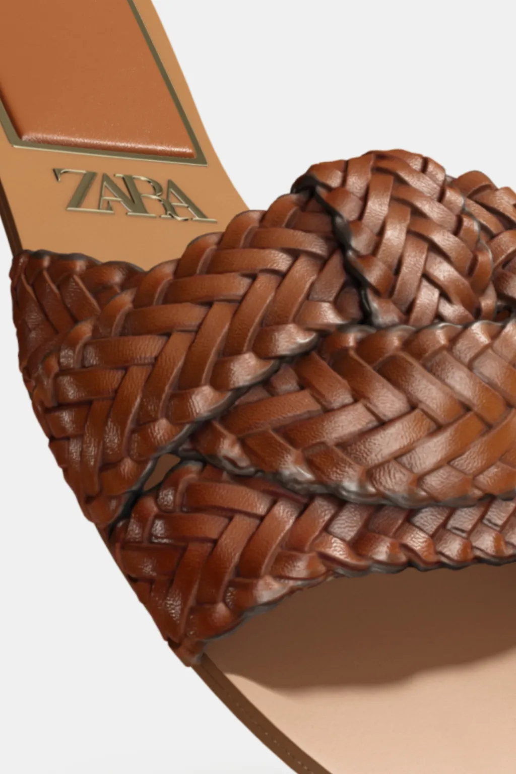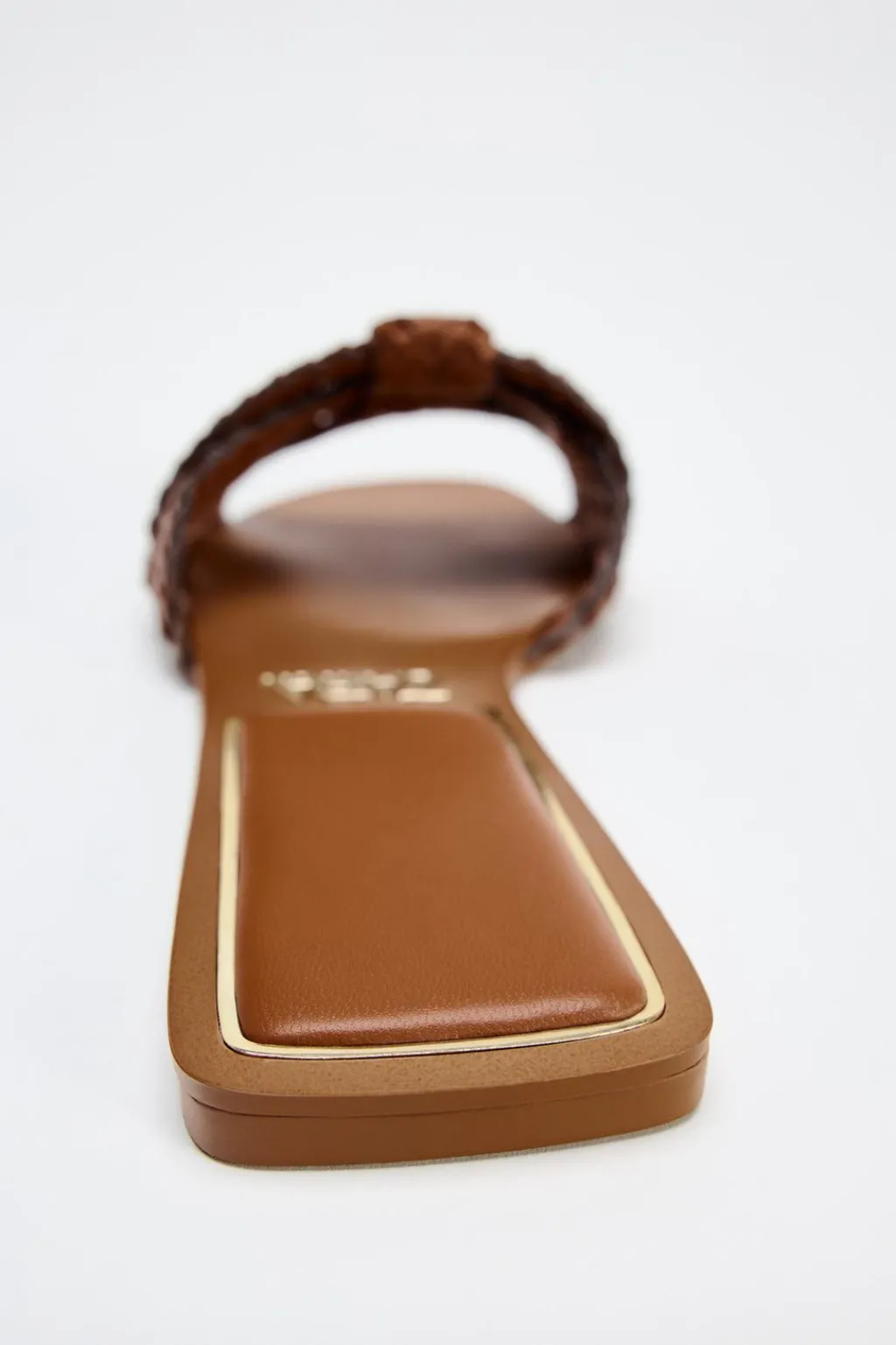 Zapato tipo sandalia plana en piel. Detalle de tiras cruzadas en la parte delantera.