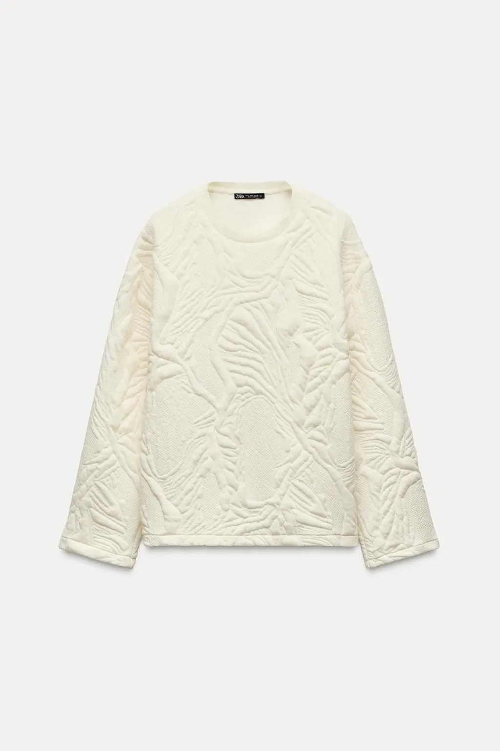 Sudadera de cuello redondo en rib a tono. Manga larga. Detalle de tejido acolchado.