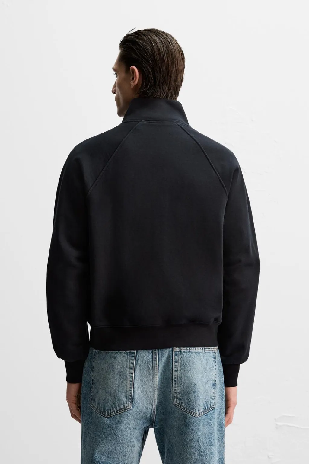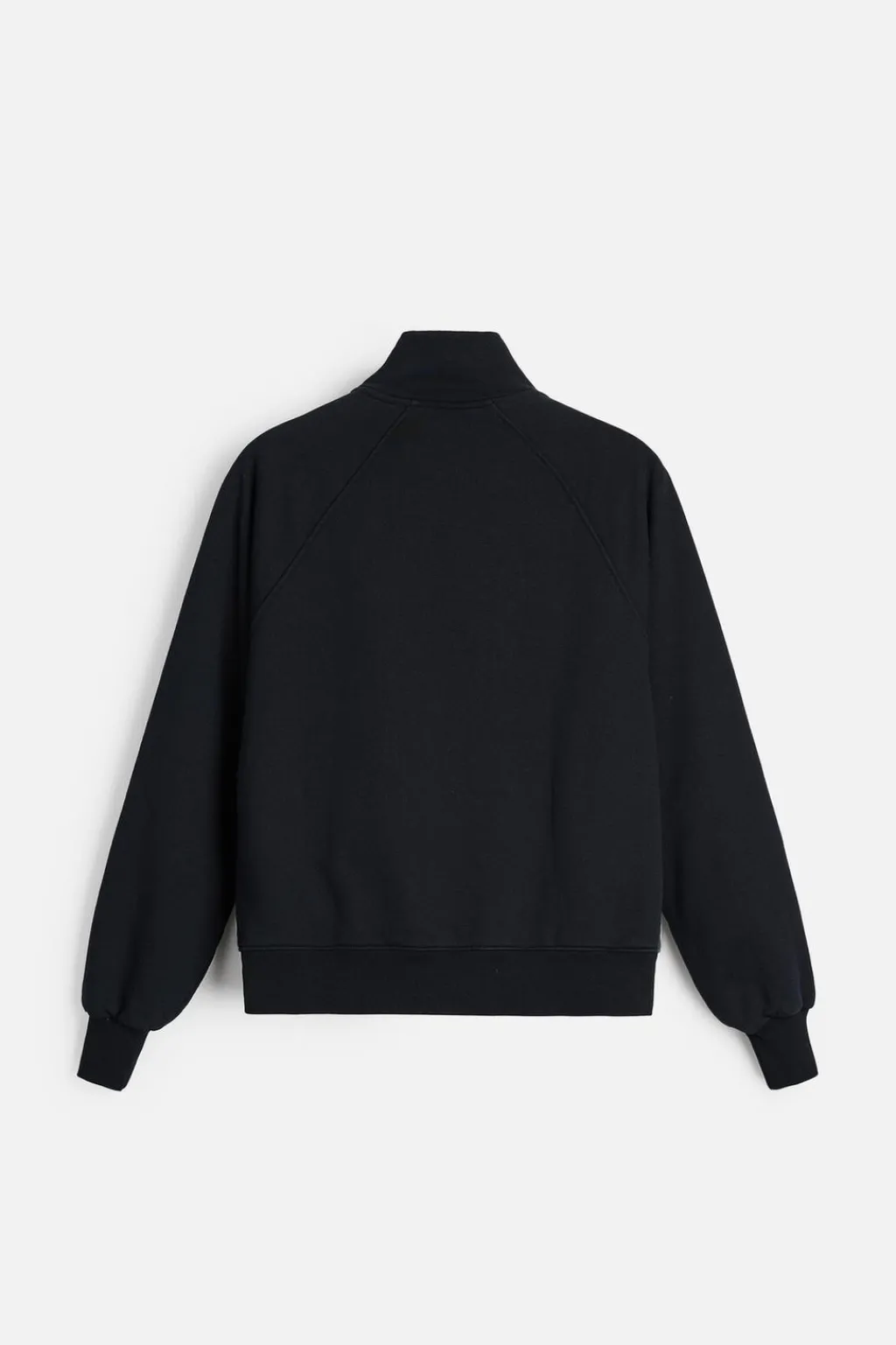 Cuello subido y manga larga. Bolsillos frontales de vivo. Acabados en rib. Cierre frontal con cremallera.