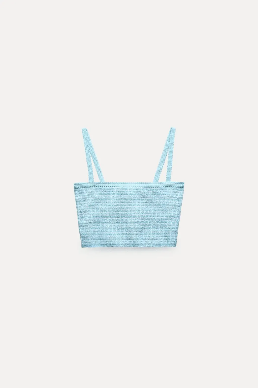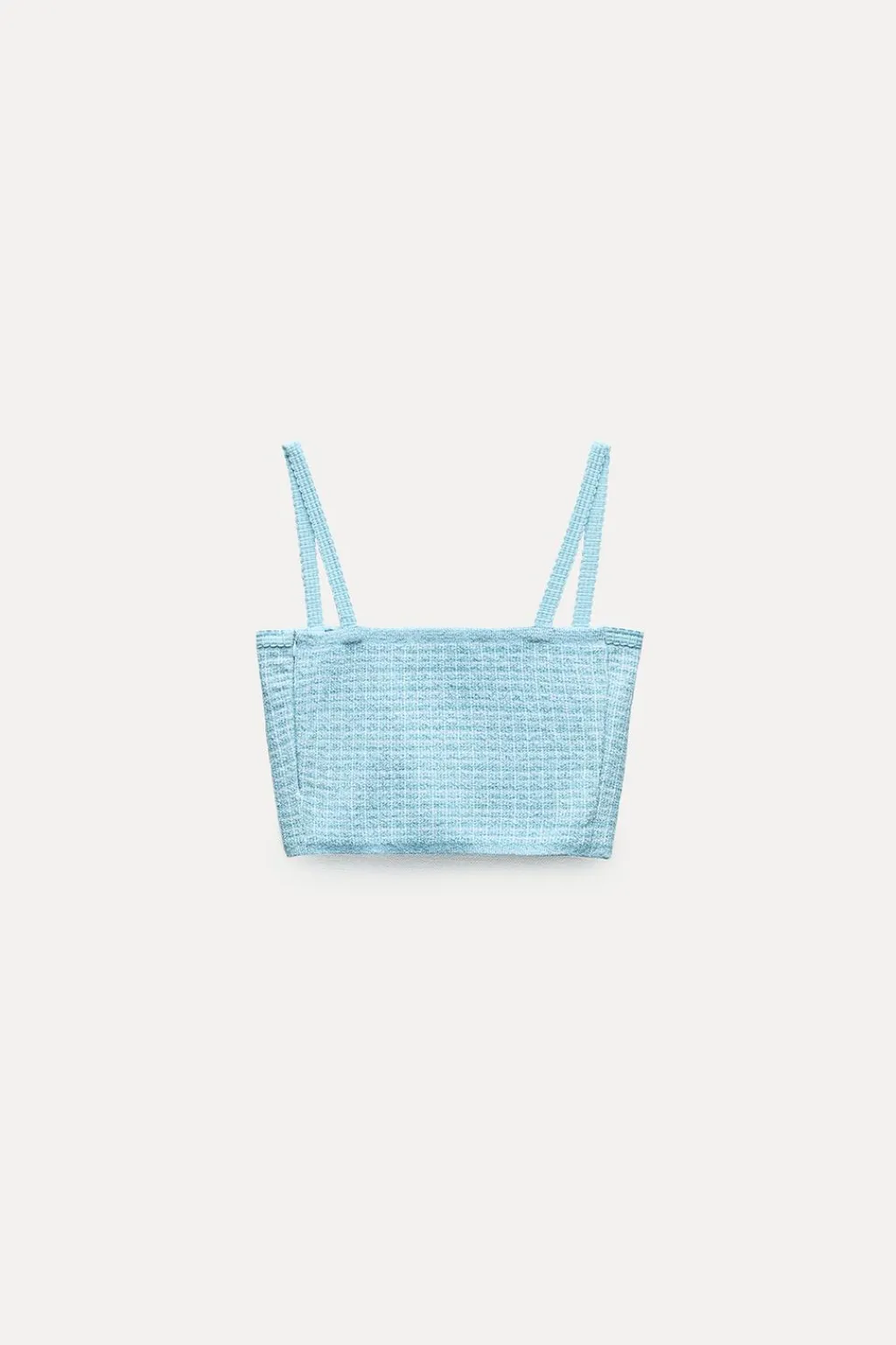 Top de escote recto y tirantes finos. Cierre lateral con cremallera oculta en costura.