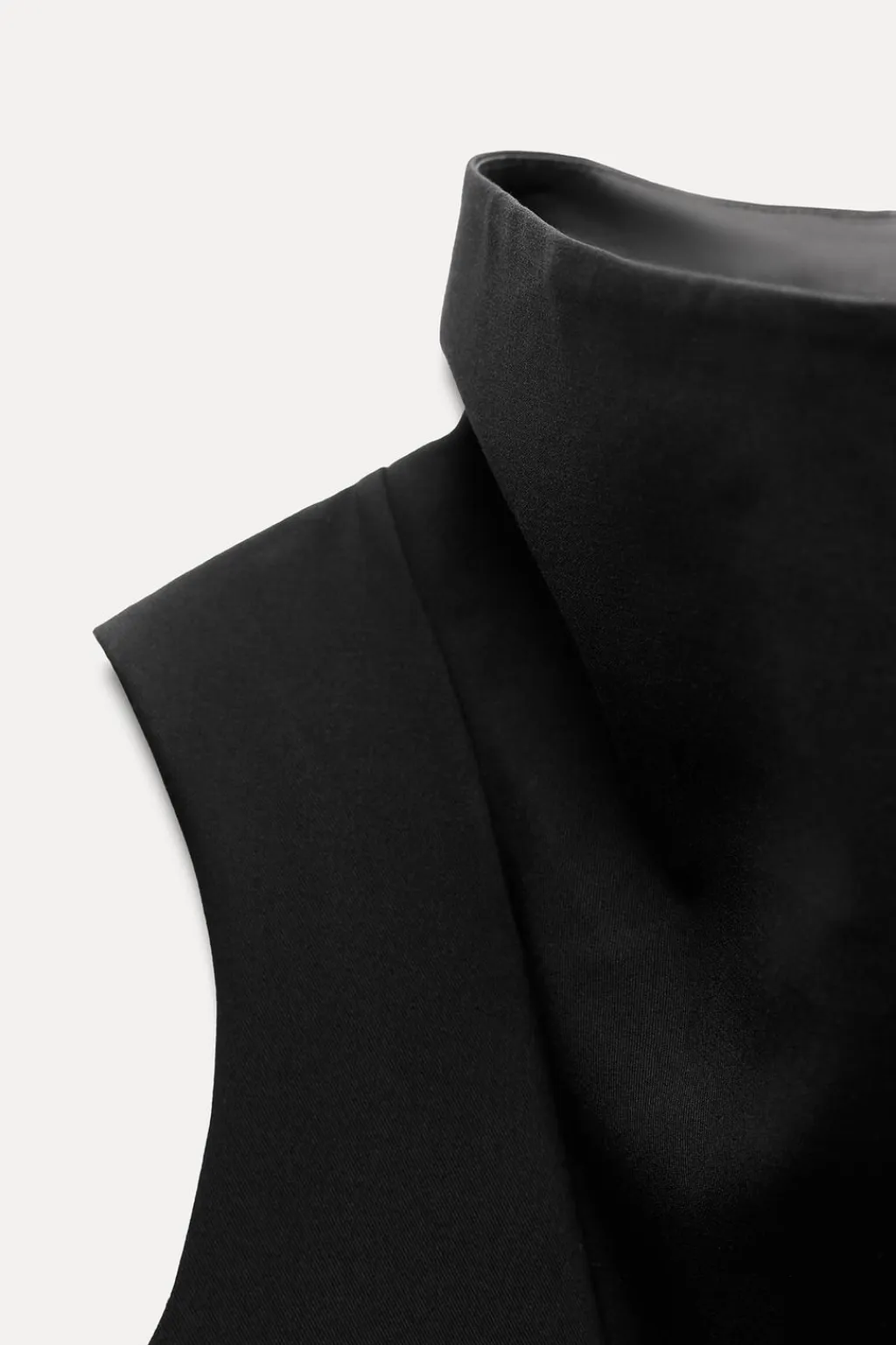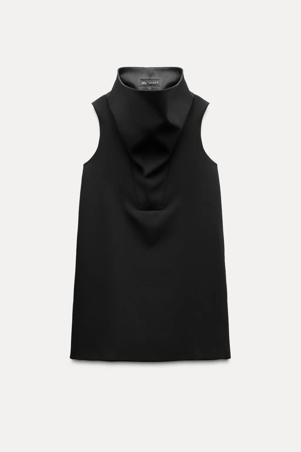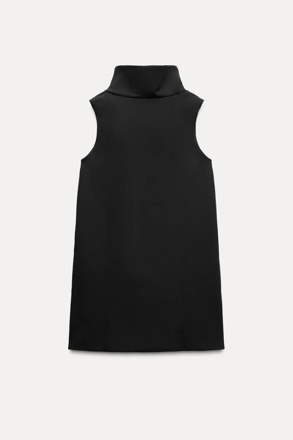 Vestido corto de cuello subido y manga sisa. Bolsillos laterales ocultos en costura. Forro interior combinado a tono.
