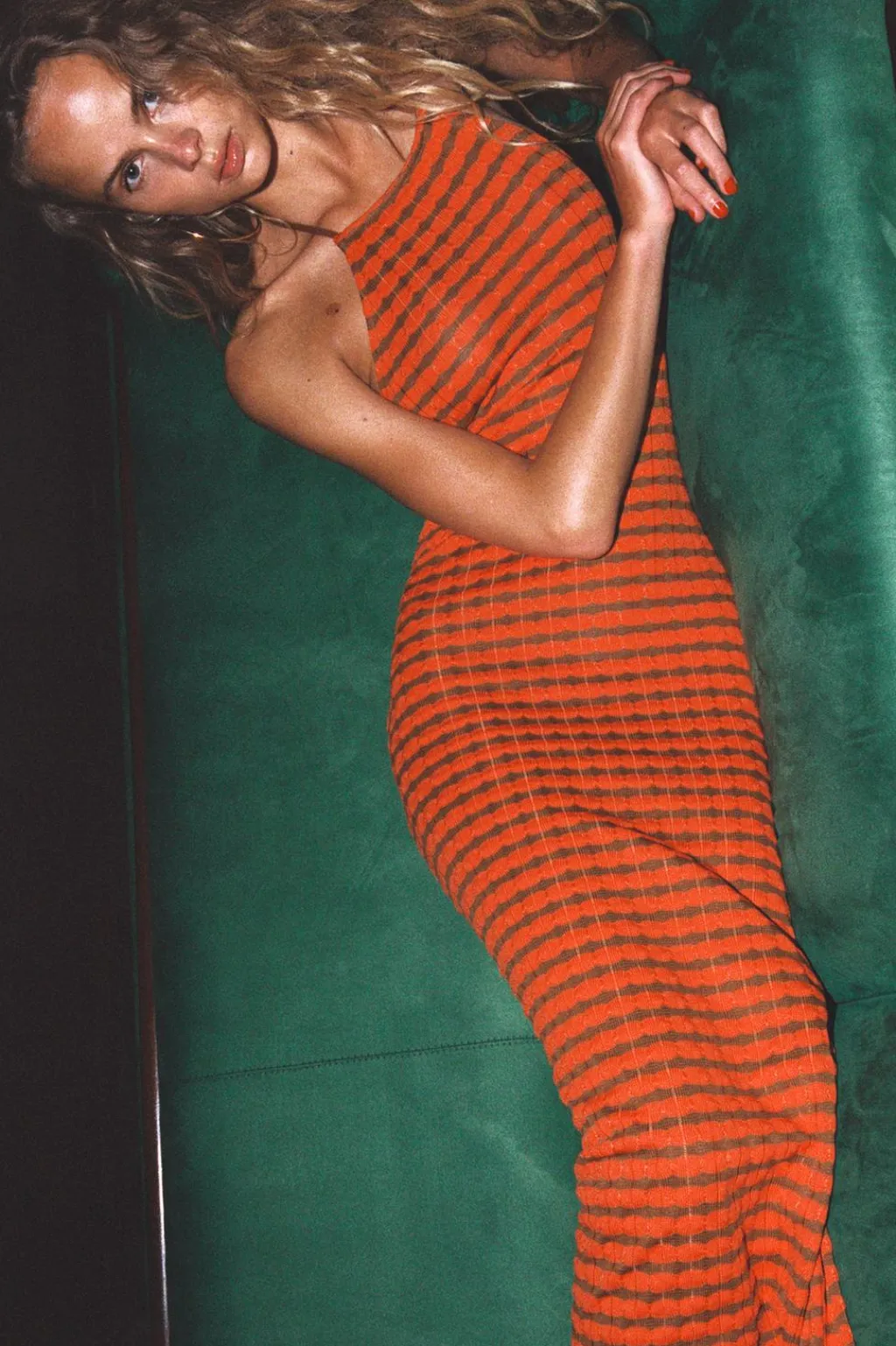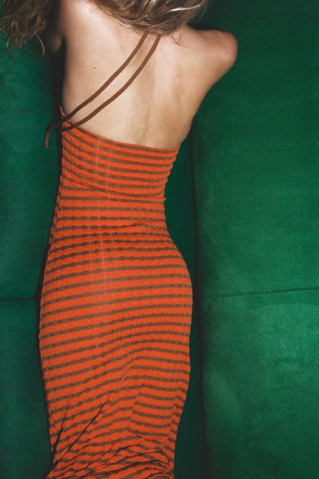 Vestido largo de cuello halter ajustable con lazada. Espalda descubierta.