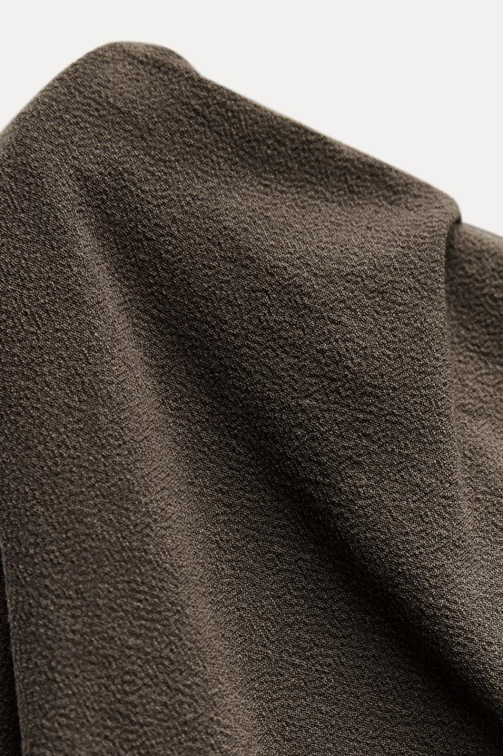 Vestido midi confeccionado en hilatura con mezcla de lana. Escote fluido con frunces y manga sisa. Bajo acabado en abertura.