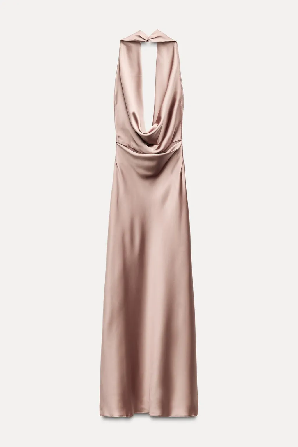 Vestido midi de cuello halter con escote drapeado y pronunciado. Espalda descubierta.