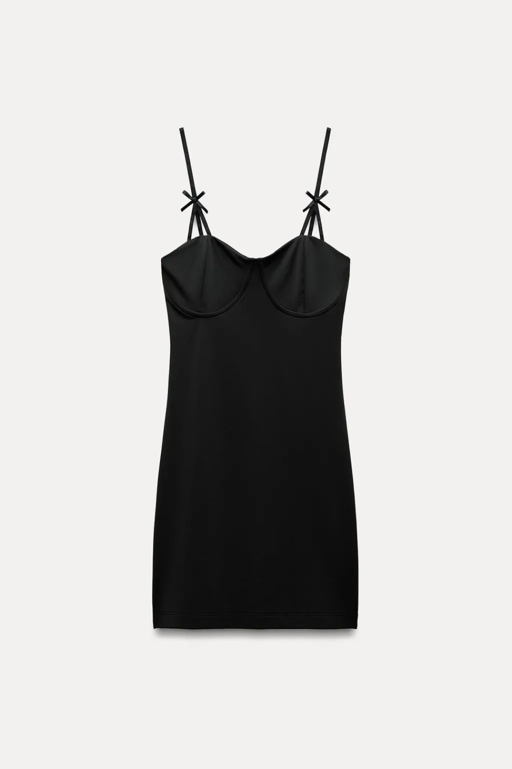 Vestido corto entallado confeccionado con poliamida. Escote redondo y tirantes finos elásticos ajustables con detalle de lazo a tono.